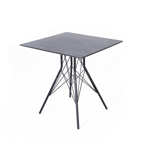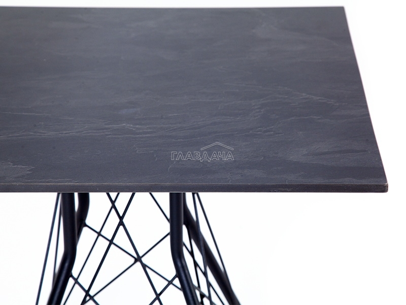Каркас изготовлен из стали, окрашенной в матовый черный цвет. В качестве столешницы использован высококачественный монолитный компакт-пластика HPL, толщиной 12 мм. Цвет поверхности – «серый гранит».