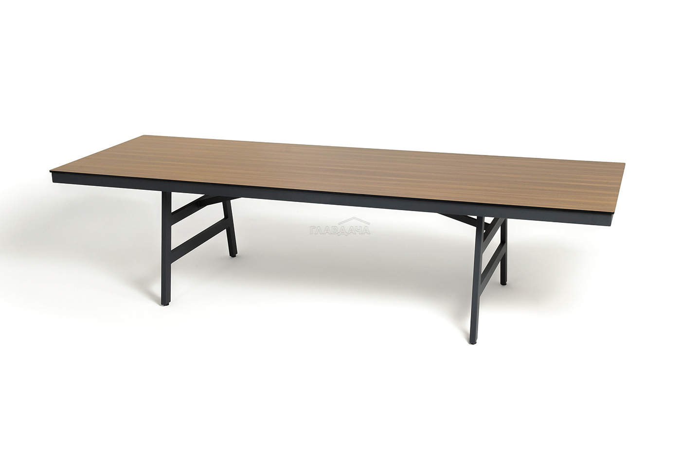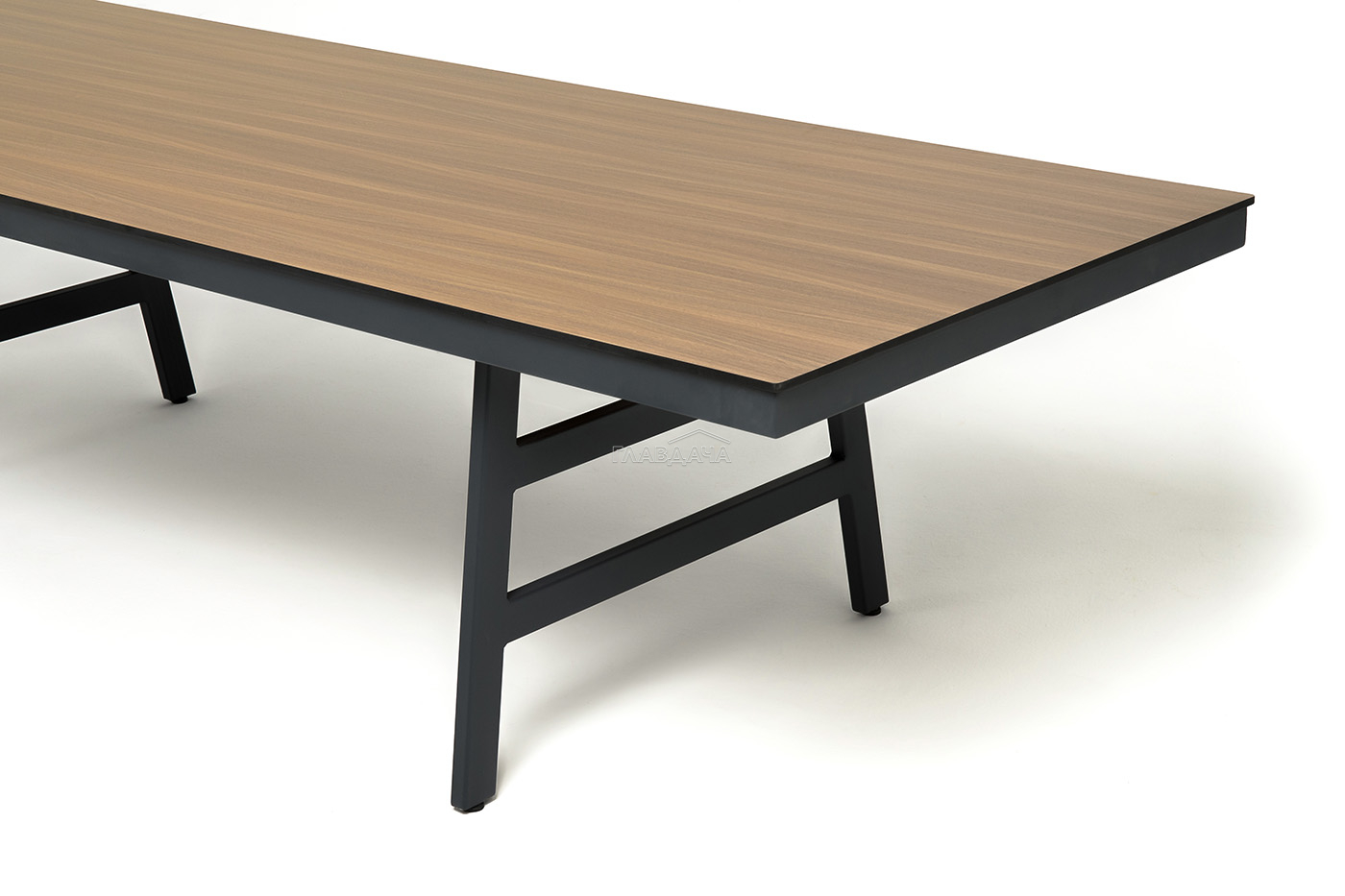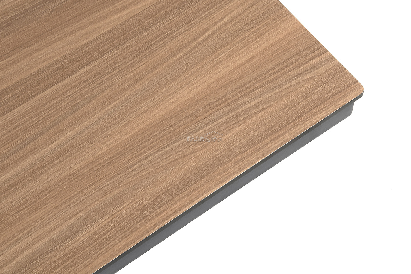 Размер стола - 3000×1000×750 мм. Столешница изготовлена из компакт-пластика HPL c рисунком цвета «дуб».