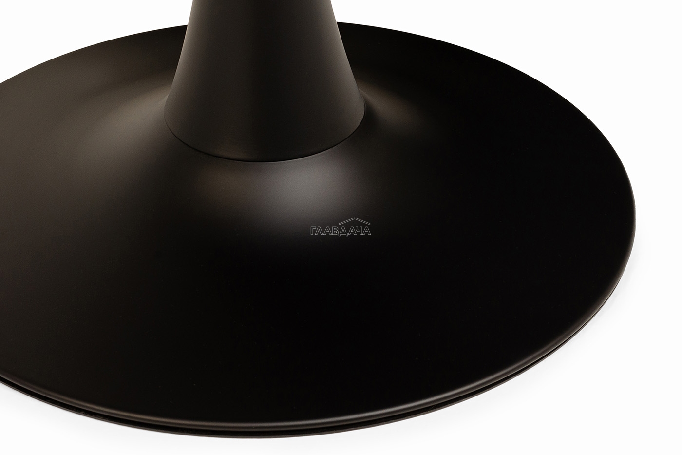 Обеденный стол «Тюльпан» с изящной плетеной ножкой из прочного металла, окрашенного в черный цвет.