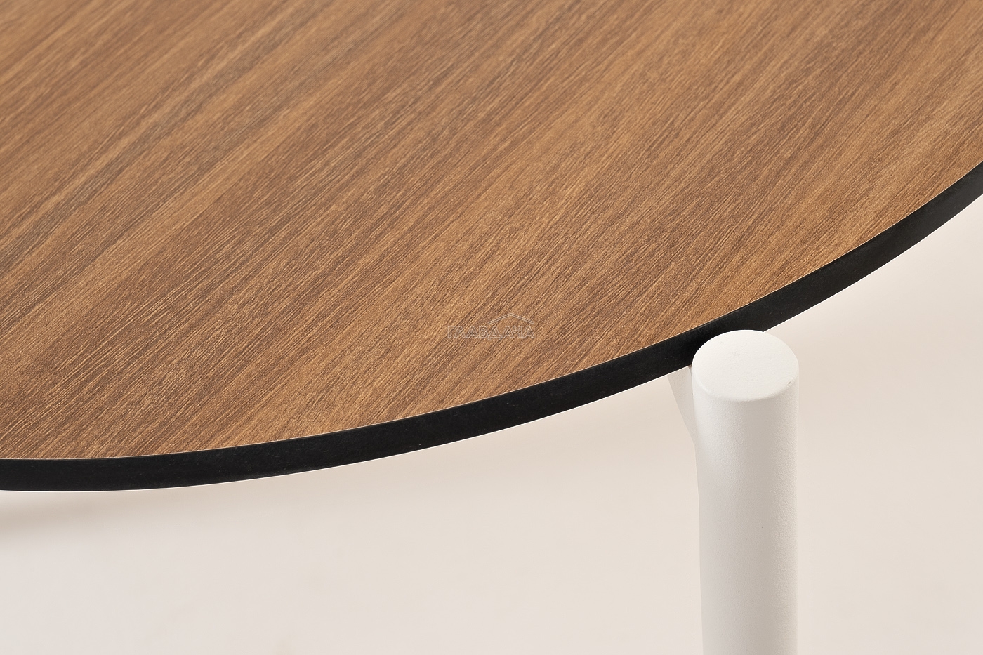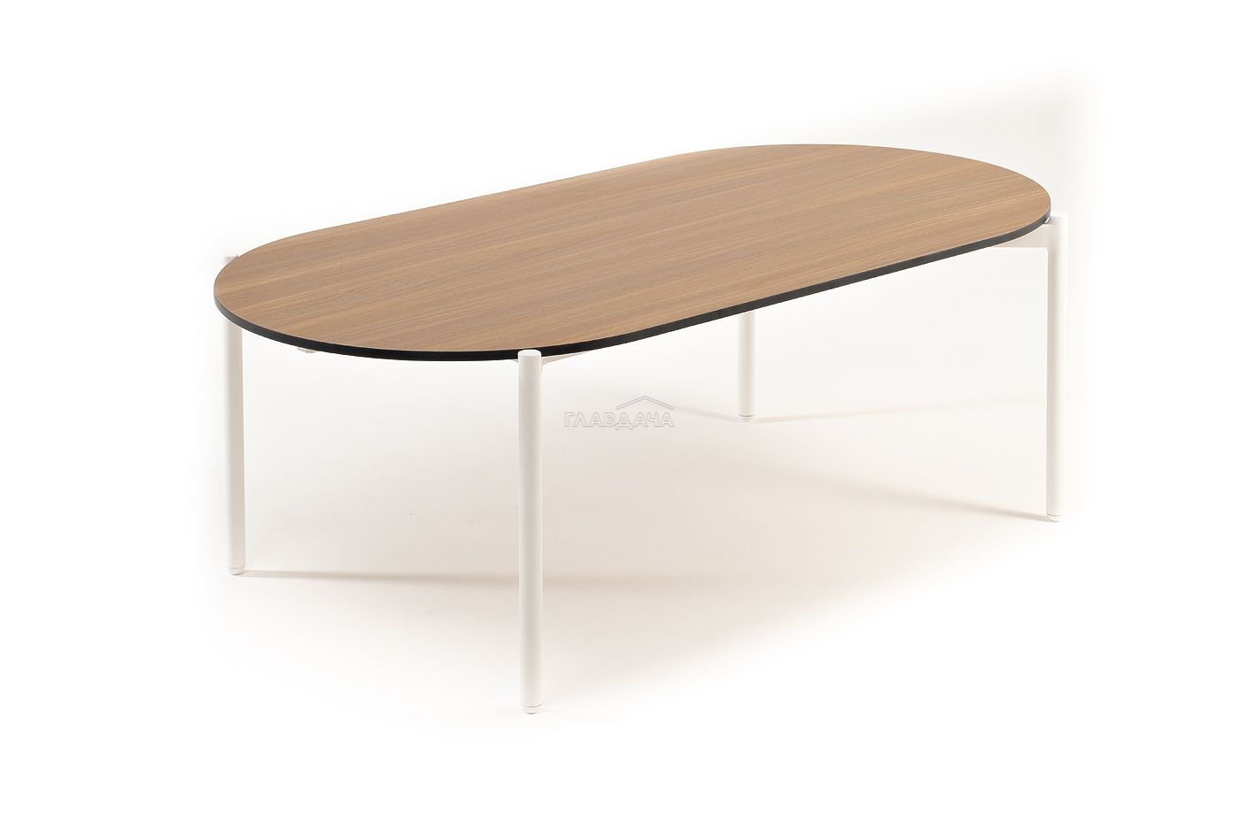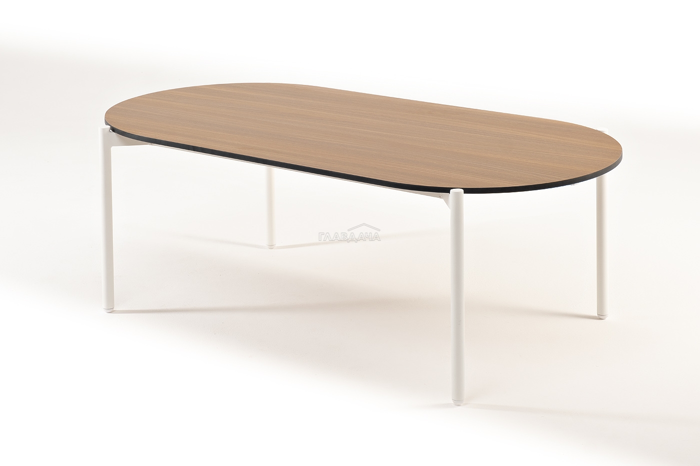 Столешница - овальная, выполнена из высококачественного монолитного компакт-пластика HPL, толщиной 12 мм. Цвет столешницы - «дуб» .