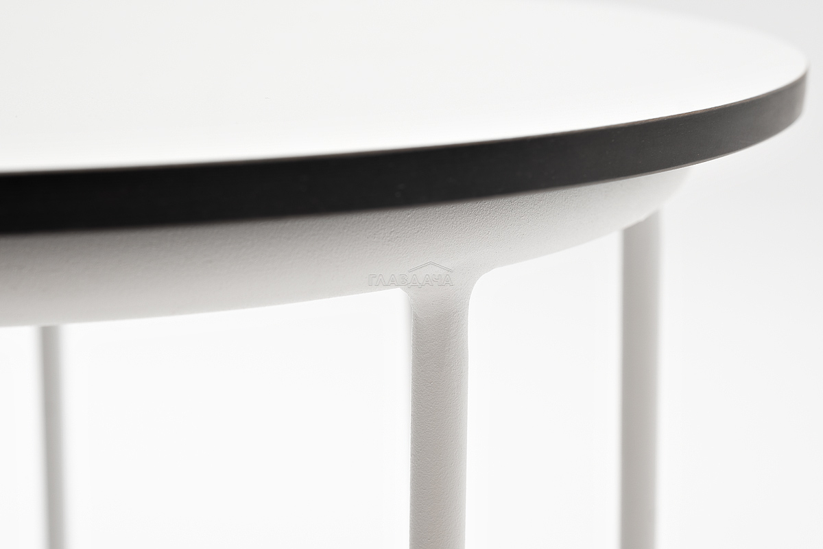 Круглый журнальный столик «Эквадор» каркас изготовлен из алюмитния, окрашенного в белый цвет. Столешница выполнена из высококачественного монолитного компакт-пластика HPL, толщиной 12 мм. Цвет столешницы - «молочный».