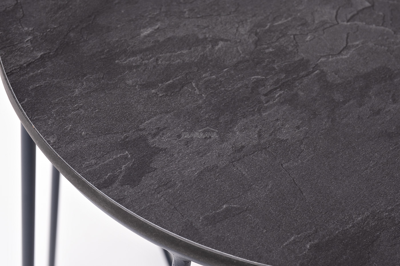 Круглый журнальный столик «Эквадор» каркас изготовлен из алюминия, окрашенного в темно-серый цвет. Столешница выполнена из высококачественного монолитного компакт-пластика HPL, толщиной 12 мм. Цвет столешницы - «серый гранит».