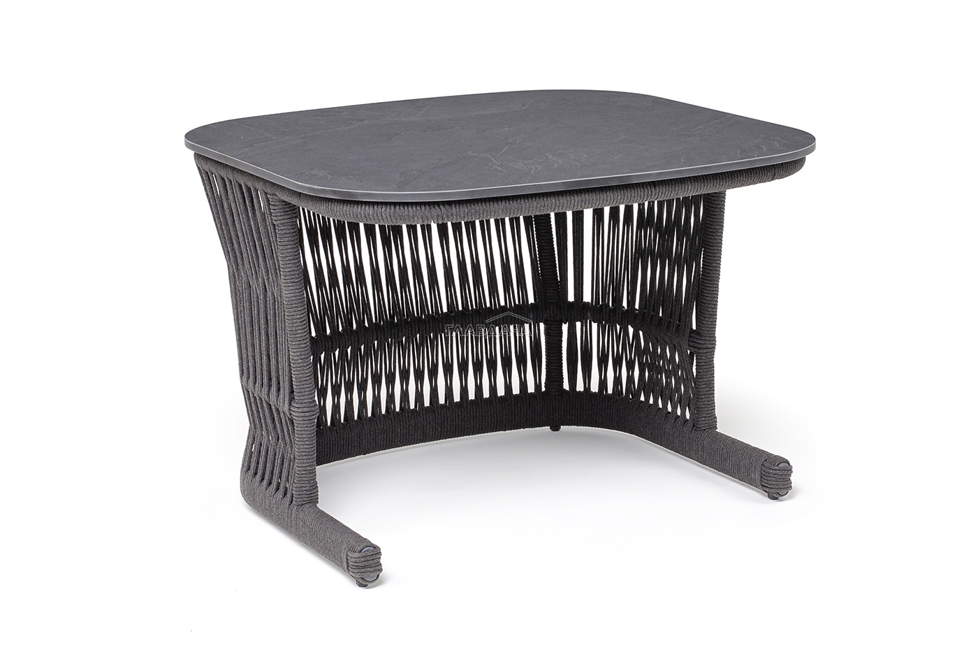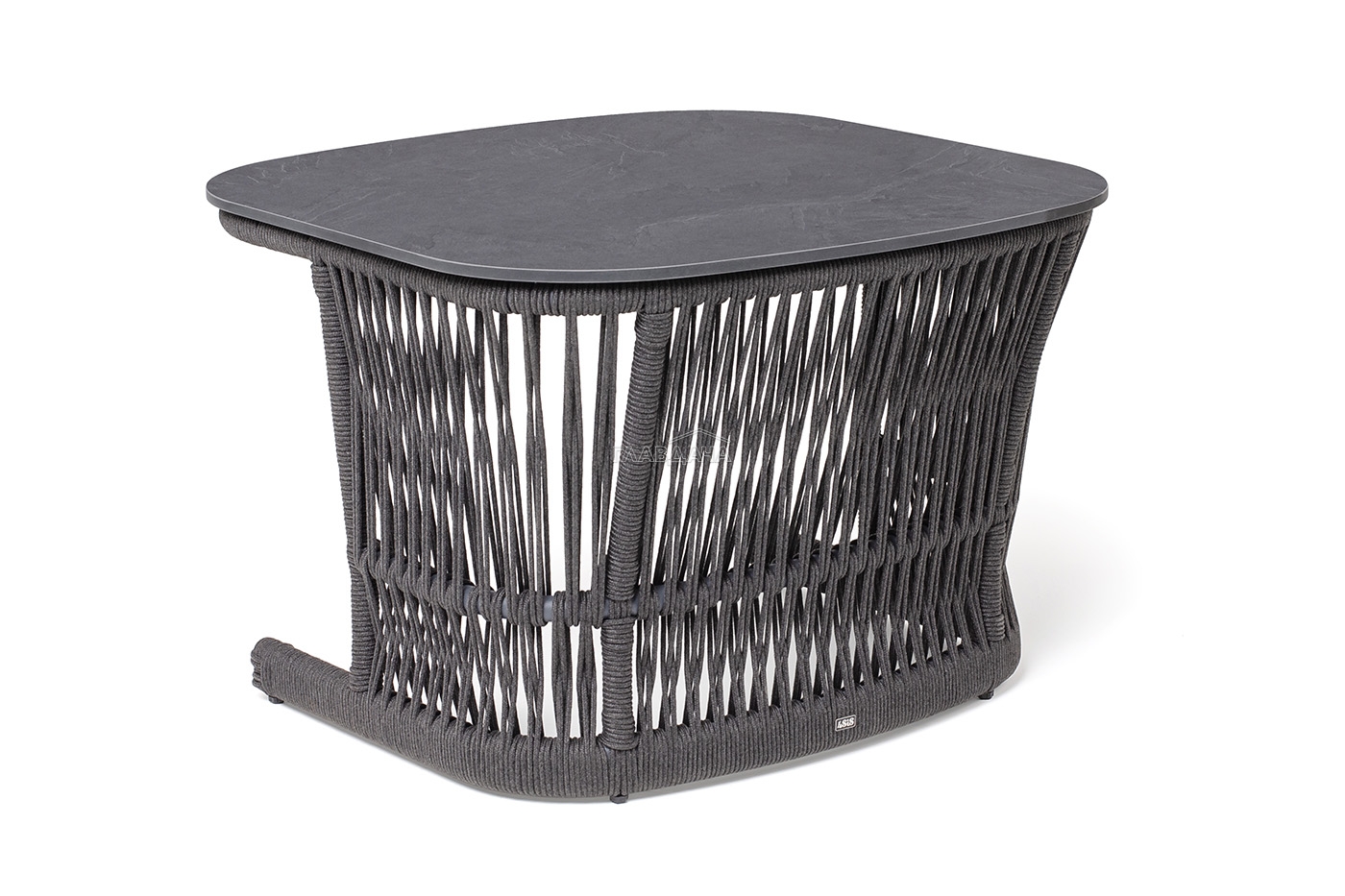 Подстолье - алюминиевая профильная труба, окрашенная износостойкой краской в темно-серый цвет. Нижняя часть задекорирована эластичными синтетическими лентами, состоящими из высокопрочных полиэфирных волокон, аналогичного оттенка.