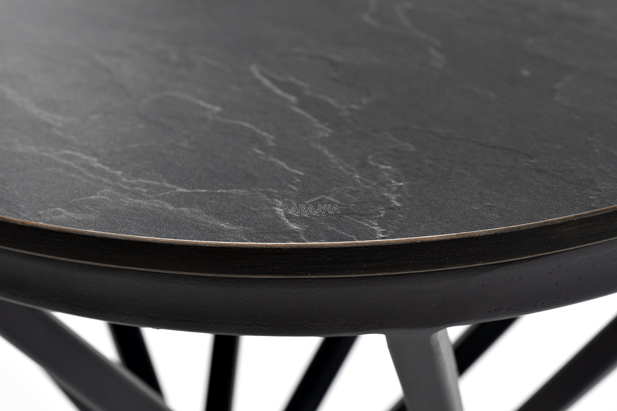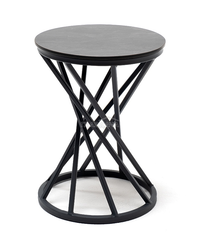 Круглый журнальный столик «Сантьяго» каркас изготовлен из стали, окрашенного в темно-серый цвет. Столешница выполнена из высококачественного монолитного компакт-пластика HPL, толщиной 12 мм. Цвет столешницы - «серый гранит».