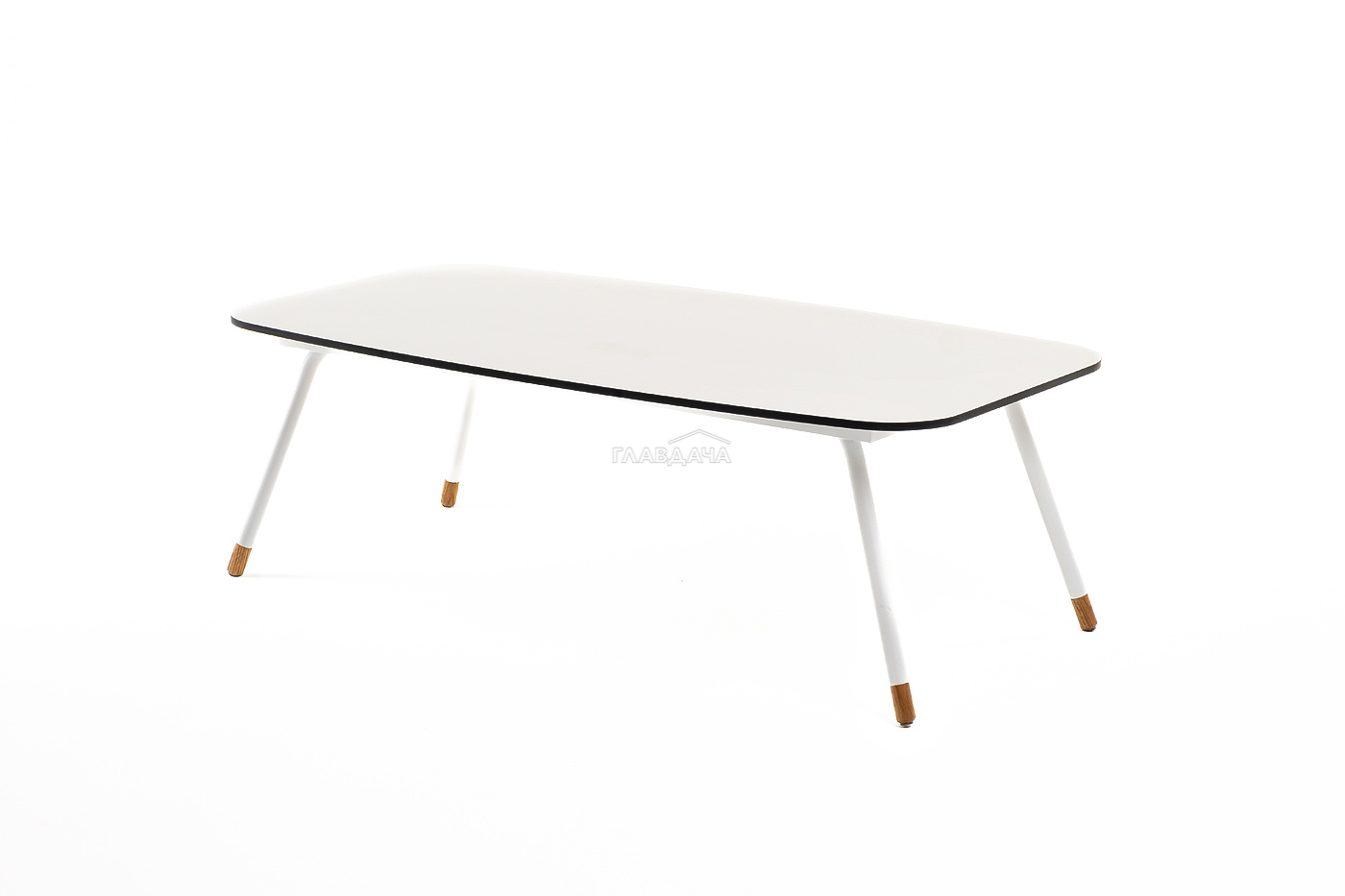 Каркас столика изготовлен из алюминия, окрашенного в белый цвет. Алюминий является легким и прочным материалом, что обеспечивает долговечность и надежность изделия. На ножках столика идут дубовые наконечники (заглушки).