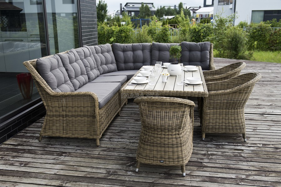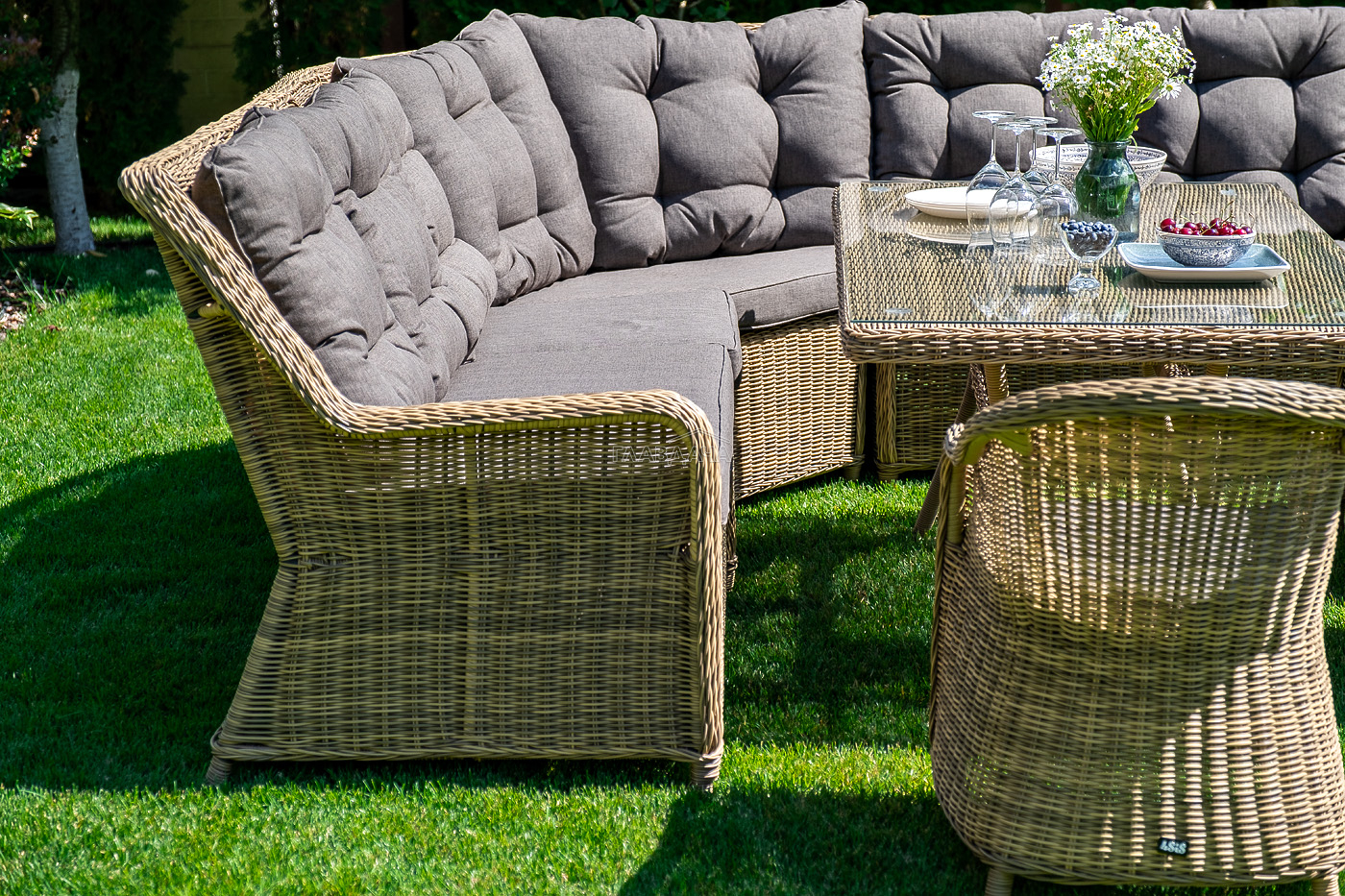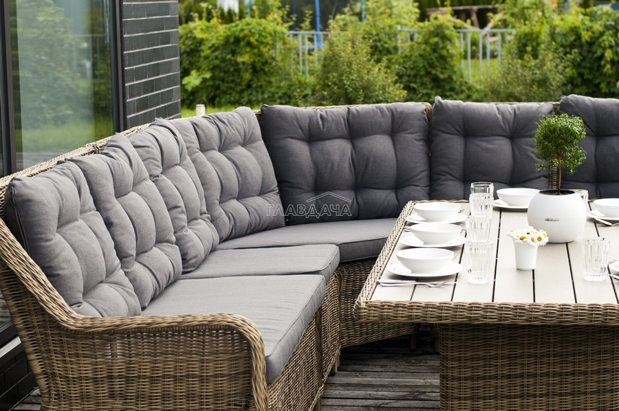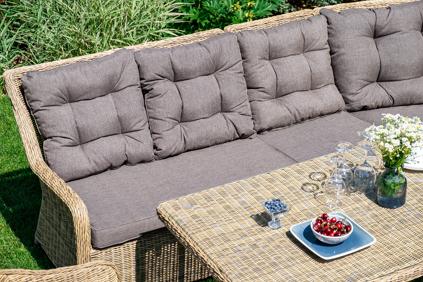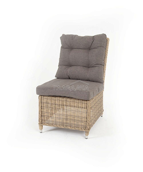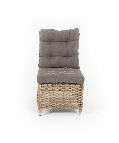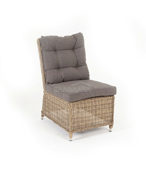 Плетеный центральный модуль дивана «Бергамо», алюминиевый каркас, круглый искусственный ротанг, ручное плетение, цвет соломенный, размер 570×900×990 мм.