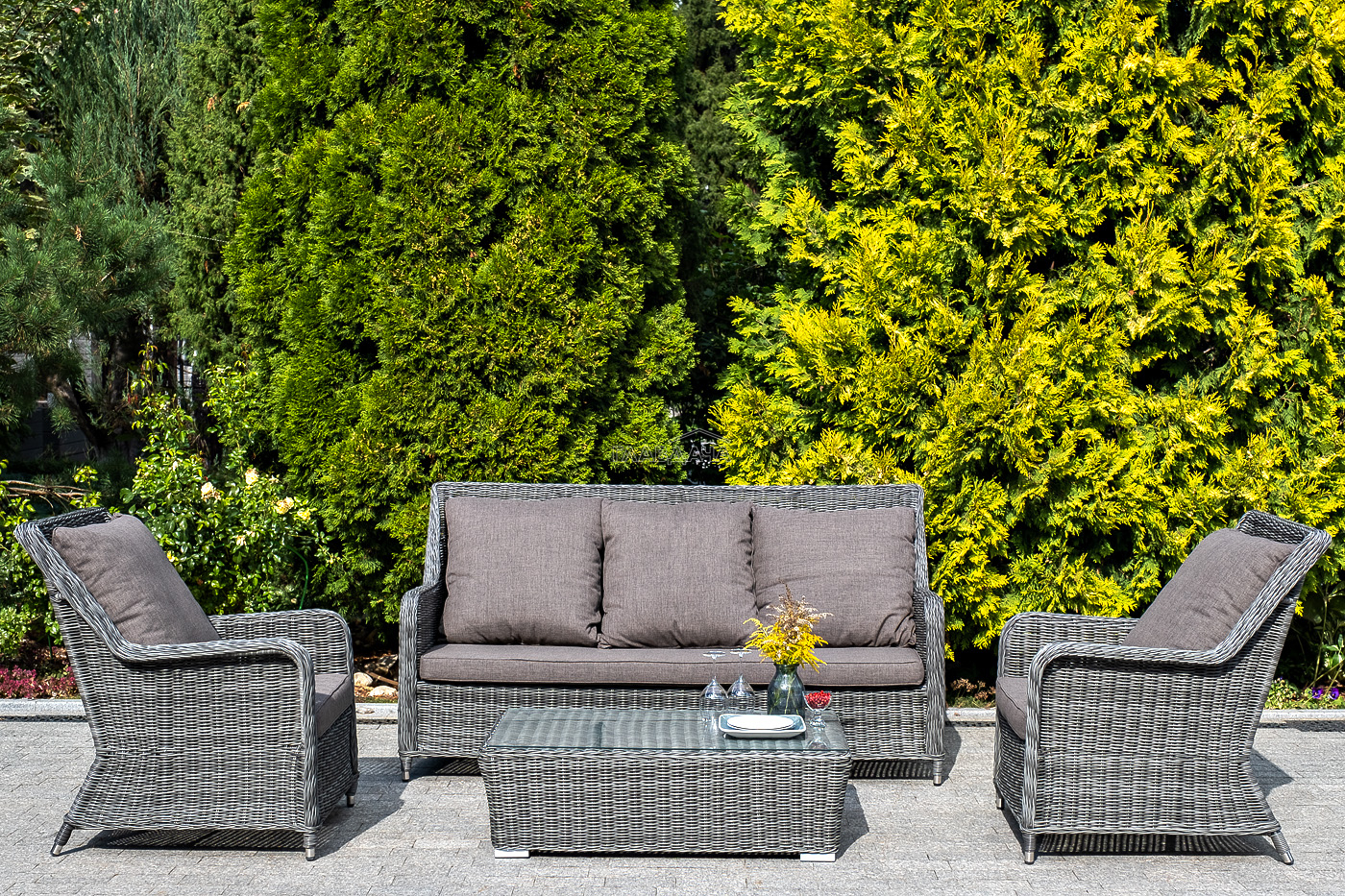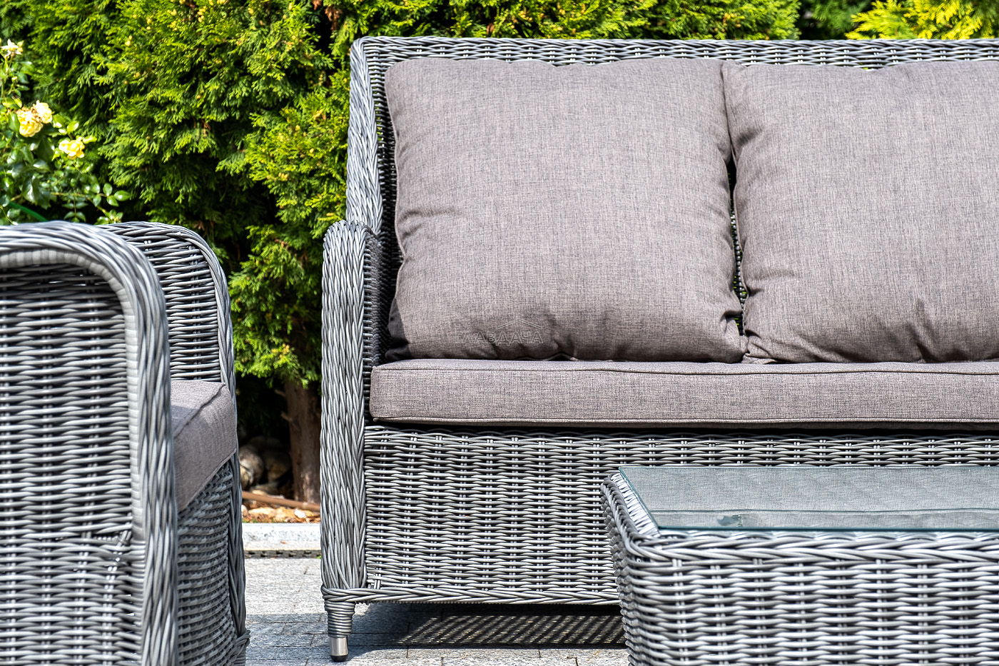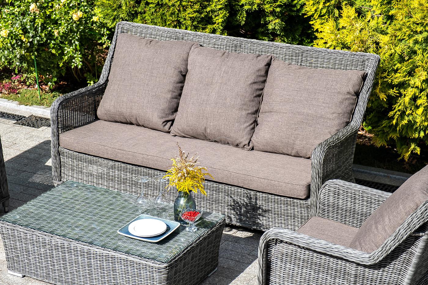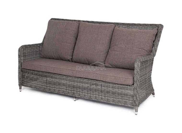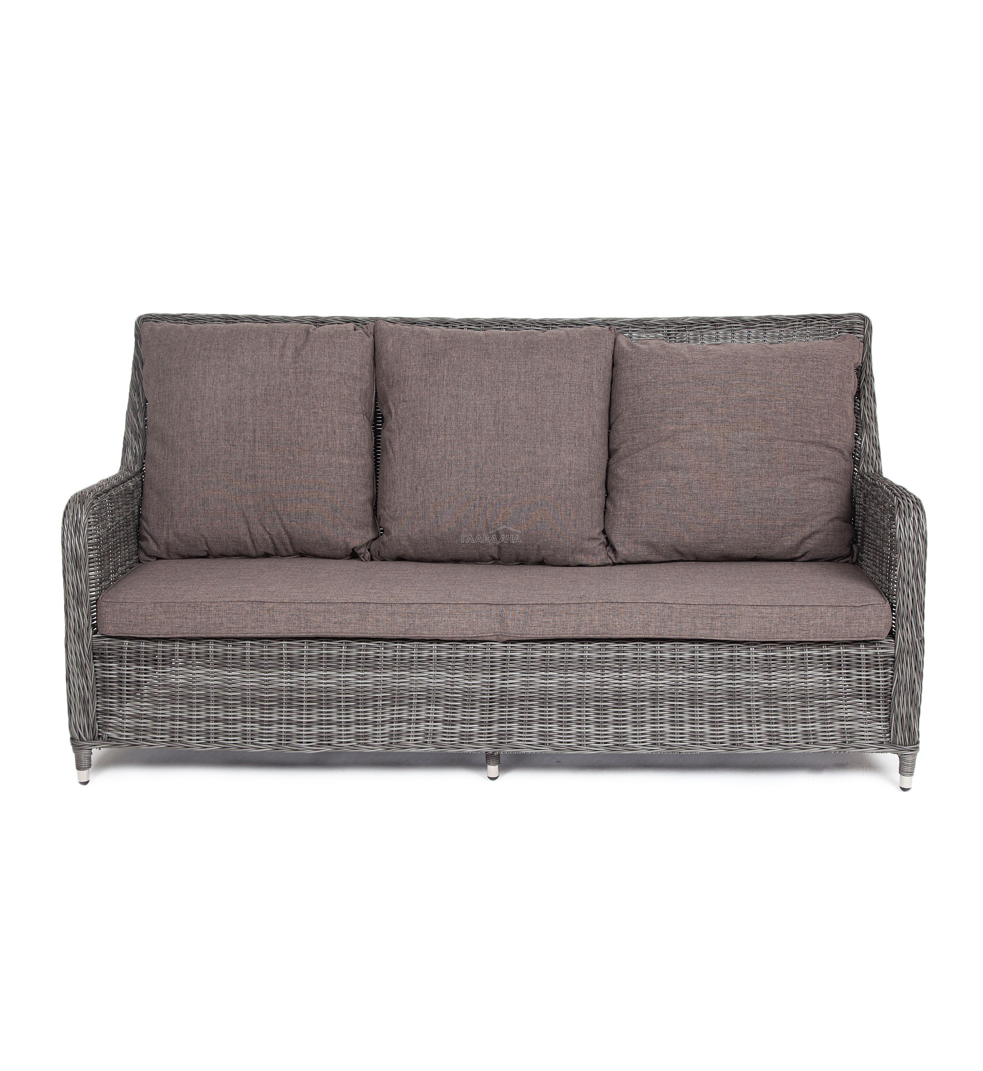 В комплекте с трехместным диваном идут мягкие подушки для комфортного расположения. Чехлы съёмные серого цвета из высококлассного полиэстера с плотностью 300гр/м2. Защитные свойства ткани усиливаются при помощи влагоотталкивающей пропитки.