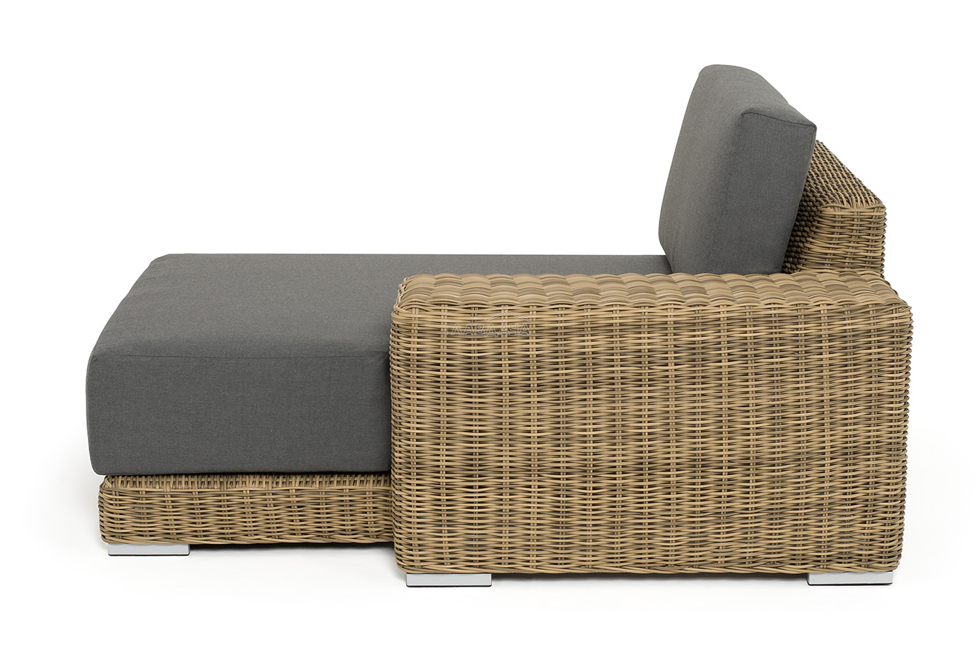 «Капри» плетеная кушетка из искусственного ротанга соломенного оттенка прекрасно дополнит пространство для отдыха на открытом воздухе.