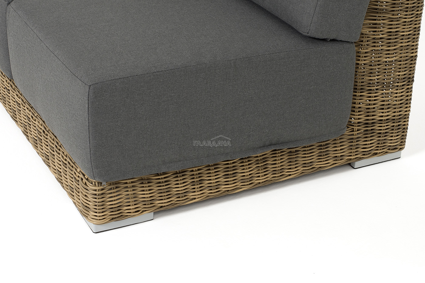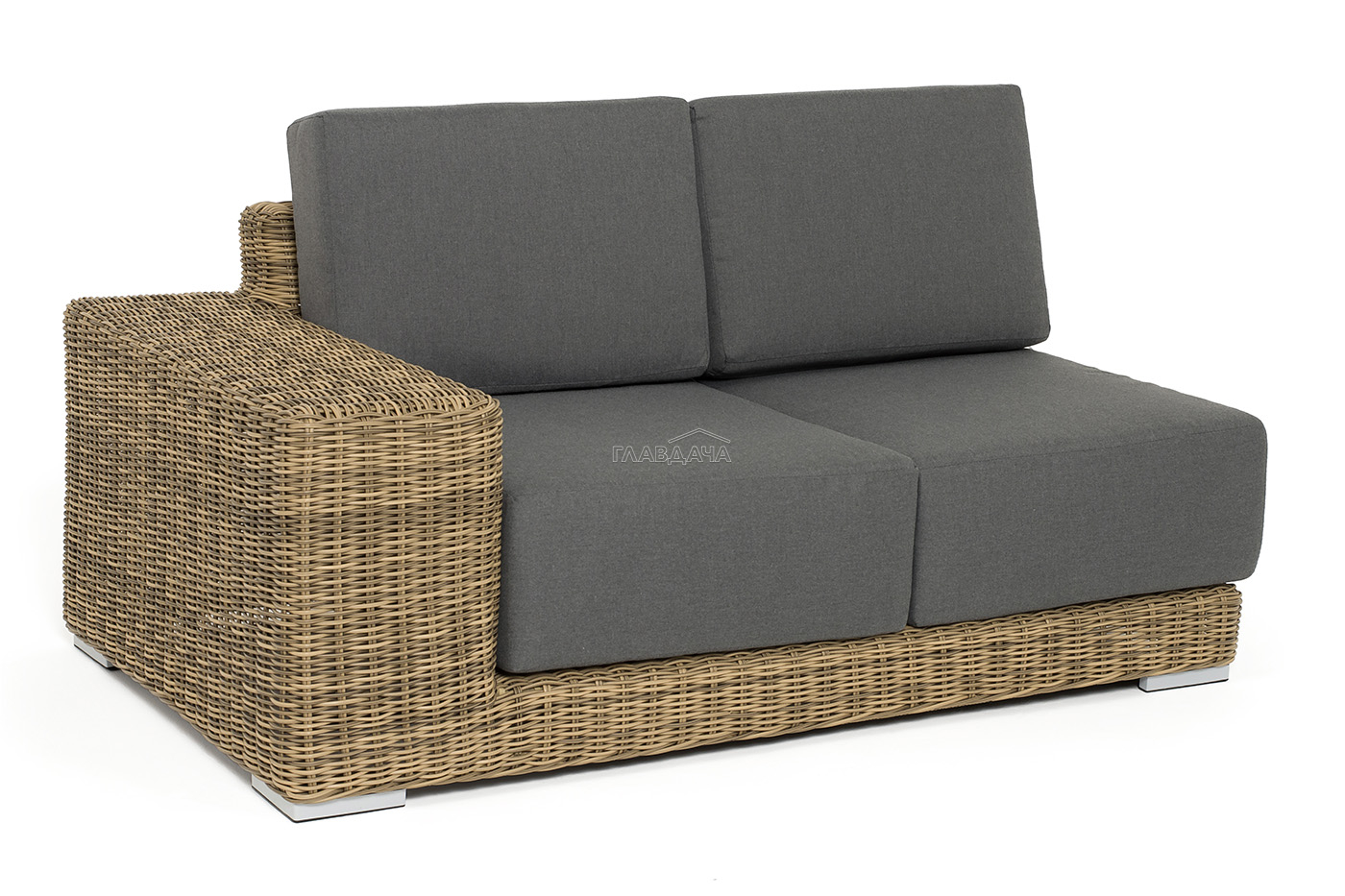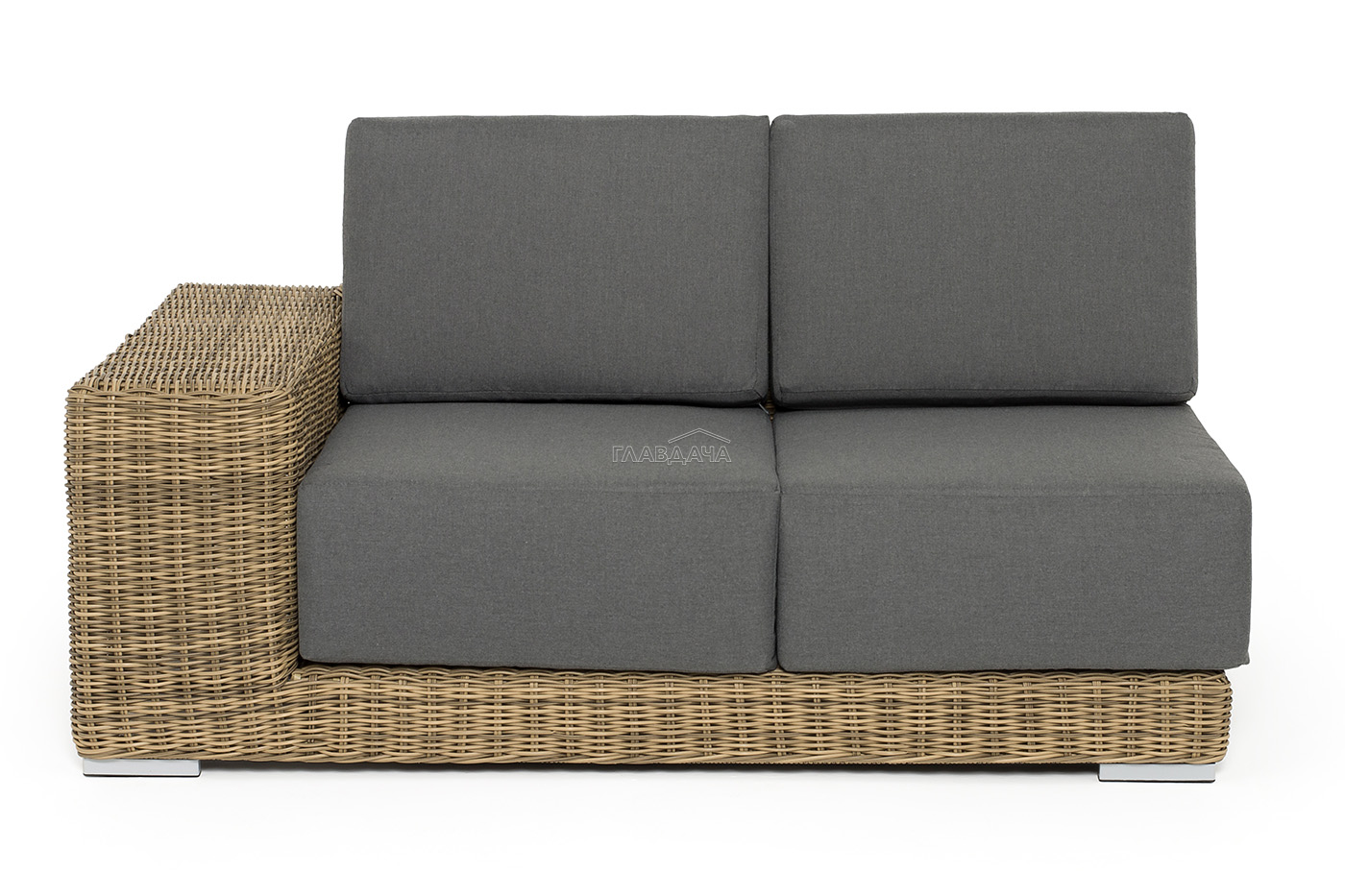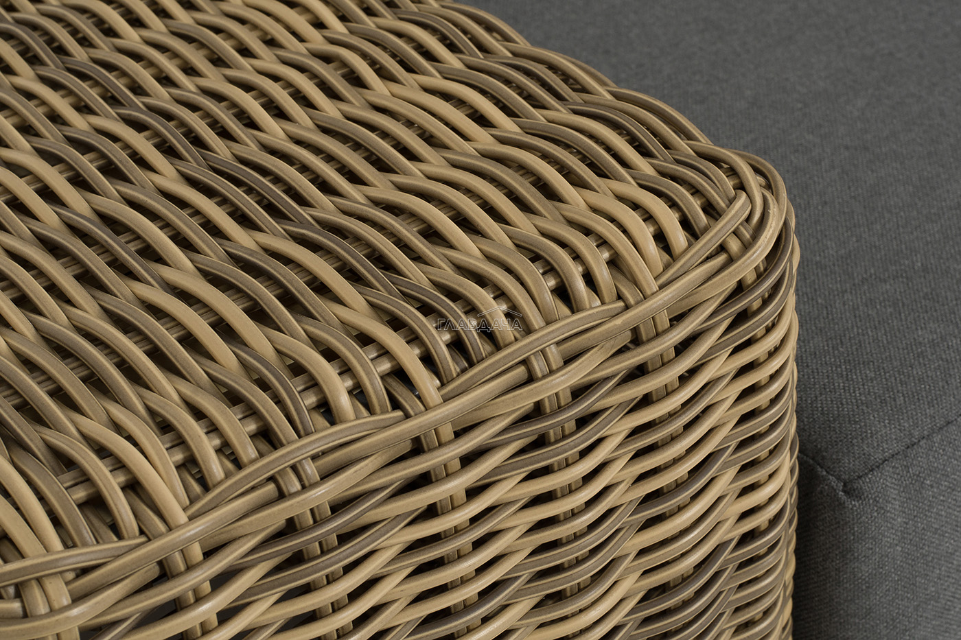 Правый модуль «Капри», выполненный из круглого искусственного ротанга соломенного оттенка, позволяет использовать не только как самостоятельный элемент, но и быть частью лаунж-зоны, в которую данная модель превосходно интегрируется.