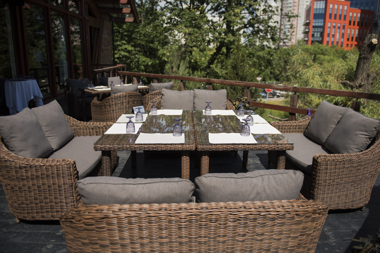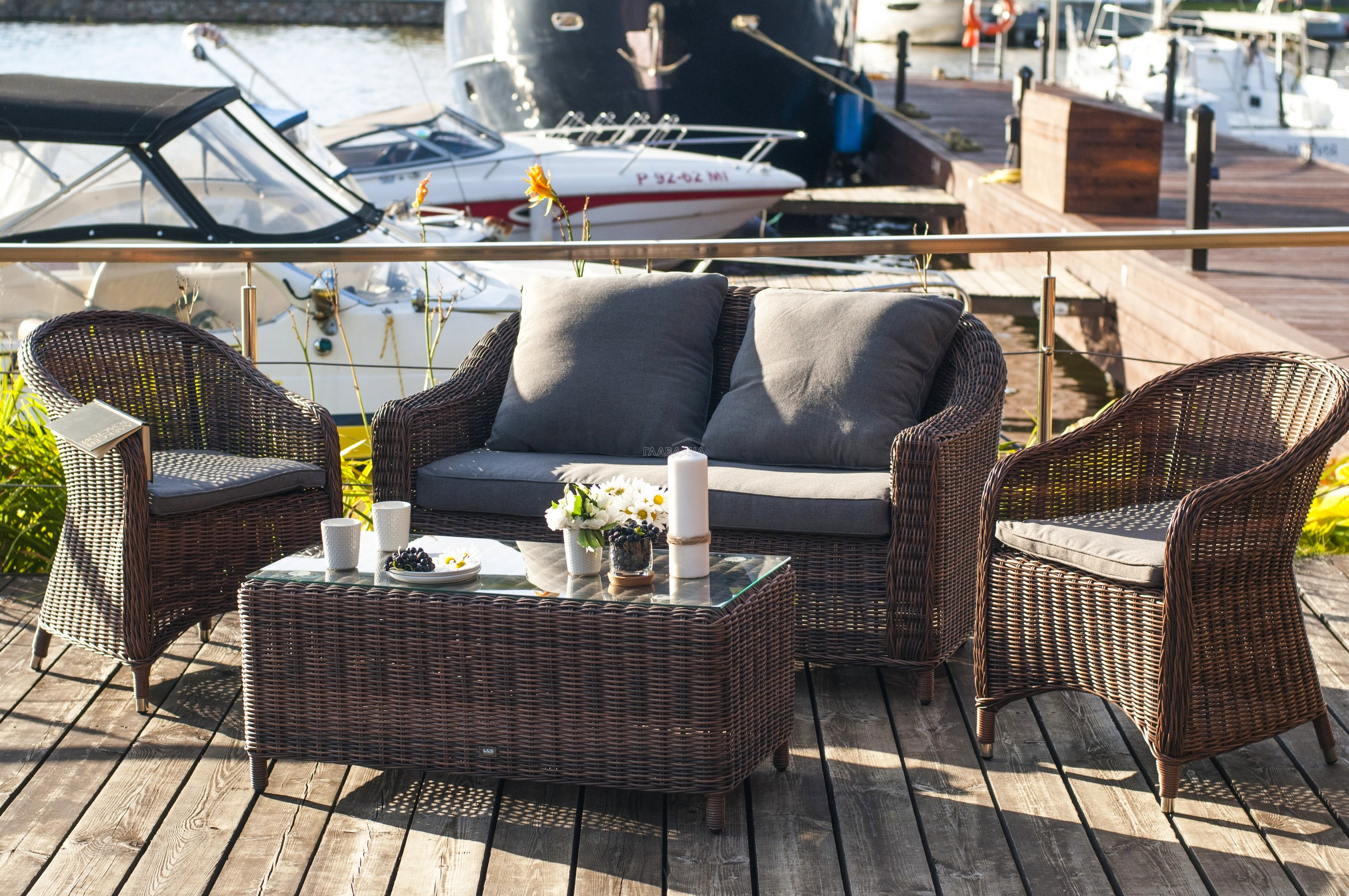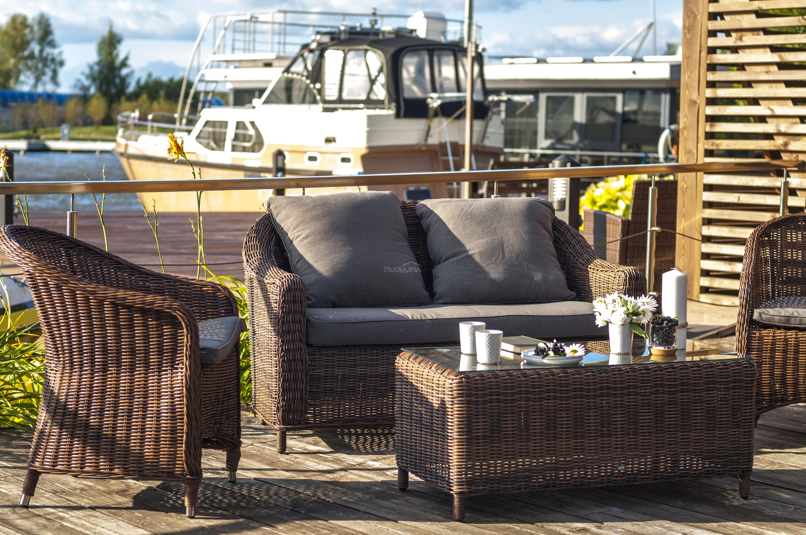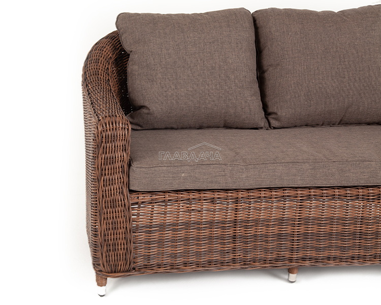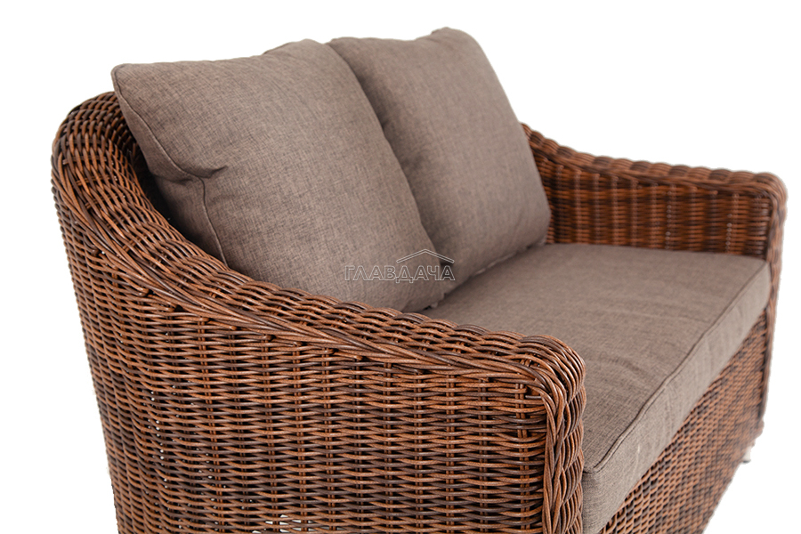 Размер модели – 1370×800×800 мм. Она задекорирована практичной круглой оплеткой, сделанной из искусственного ротанга шоколадного оттенка.