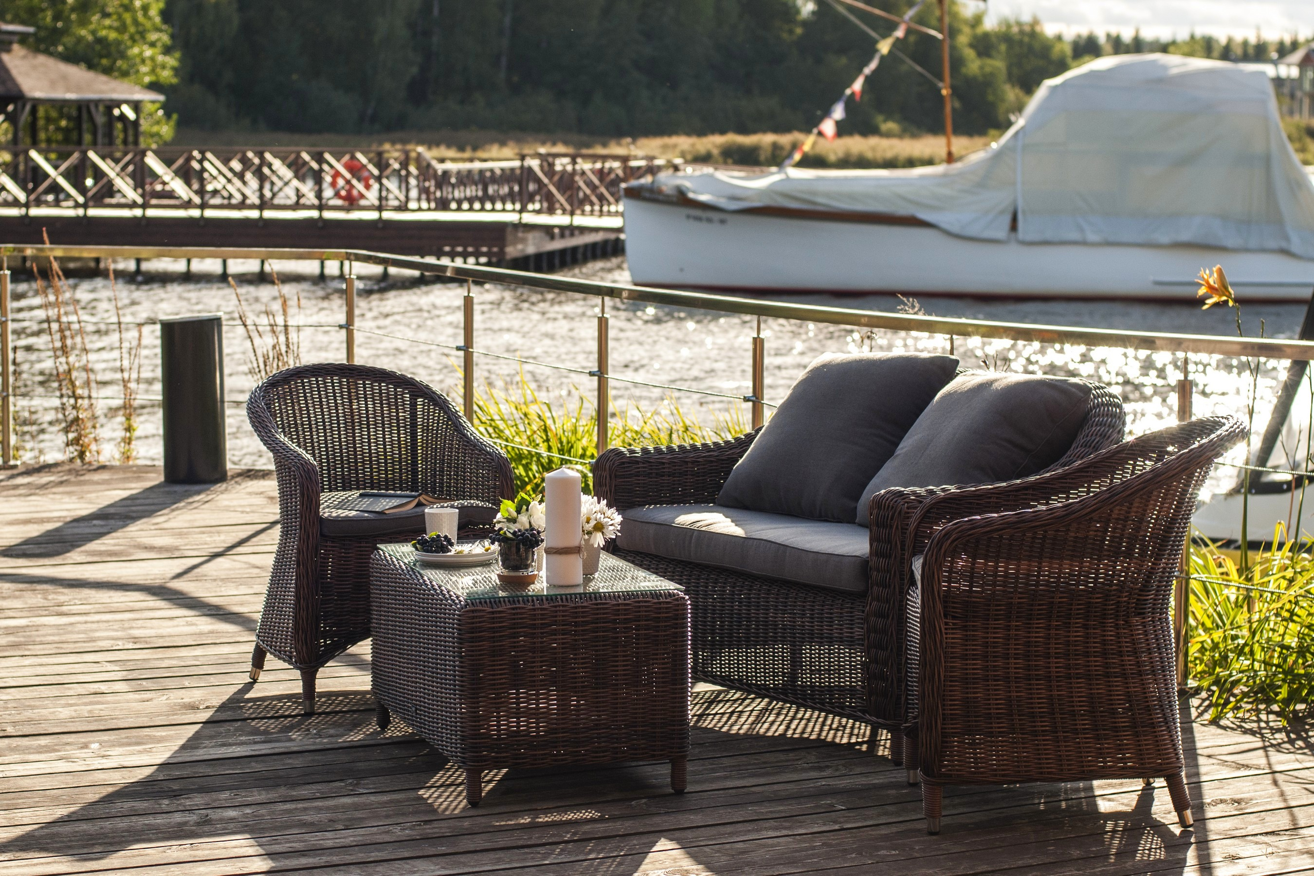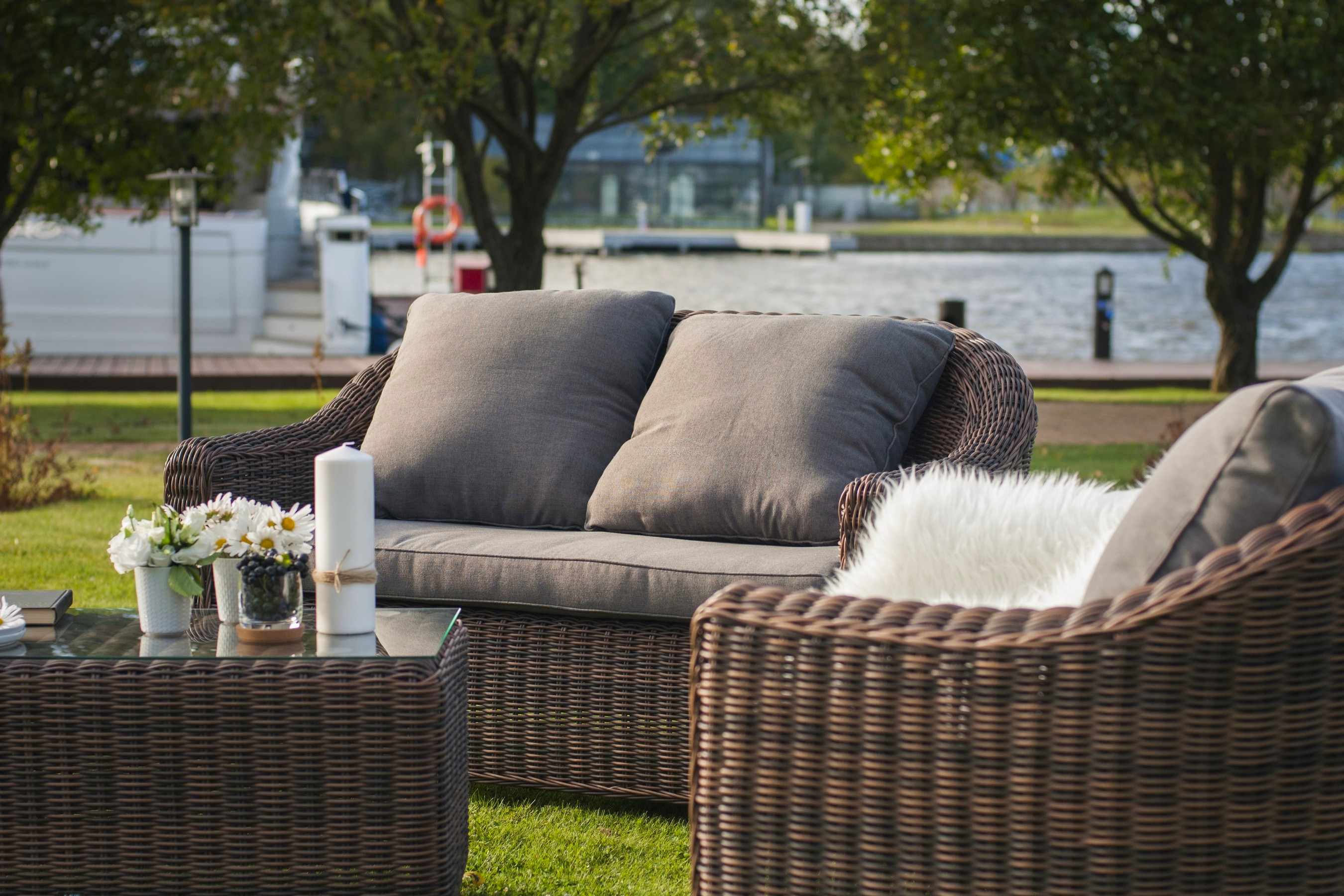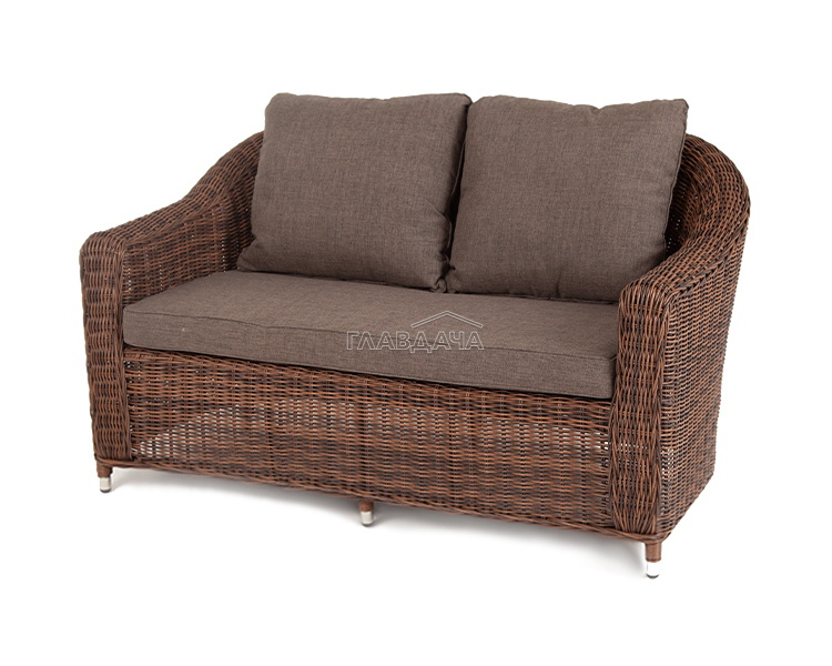 Двухместный диван «Кон Панна» с закругленной спинкой, переходящей в подлокотники. Изготовлен на основе алюминиевого каркаса.