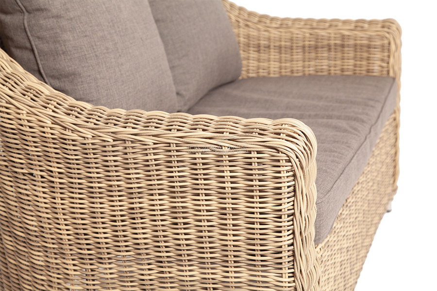 При производстве садового дивана был использован прочный алюминиевый каркас, который оплетен вручную искусственным ротангом.