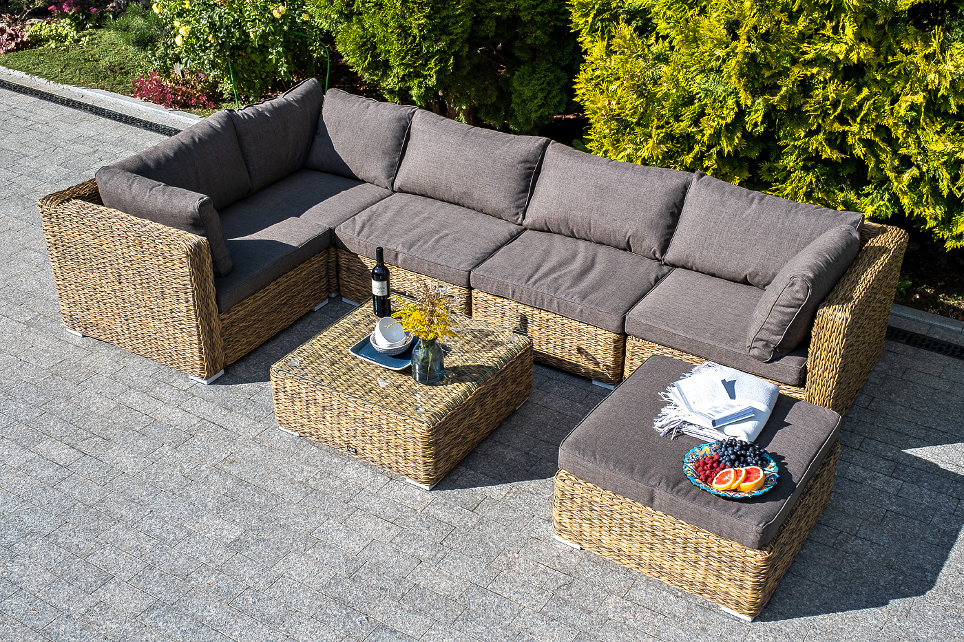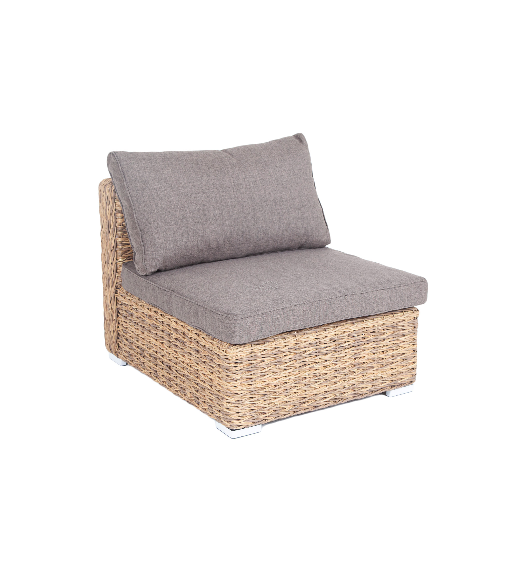 «Лунго» прямой модуль из искусственного ротанга вида «гиацинт», выполнен из алюминиевого каркаса, который оплетен вручную ротангом соломенного цвета.