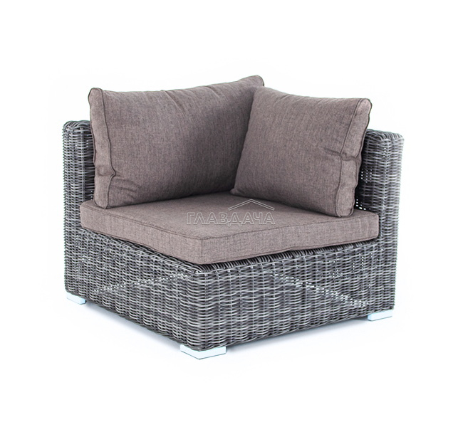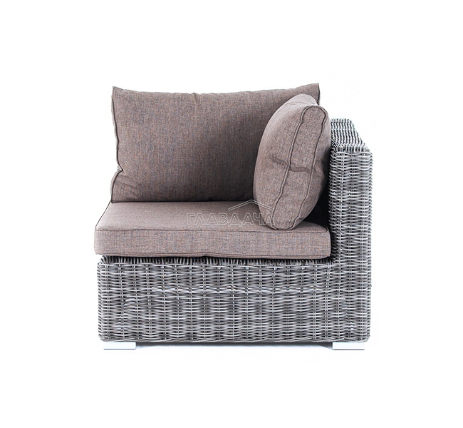 Угловой модуль из круглого искусственного ротанга «Лунго» является одним из звеньев для создания лаунж зоны по индивидуальным потребностям.