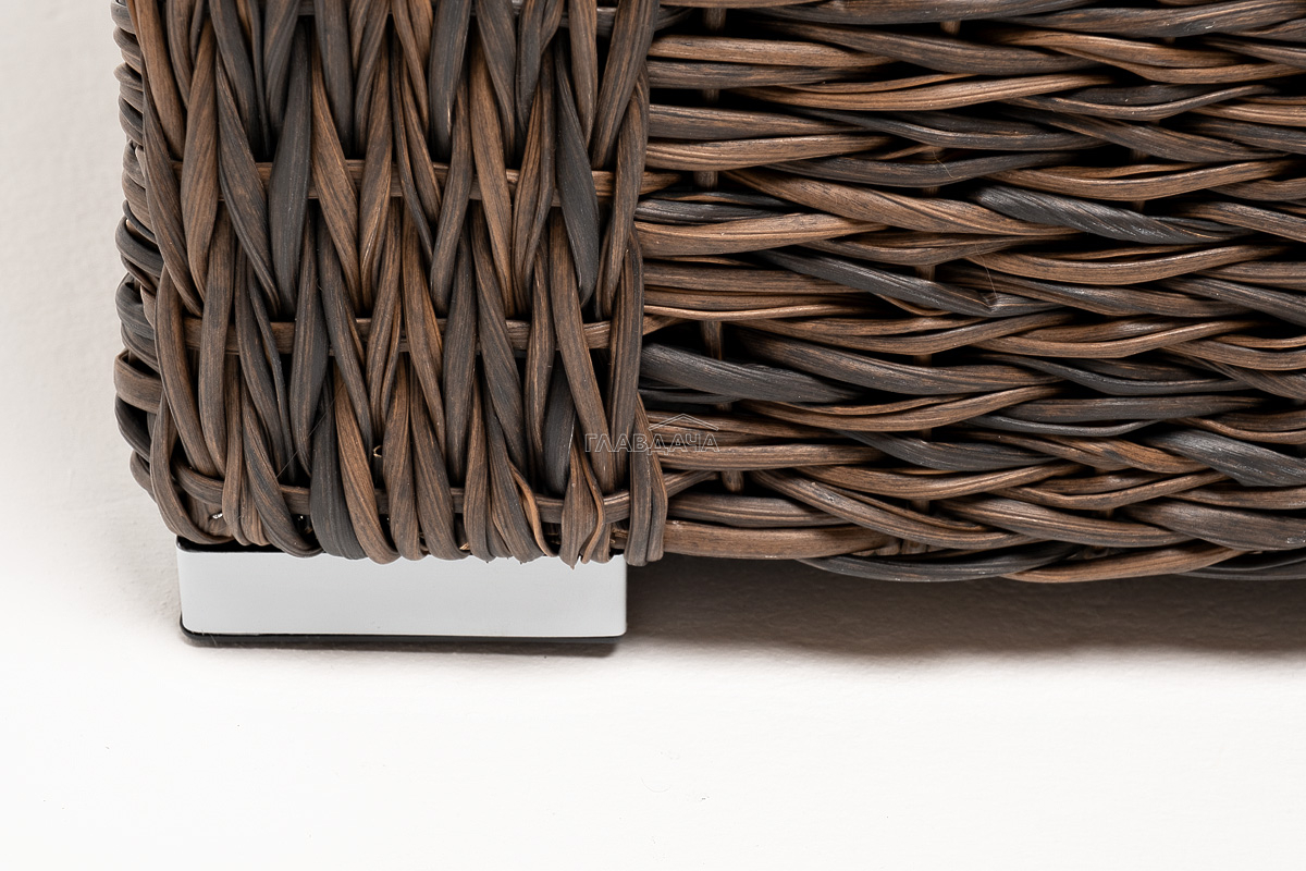 «Лунго» угловой модуль из искусственного ротанга вида «гиацинт», вляется неотъемлемой частью лаунж-зоны. В своем основании имеет каркас из алюминия, который вручную оплетен ротангом коричневого цвета.