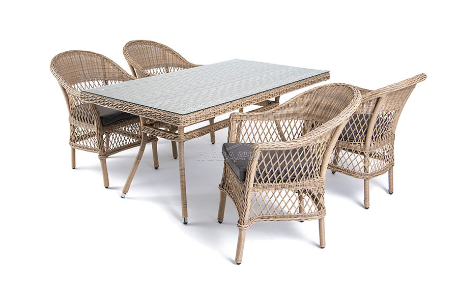 Обеденная группа «Амароне» относится к числу садовой мебели для обустройства открытых террас и веранд.