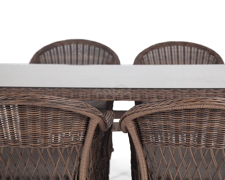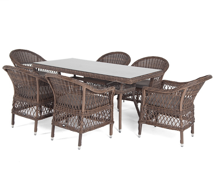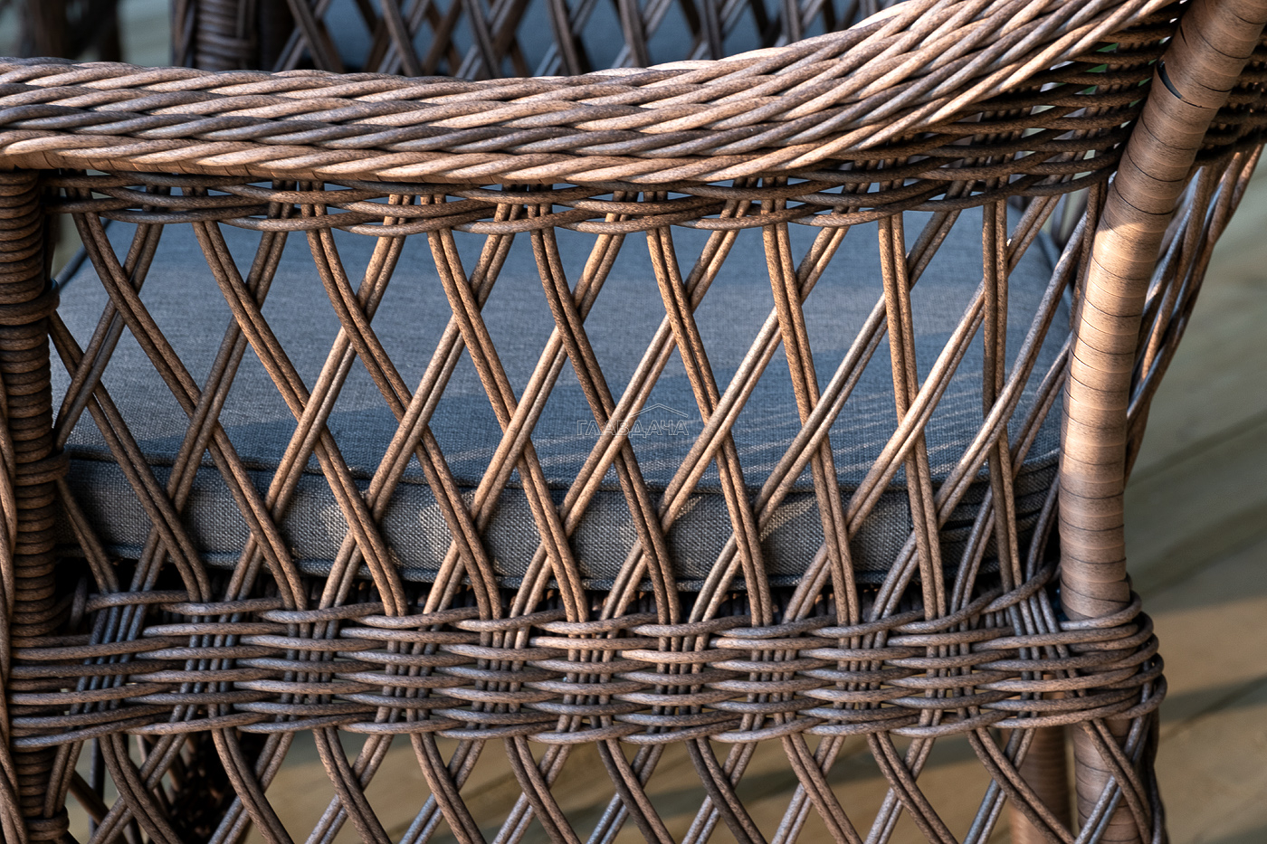Алюминий используется при создании прочного каркаса мебели. Оформлен ручным плетением из круглого искусственного ротанга коричневого цвета.