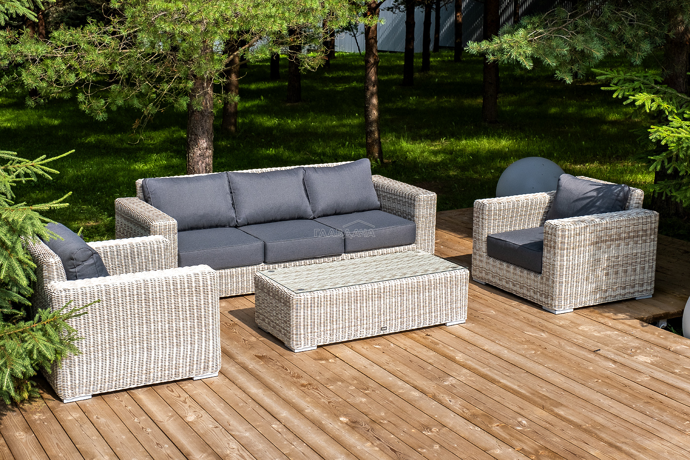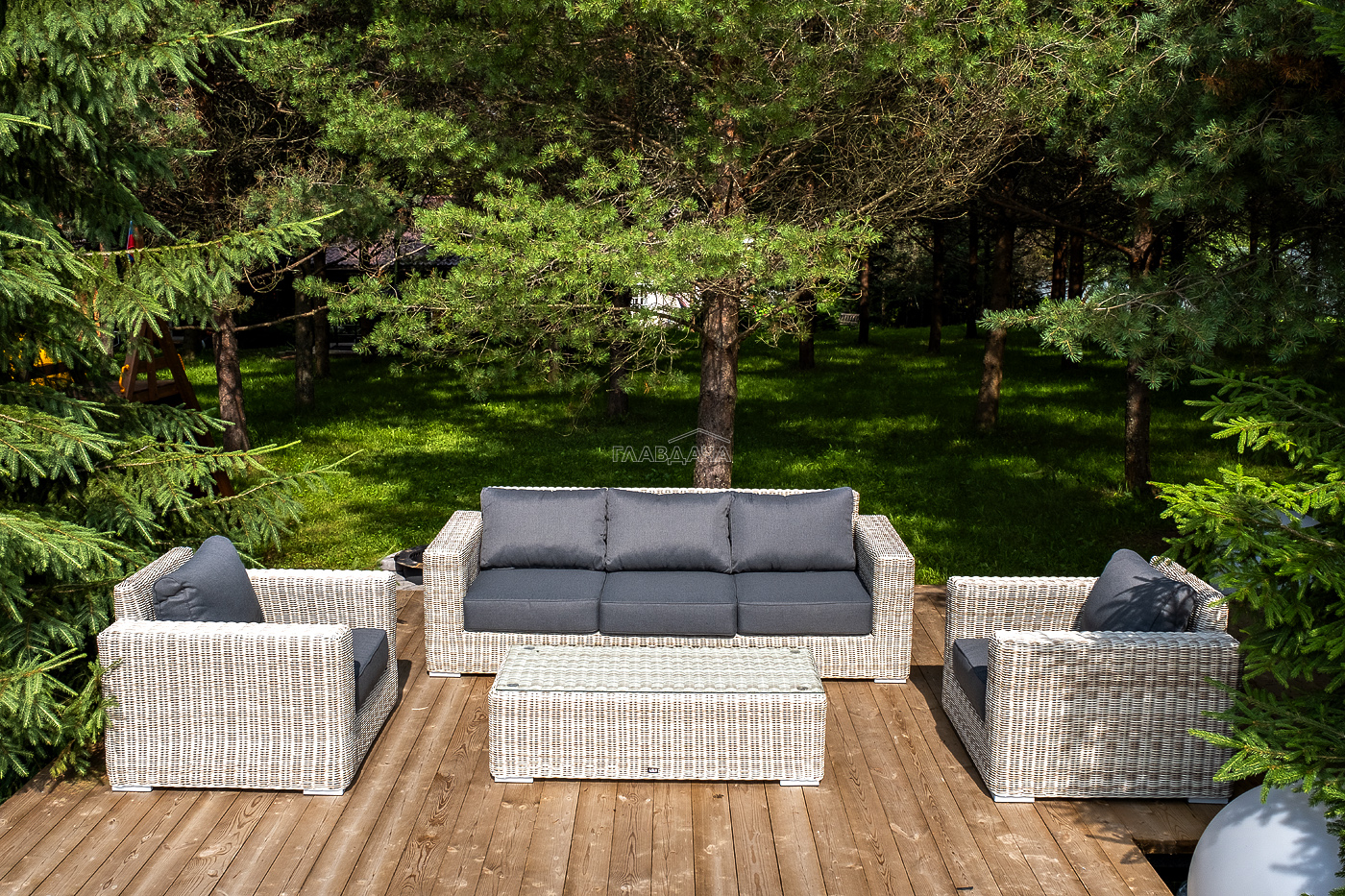 Комплект «Боно» с плетением из искусственного круглого ротанга для обустройства лаунж-зоны.