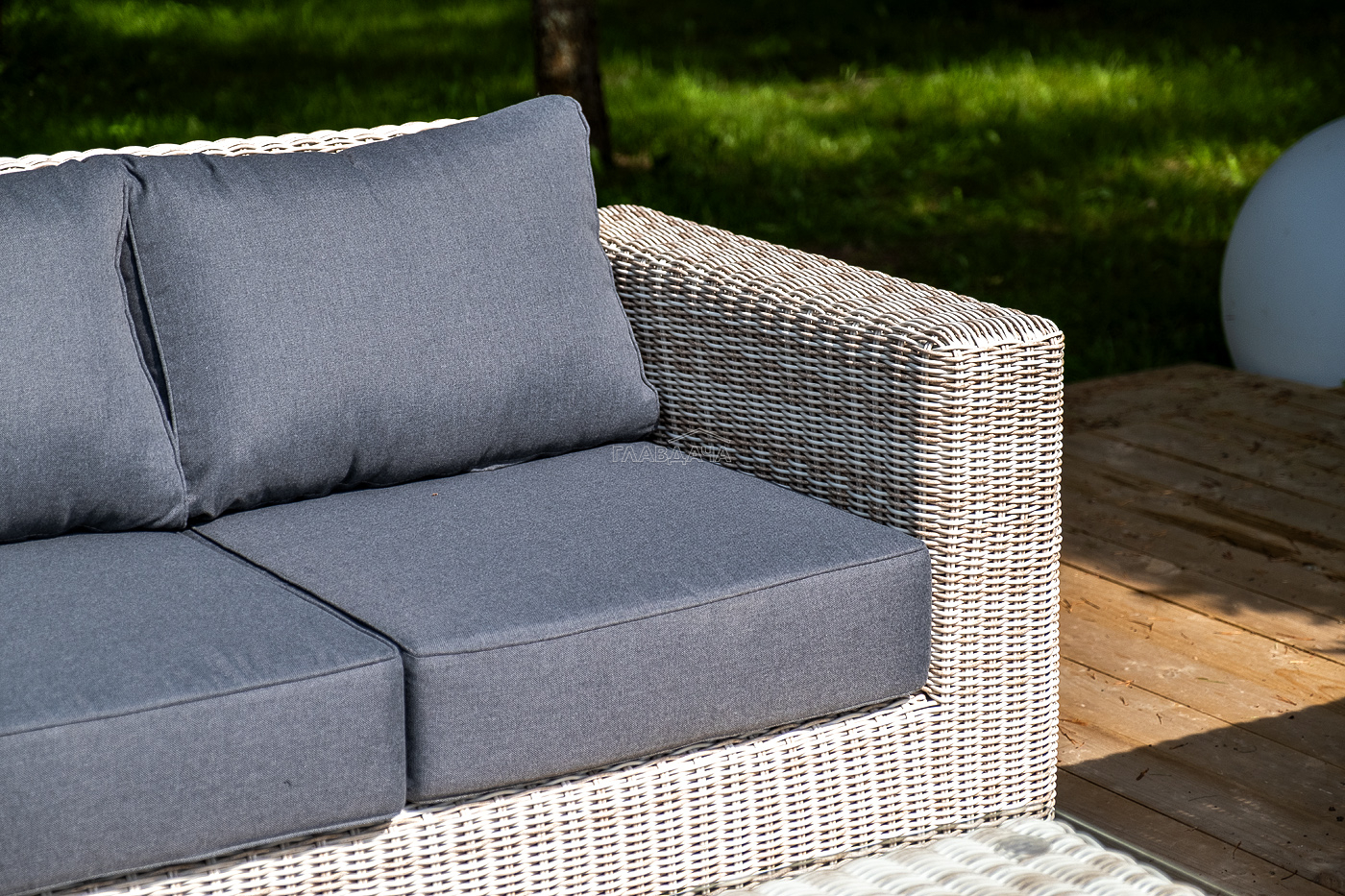 На креслах и диване предусмотрены мягкие подушки, съёмные чехлы которых пошиты из полиэстера, плотностью 300гр/м2. Ткань в обязательном порядке пропитывается влагоотталкивающими составами.