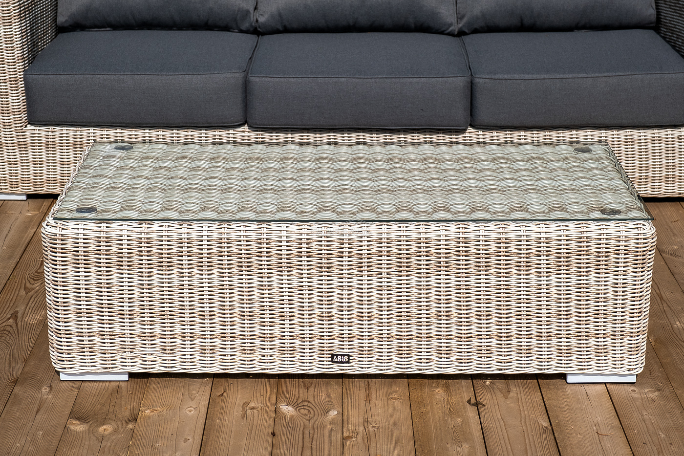 Поверхность плетеного столика представляет столешница из закаленного стекла – 5 мм.