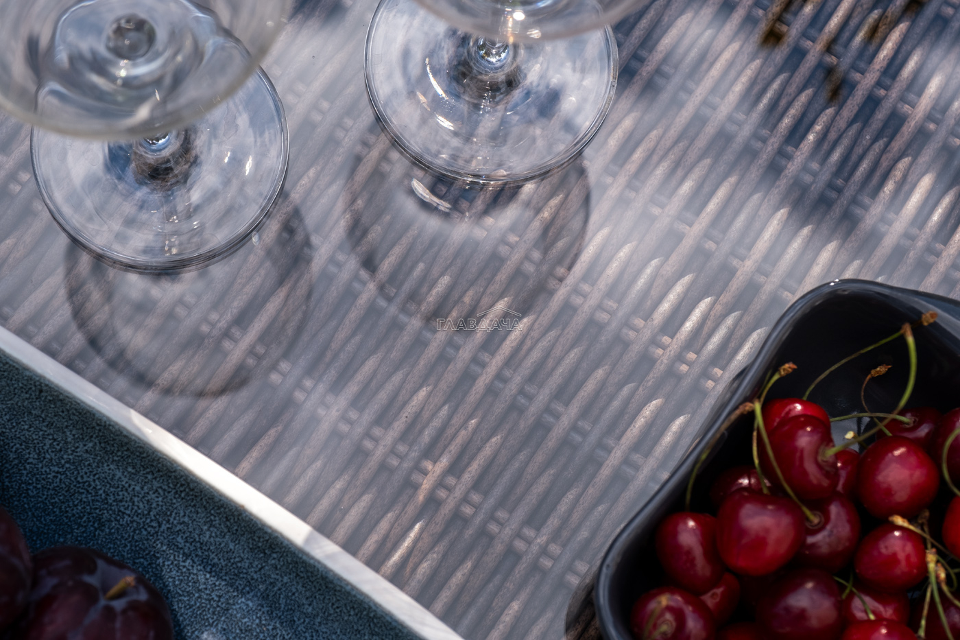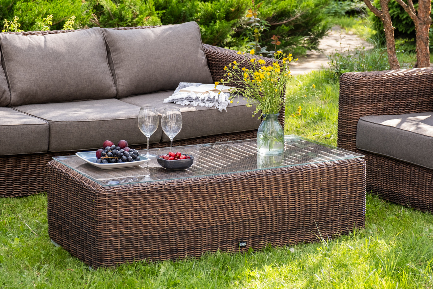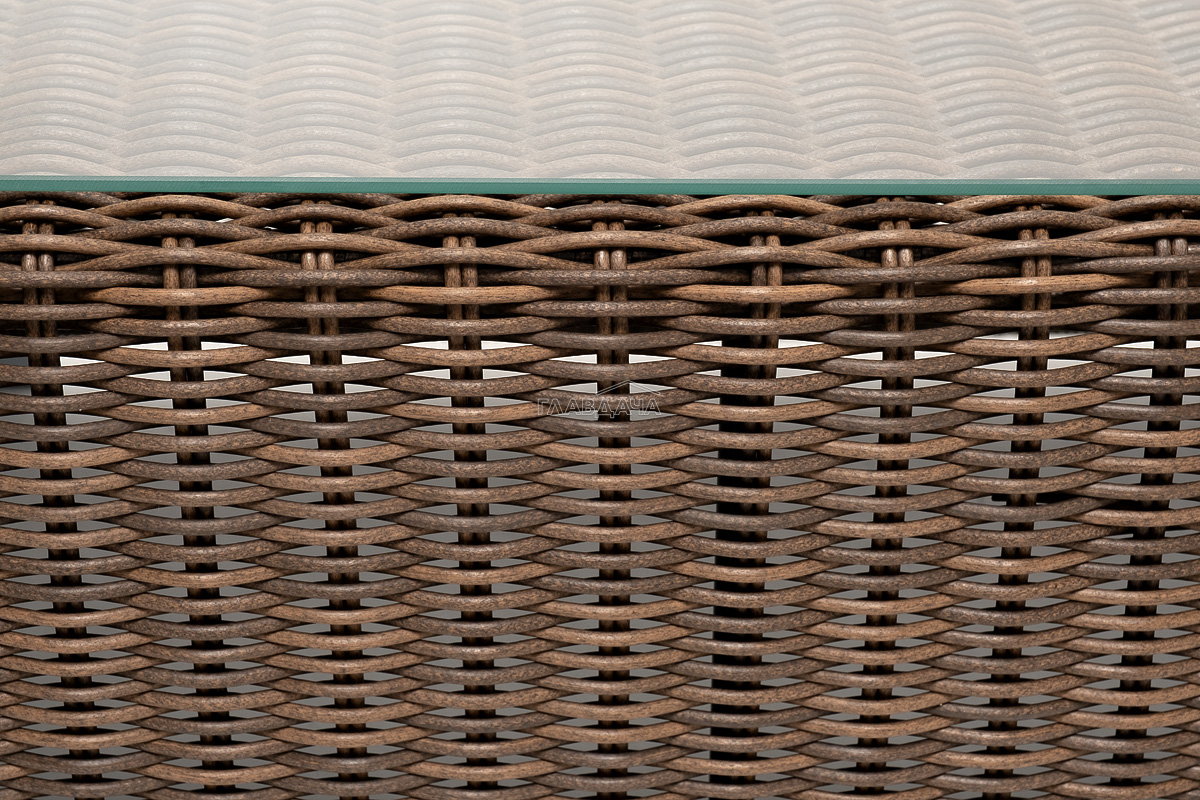 Поверхность плетеного столика представляет столешница из закаленного стекла – 5 мм.