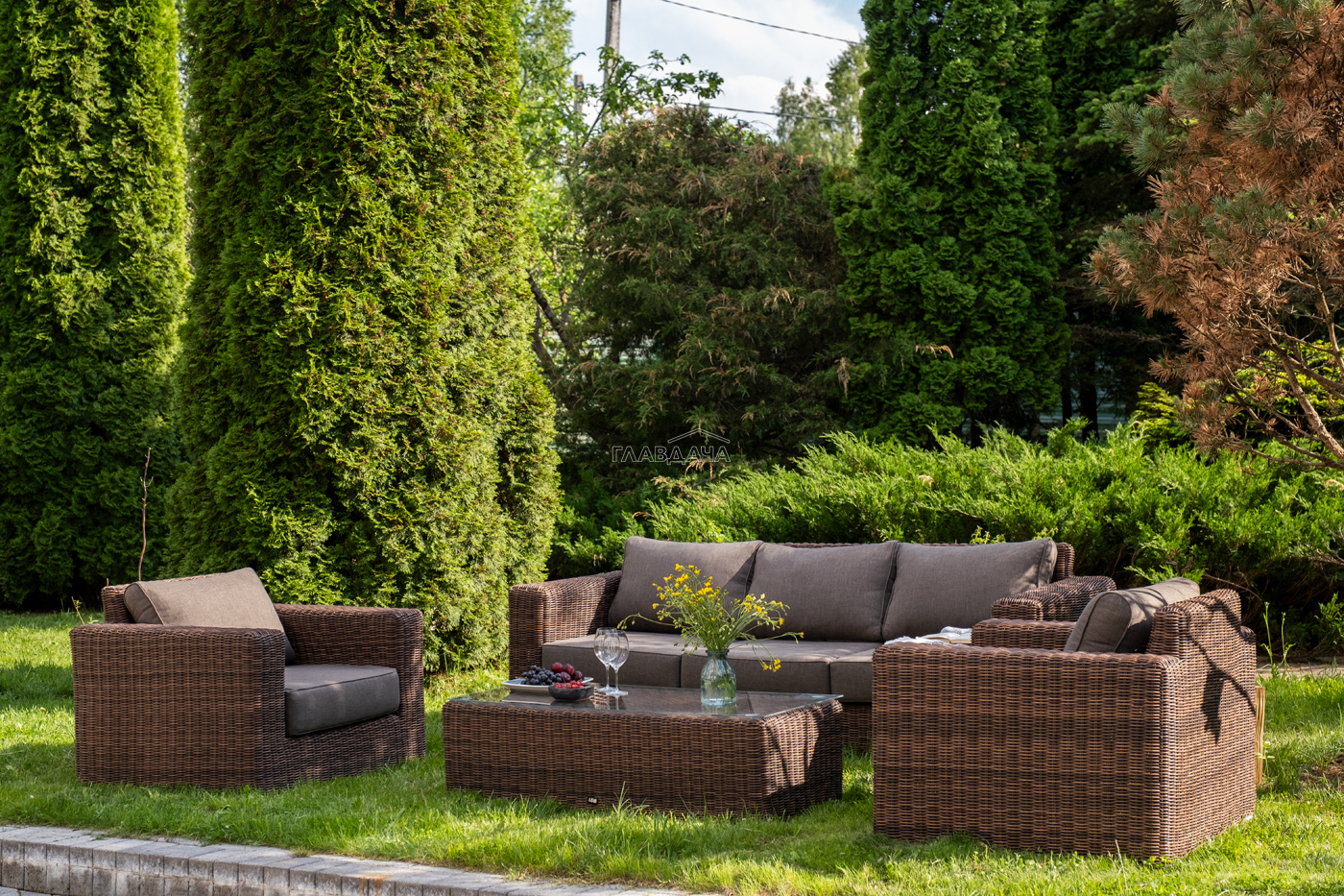 Комплект «Боно» с плетением из искусственного круглого ротанга для обустройства лаунж-зоны.