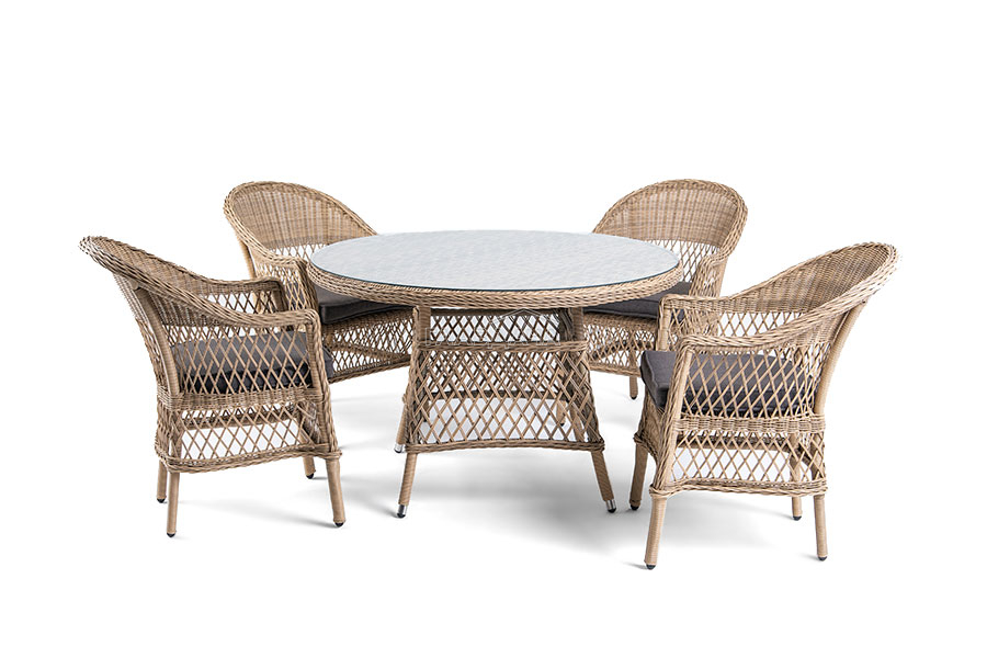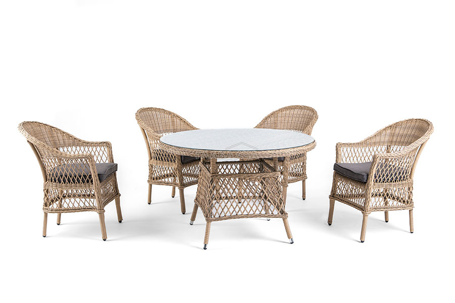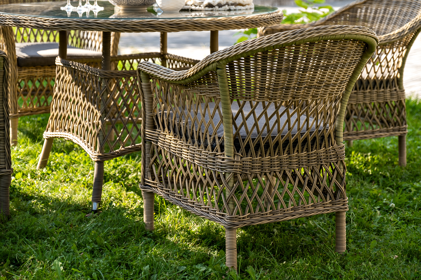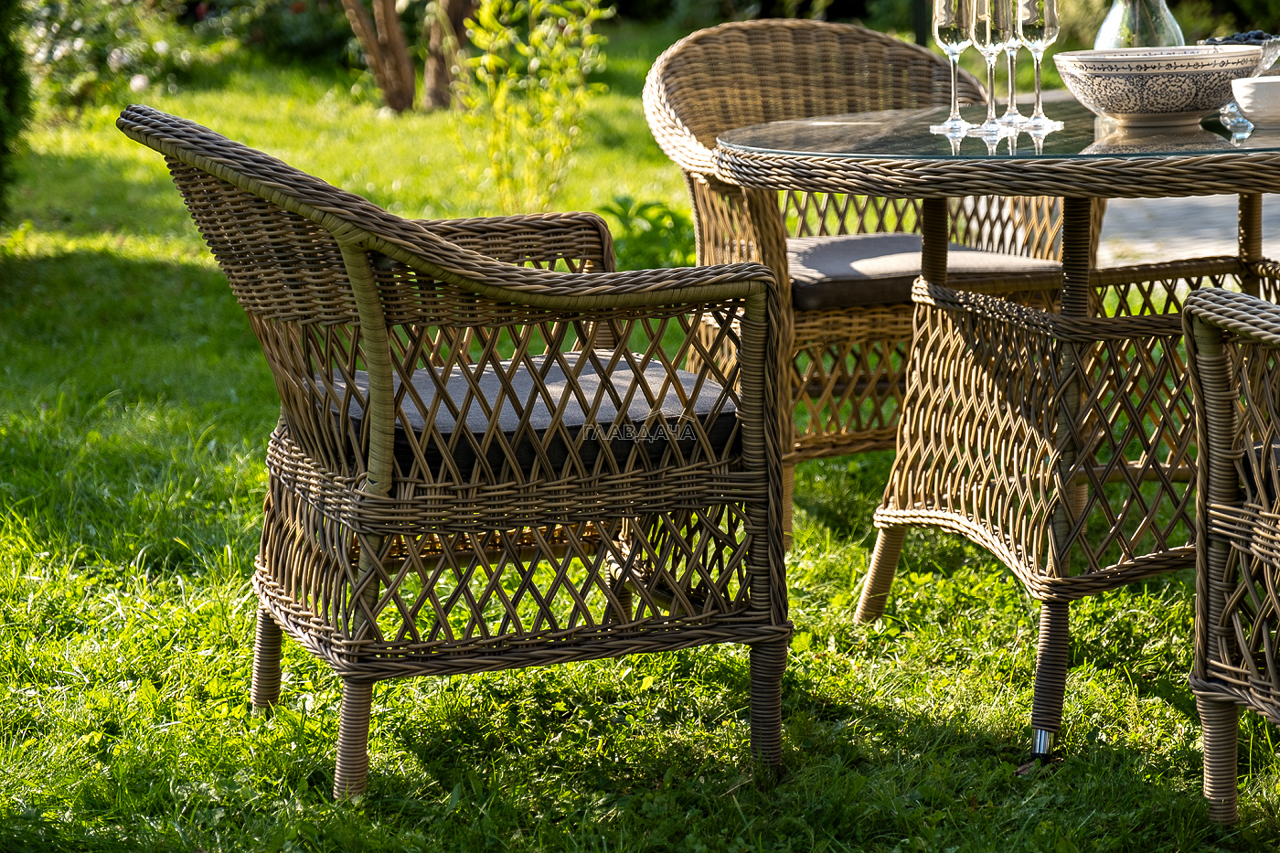 Обеденная группа «Дольче» дает возможность обустроить обеденную зону на открытом дачном участке, веранде или беседке.