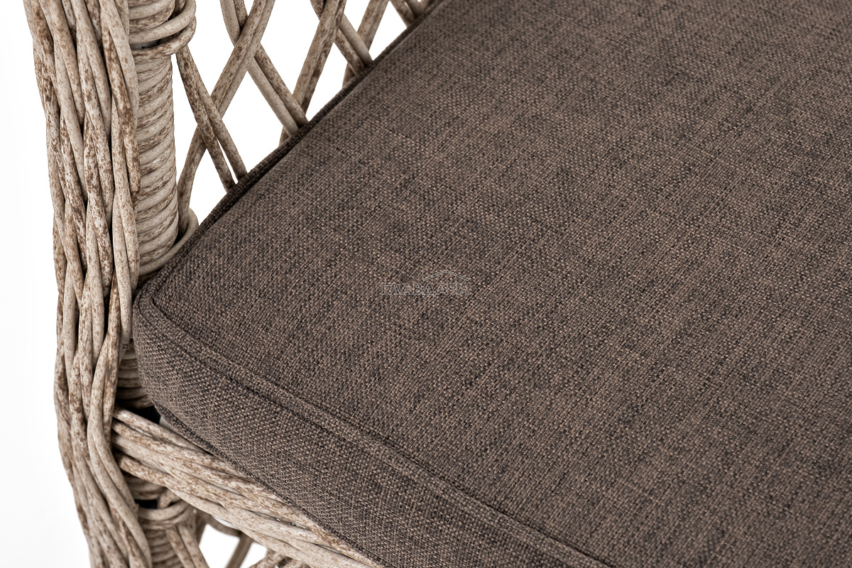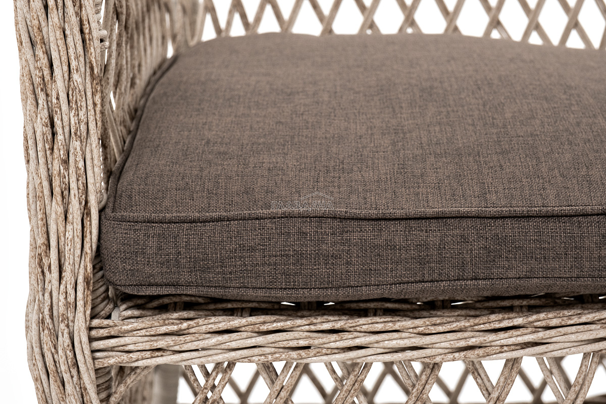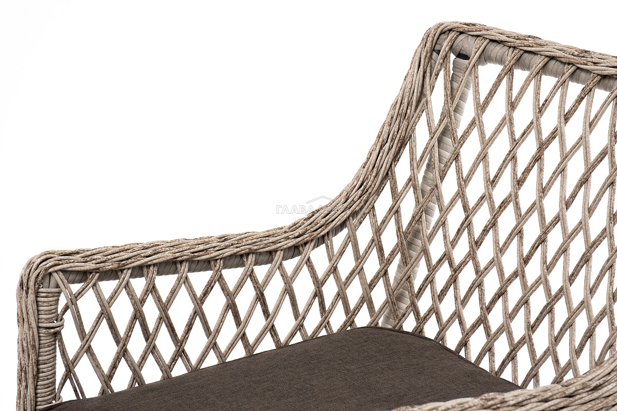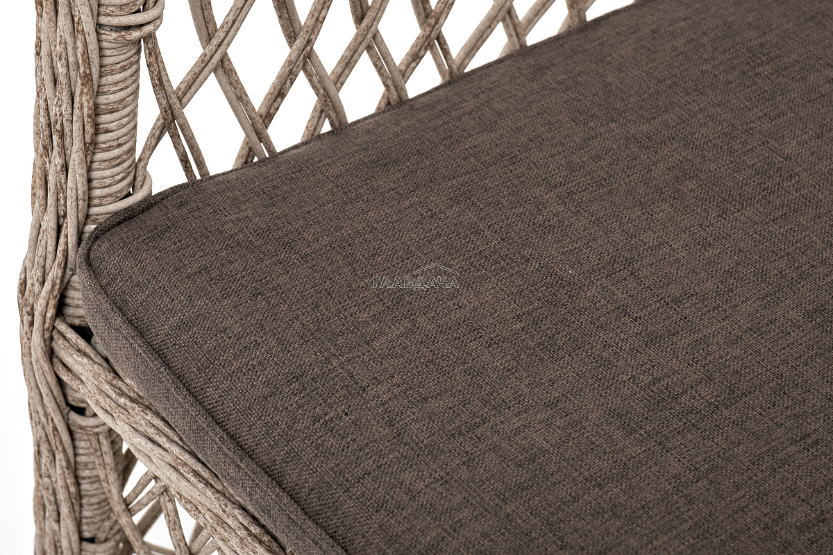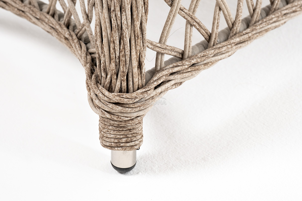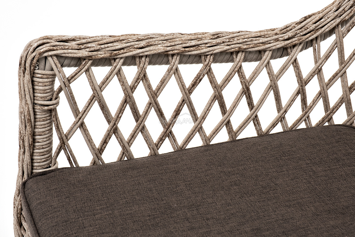 В плетеный комплект входит круглый стол «Эспрессо» диаметром 80 см с ударопрочной стеклянной столешницей и 2 кресла коллекции «Латте» 550×660×850 мм.