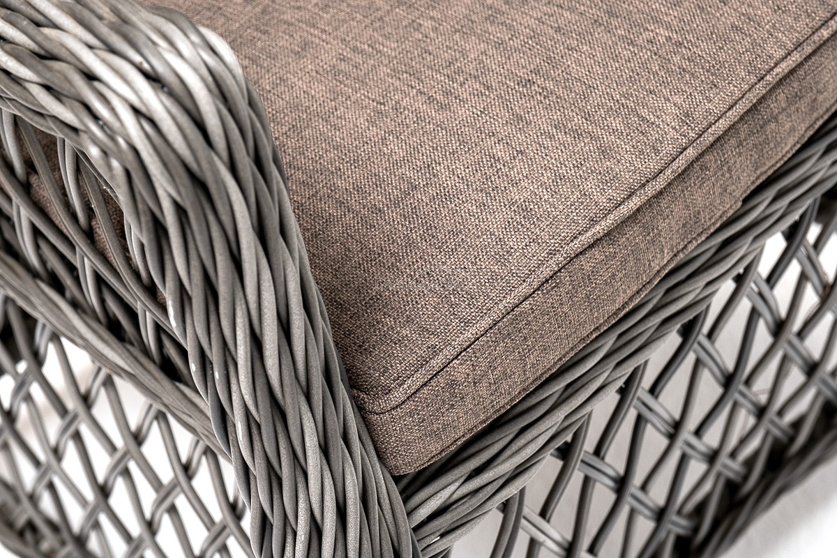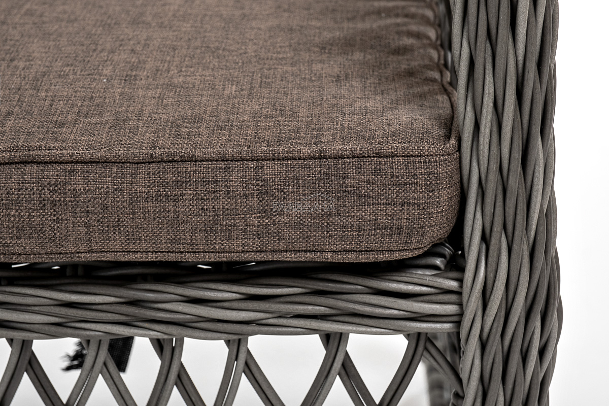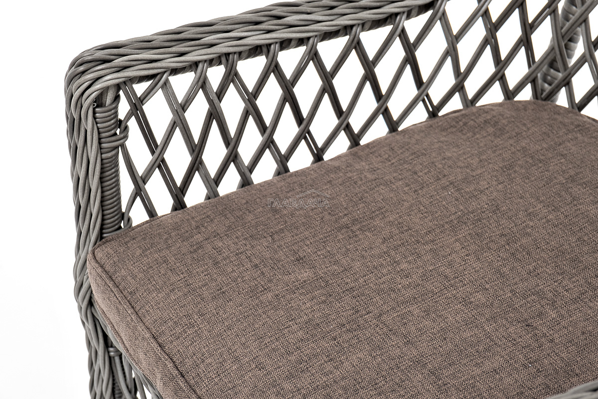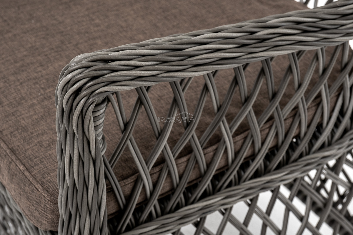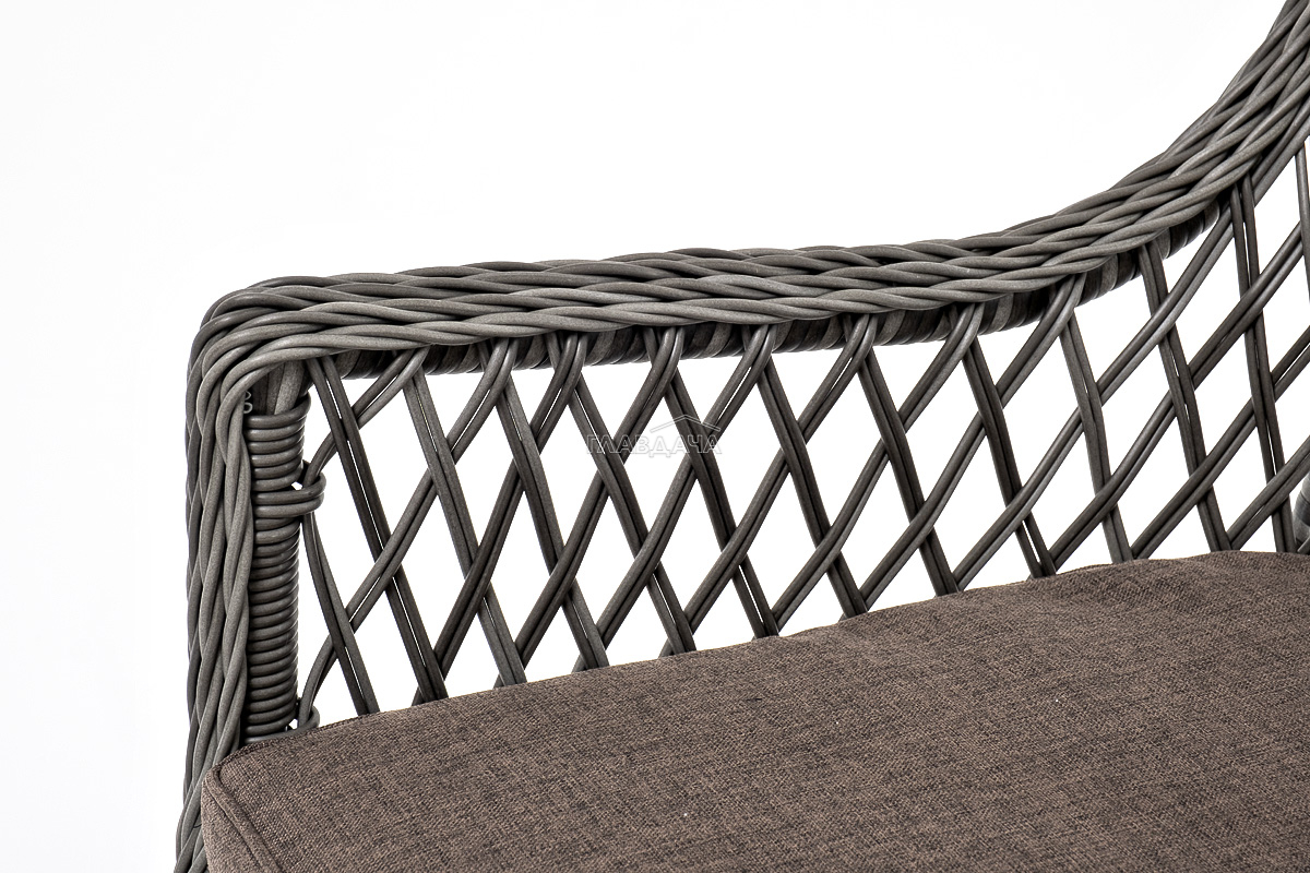 В плетеный комплект входит круглый стол «Эспрессо» диаметром 80 см с ударопрочной стеклянной столешницей и 2 кресла коллекции «Латте» 550×660×850 мм.