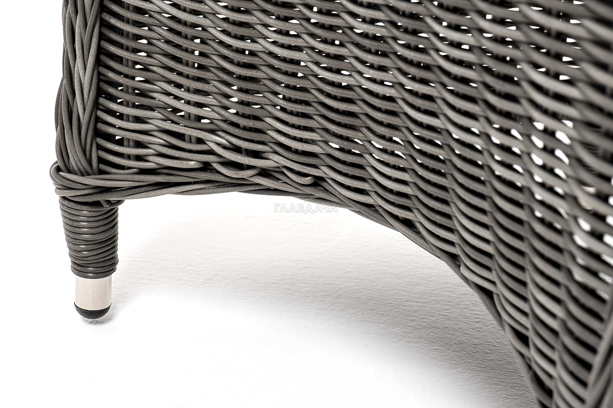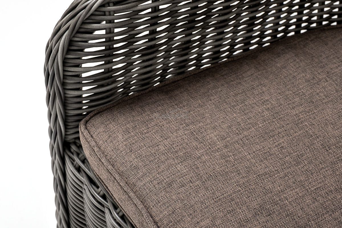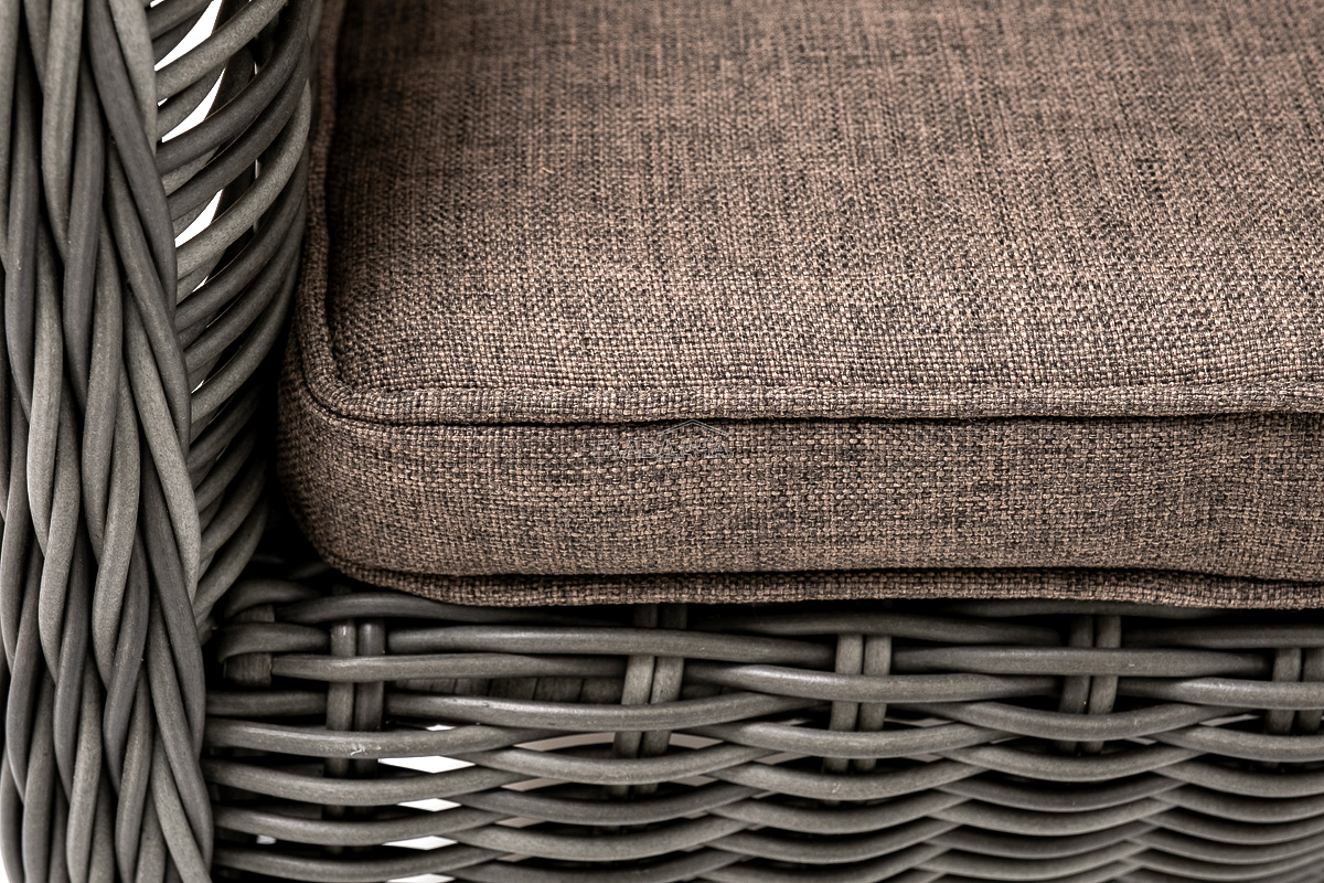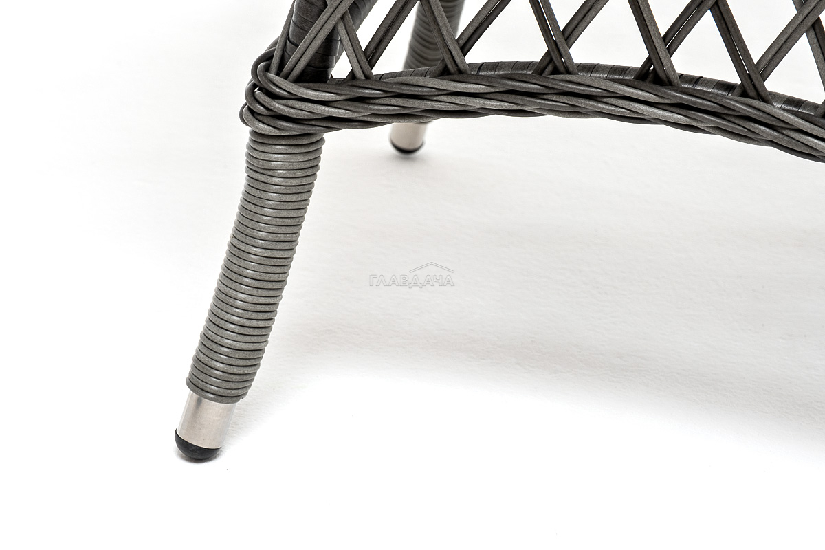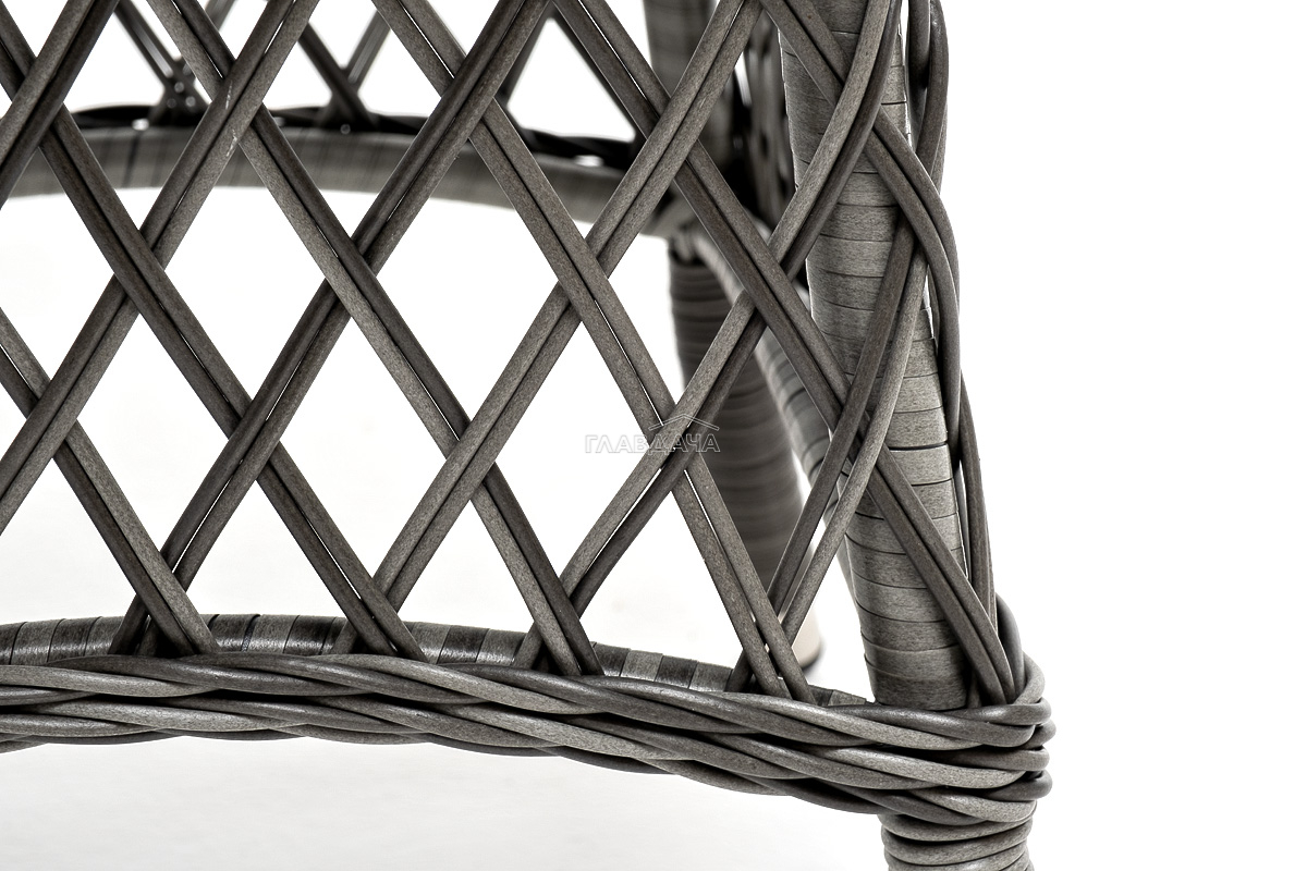 В плетеный комплект входит круглый стол «Эспрессо» диаметром 80 см с ударопрочной стеклянной столешницей и 2 кресла коллекции «Равенна» 570×680×810 мм.