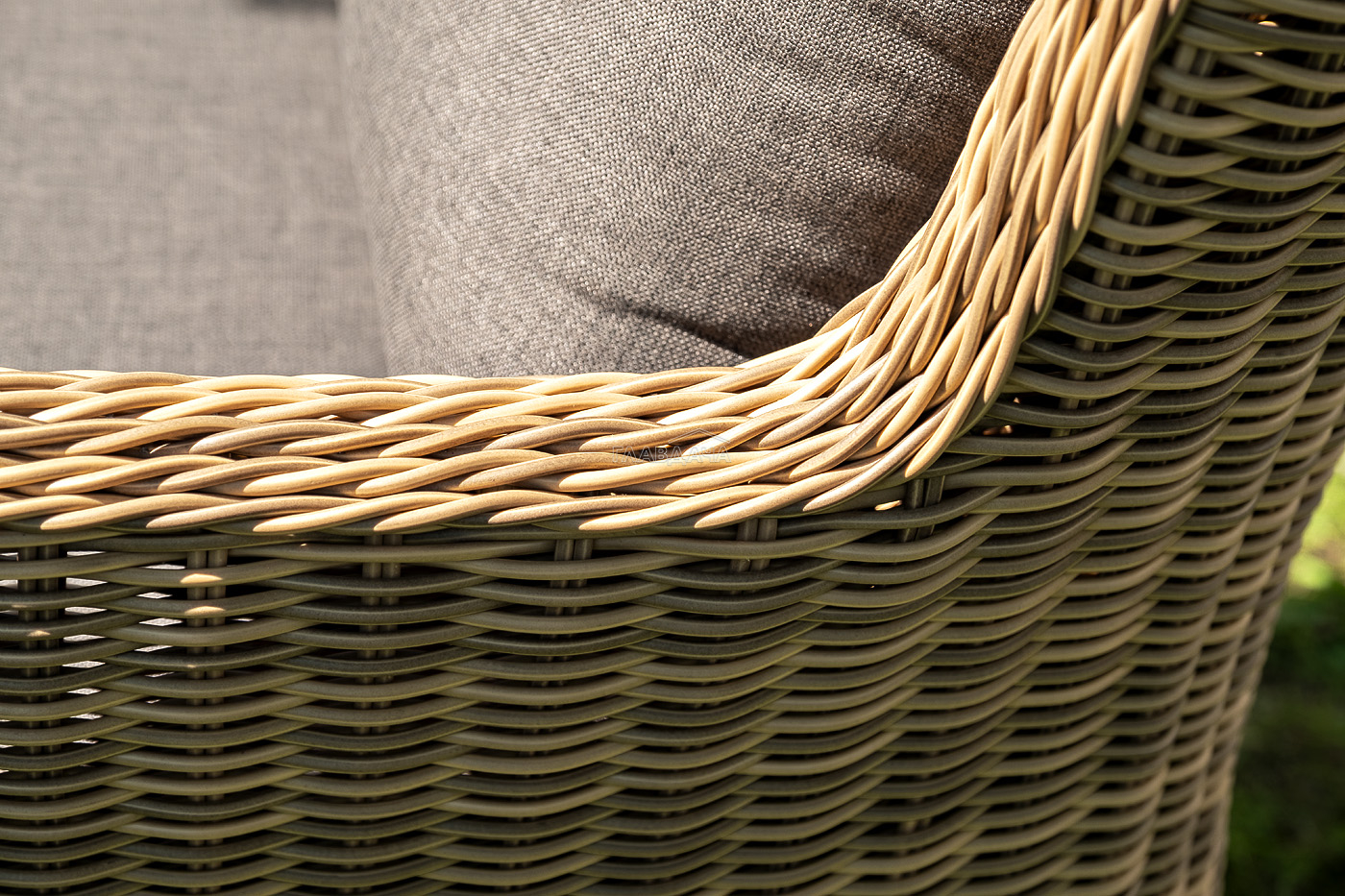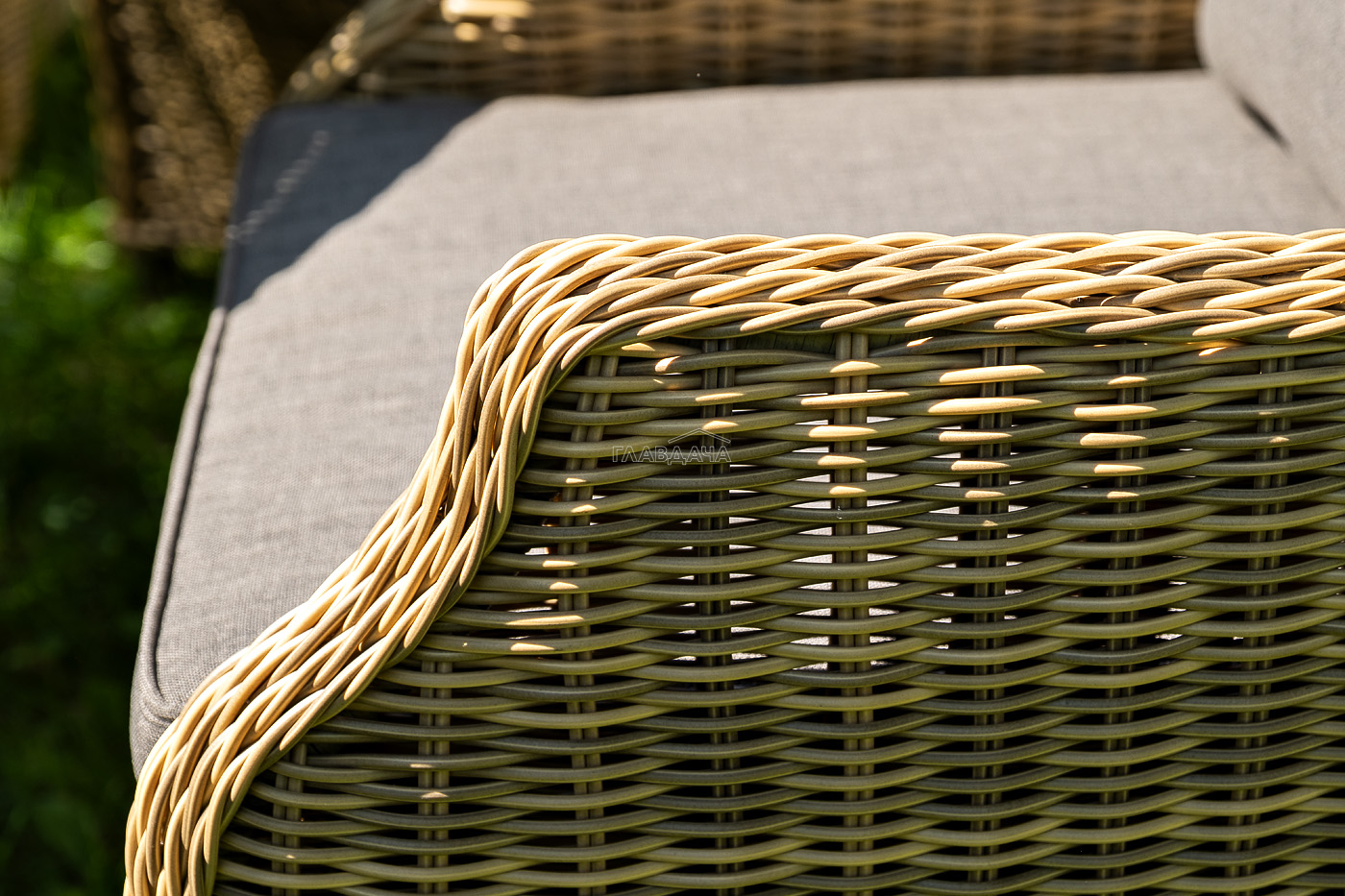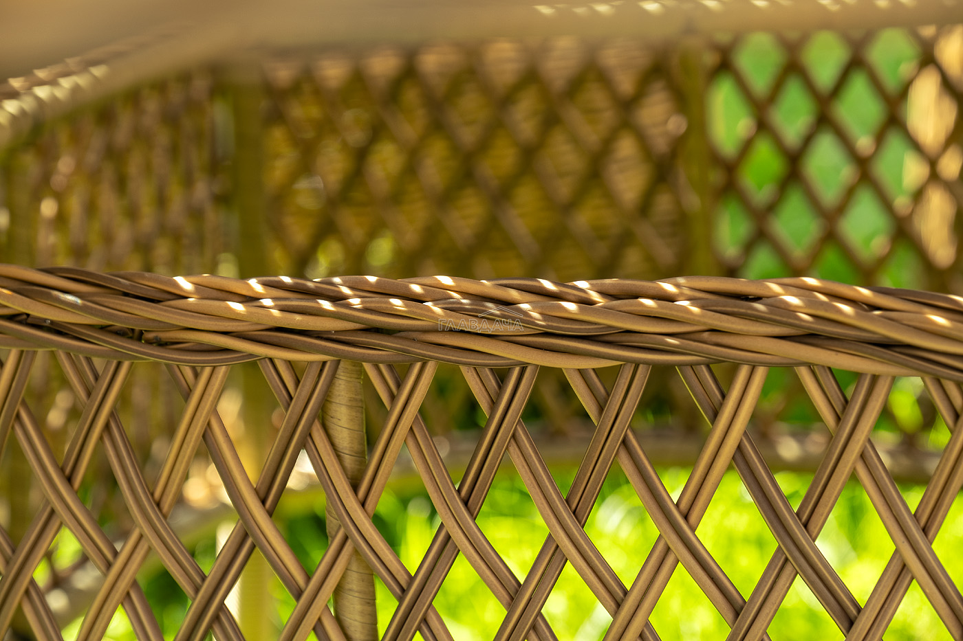 Вся мебель изготовлена из долговечного и легкого алюминия, обтянутого синтетическим ротангом. На столе для удобства эксплуатации предусмотрена столешница из ударопрочного закаленного стекла 5 мм. Стулья укомплектованы подушками на сидениях и на спинках.