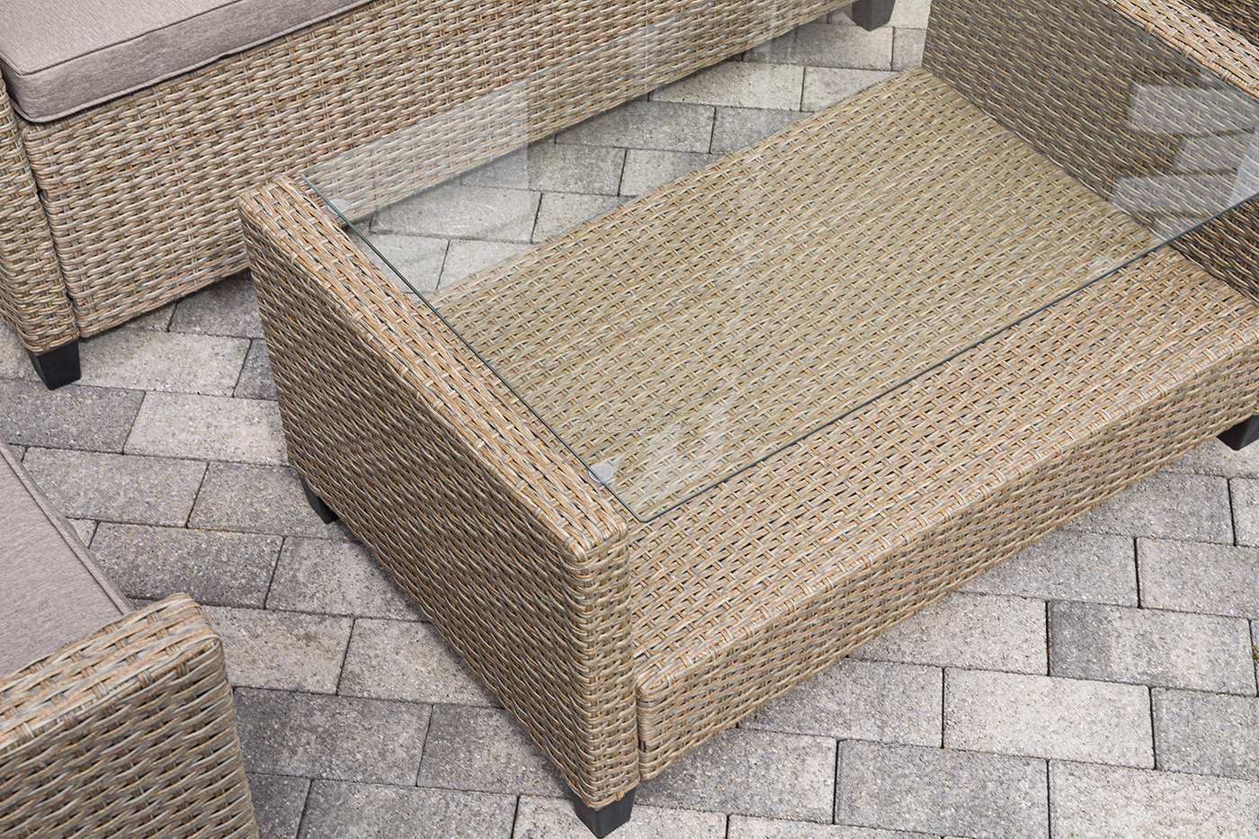 Стол выполнен из стали, вручную оплетенного круглым искусственным ротангом. Столешница из закаленного стекла толщиной 5 мм.