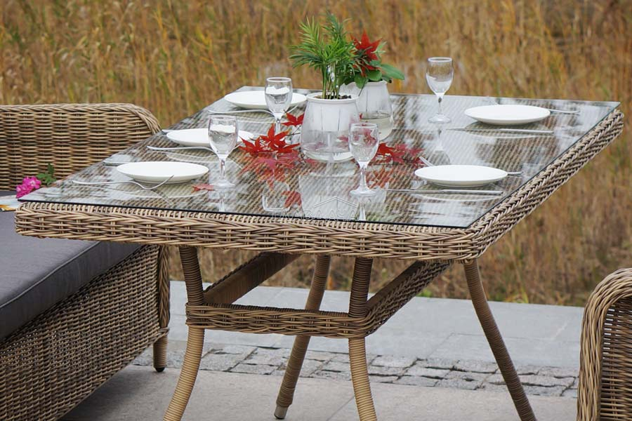 Столешница обеденного стола изготовлена из высокопрочного закаленного стекла, которое по стандартам используется в пищевой промышленности.