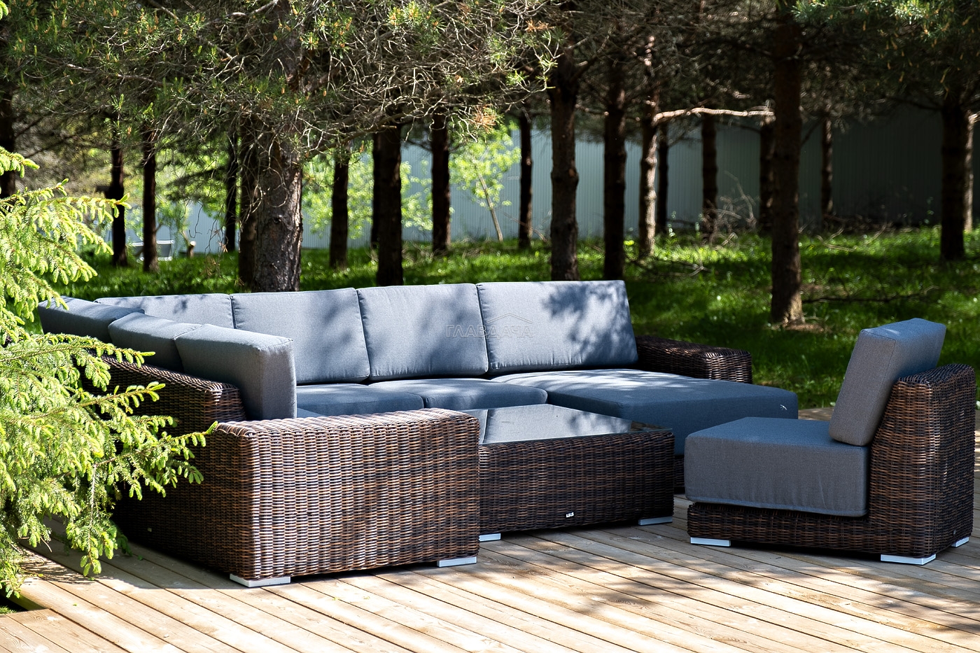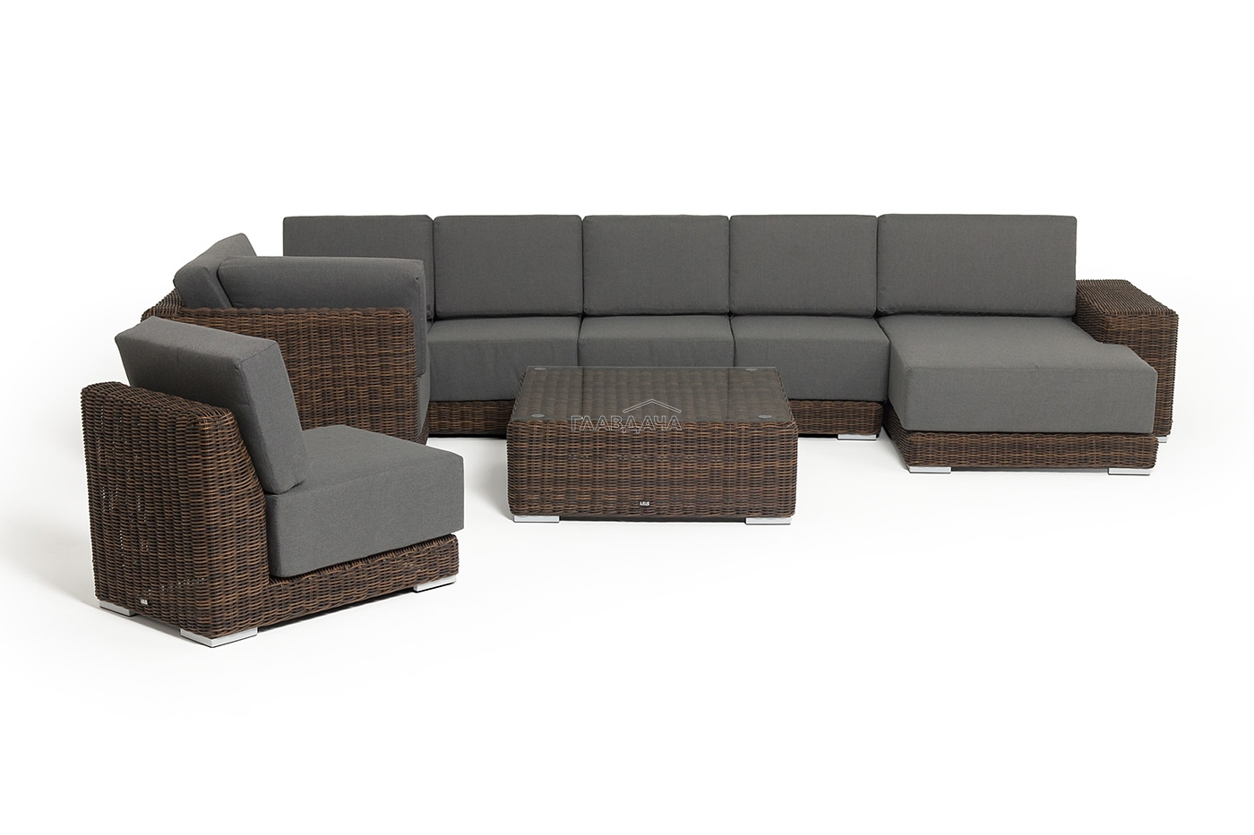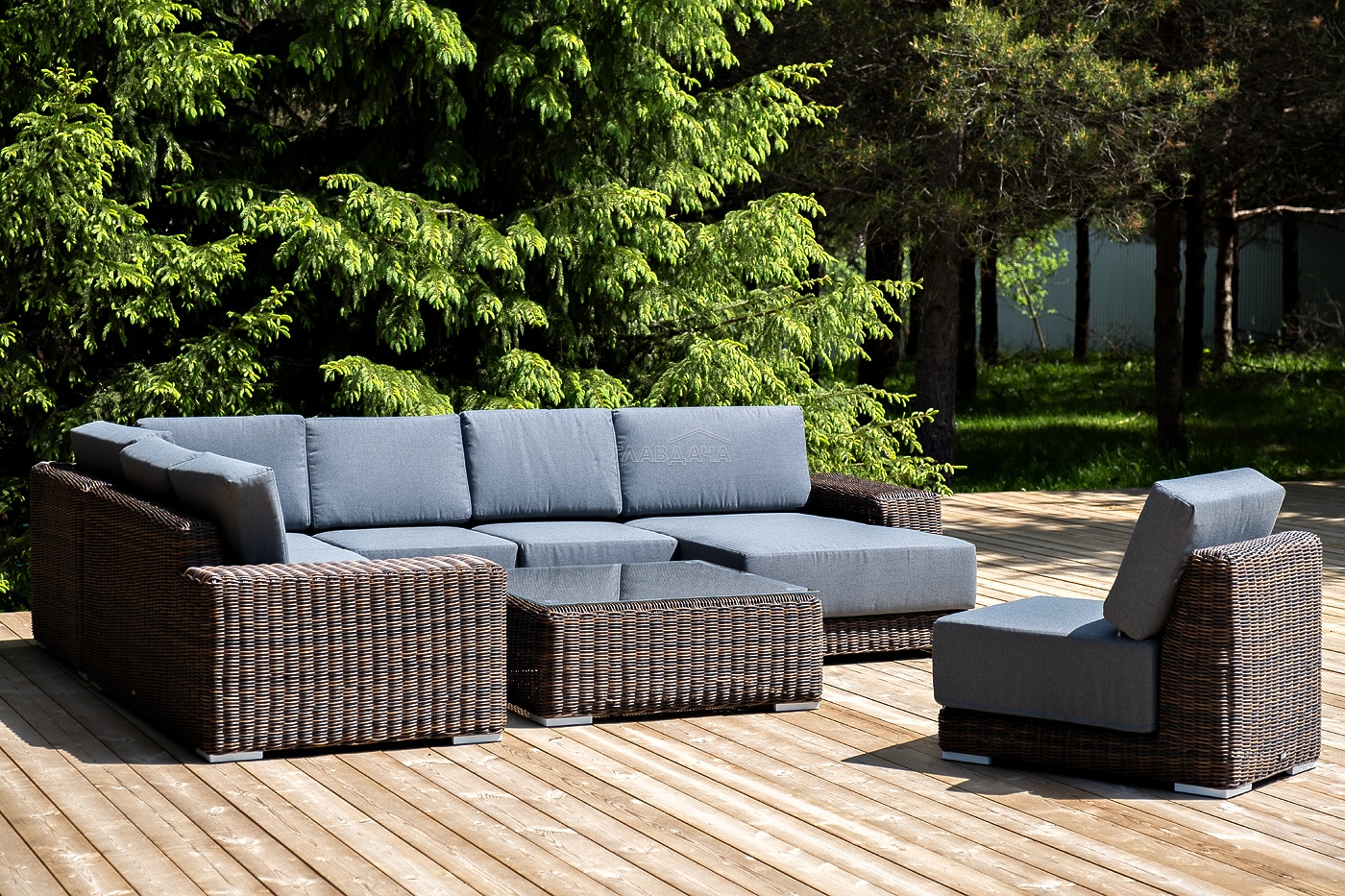Составная и легко трансформирующаяся лаунж-зона «Капри» гармонично дополнит зону отдыха на частной территории.