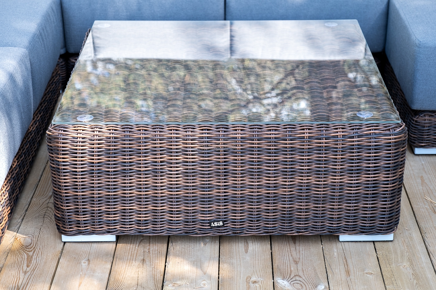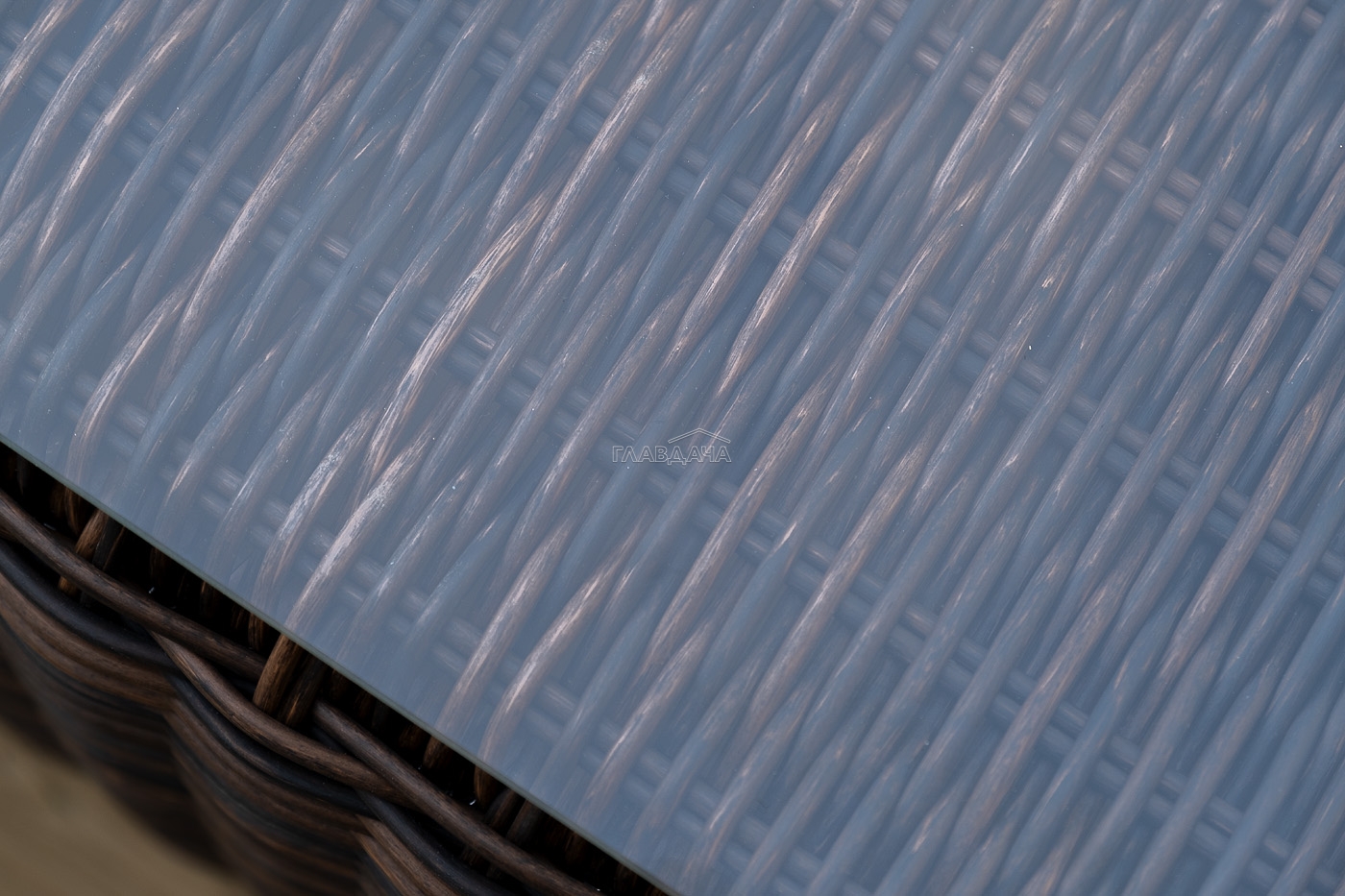 Плетеный столик имеет стеклянную столешницу, изготовленную из прочного закаленного стекла, толщина - 5 мм.