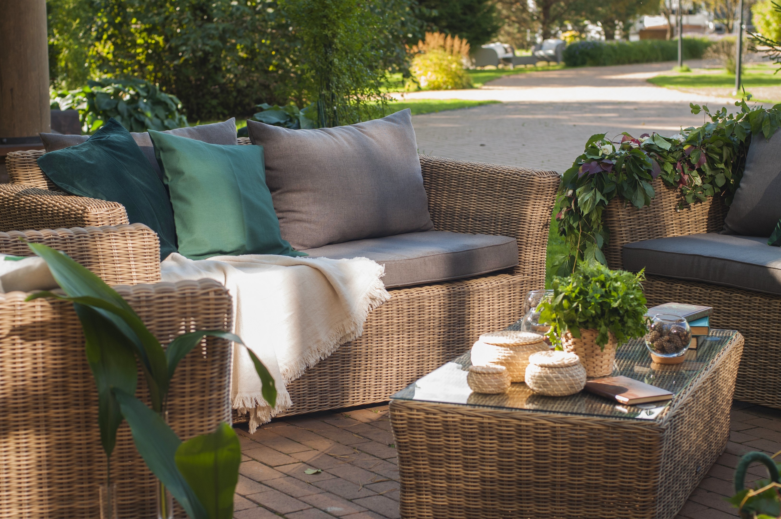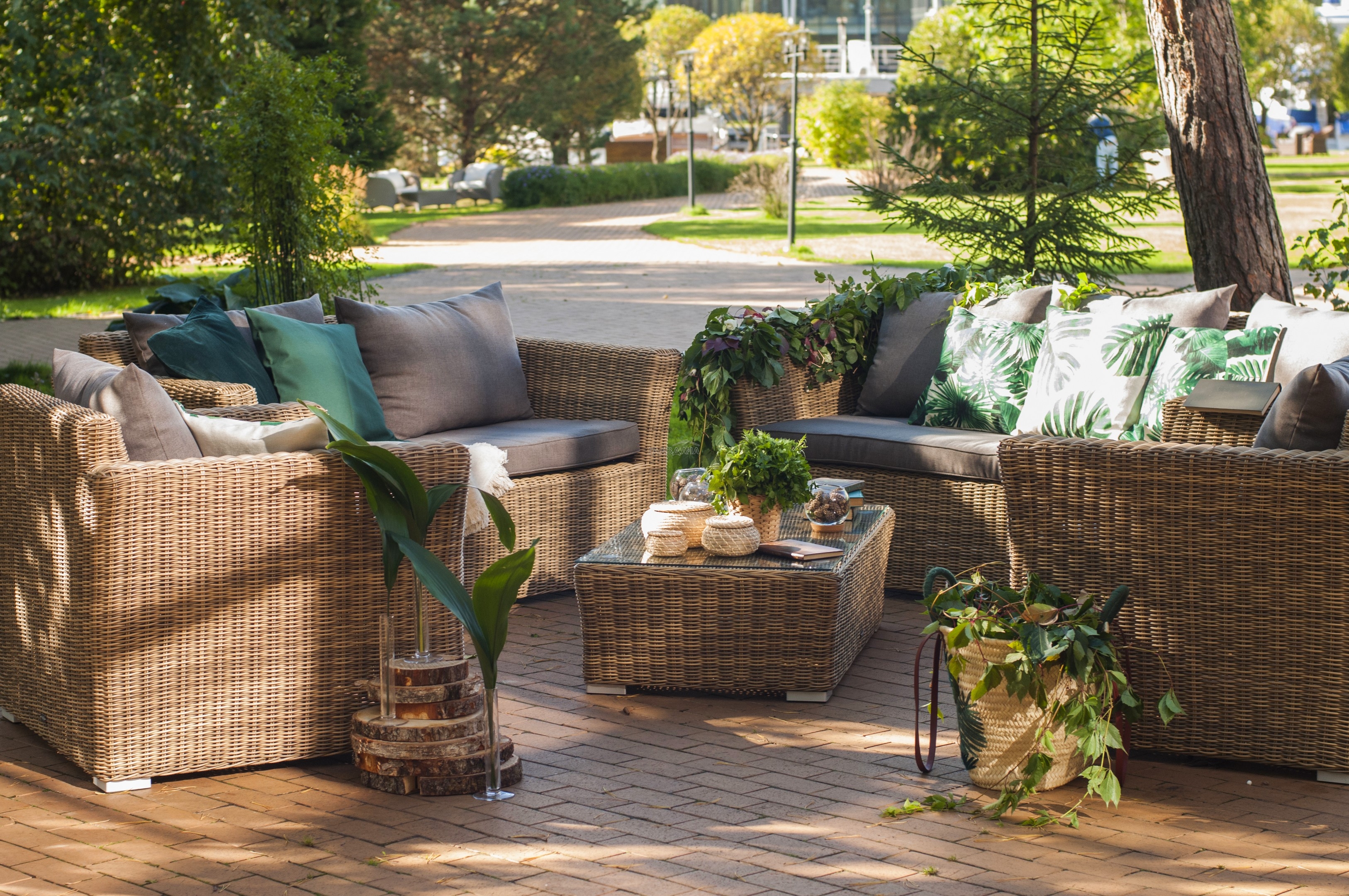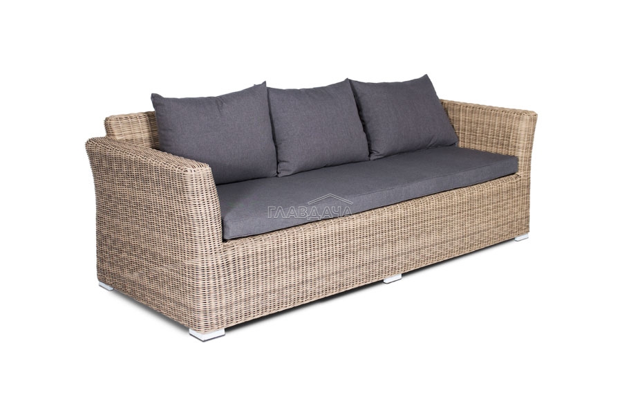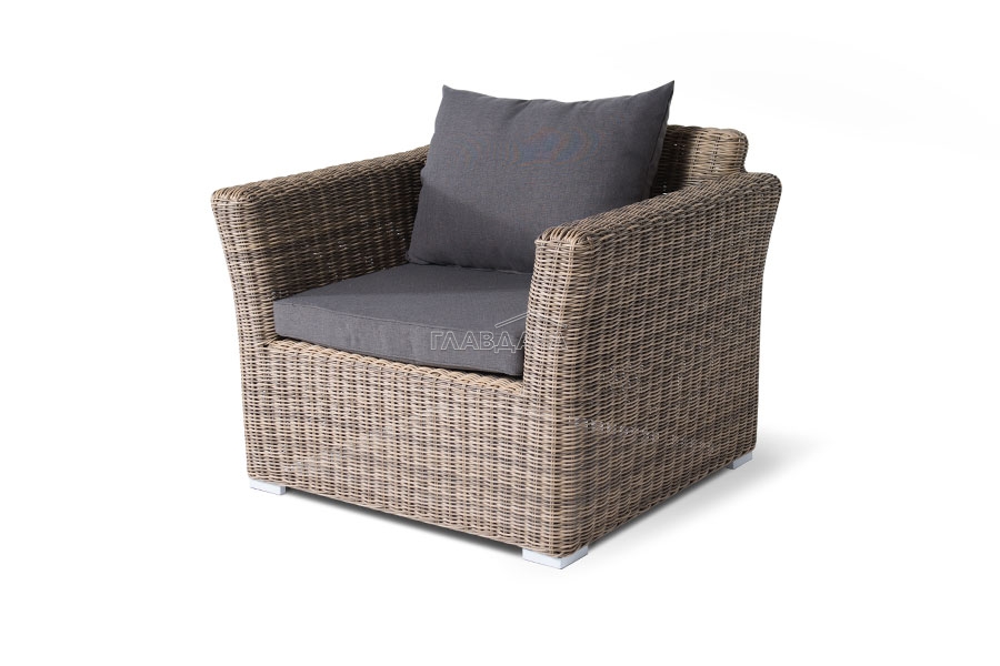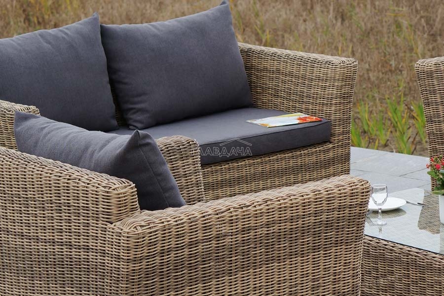 Садовые диваны и кресла поставляются вместе с подушками. Они упакованы в съёмные чехлы, которые при необходимости можно стирать. Для их производства берется полиэстер, плотность 300гр/м2. Материал защищен с помощью влагоотталкивающих составов. Цвет подушек – серый.