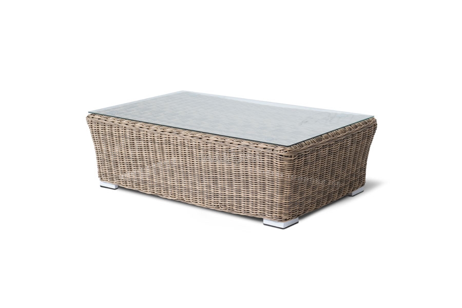 Столешница садового журнального столика создана из закаленного стекла. Его толщина составляет 5 мм. Крепится к плетеной поверхности с помощью вакуумных прозрачных присосок.