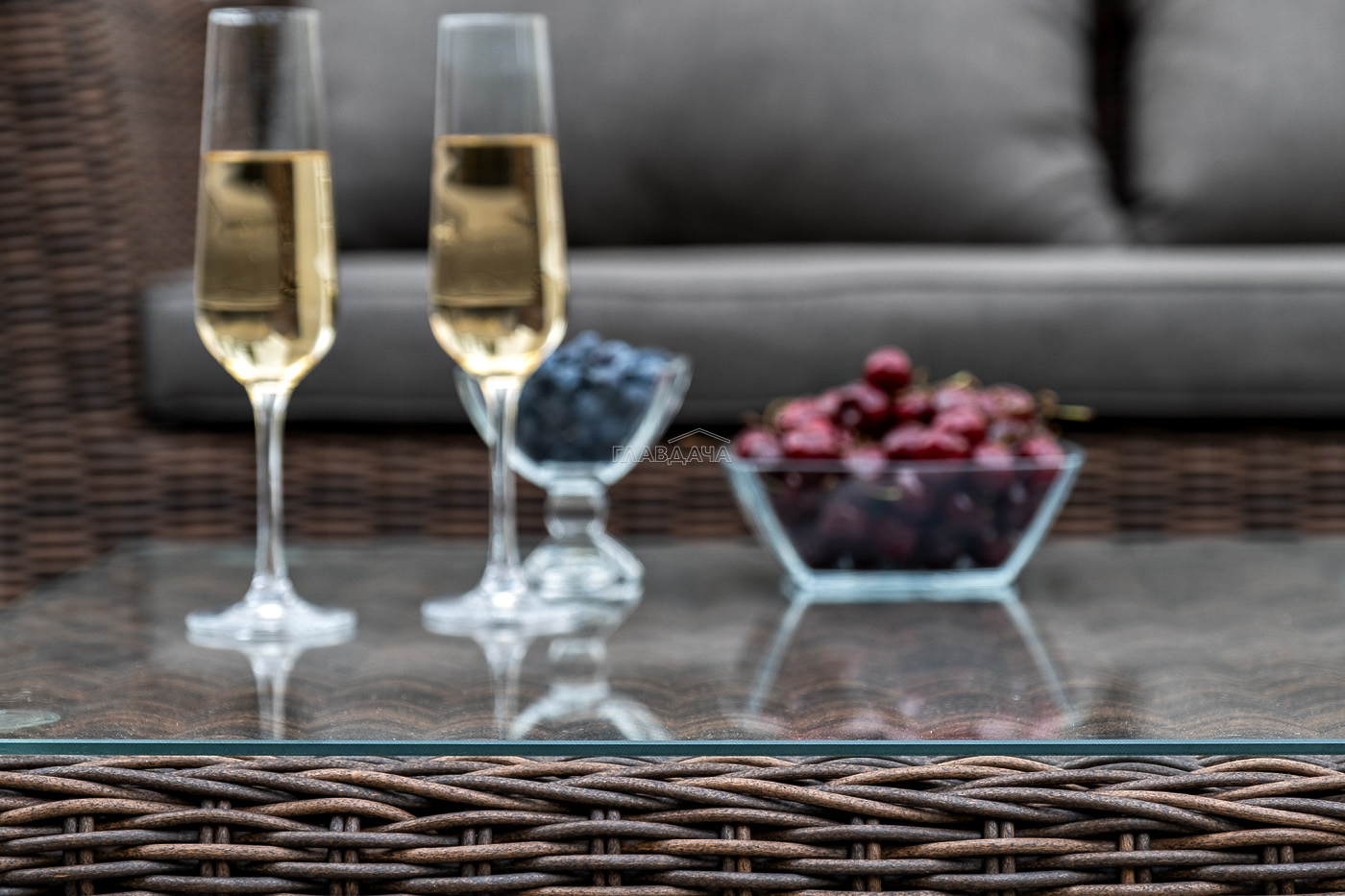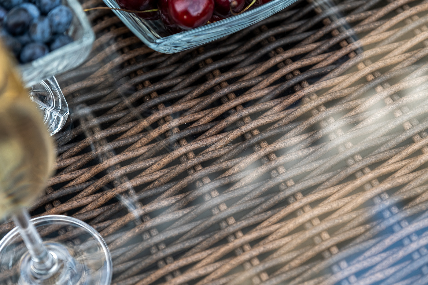 Поверхность плетеного столика представляет столешница из закаленного стекла – 5 мм.