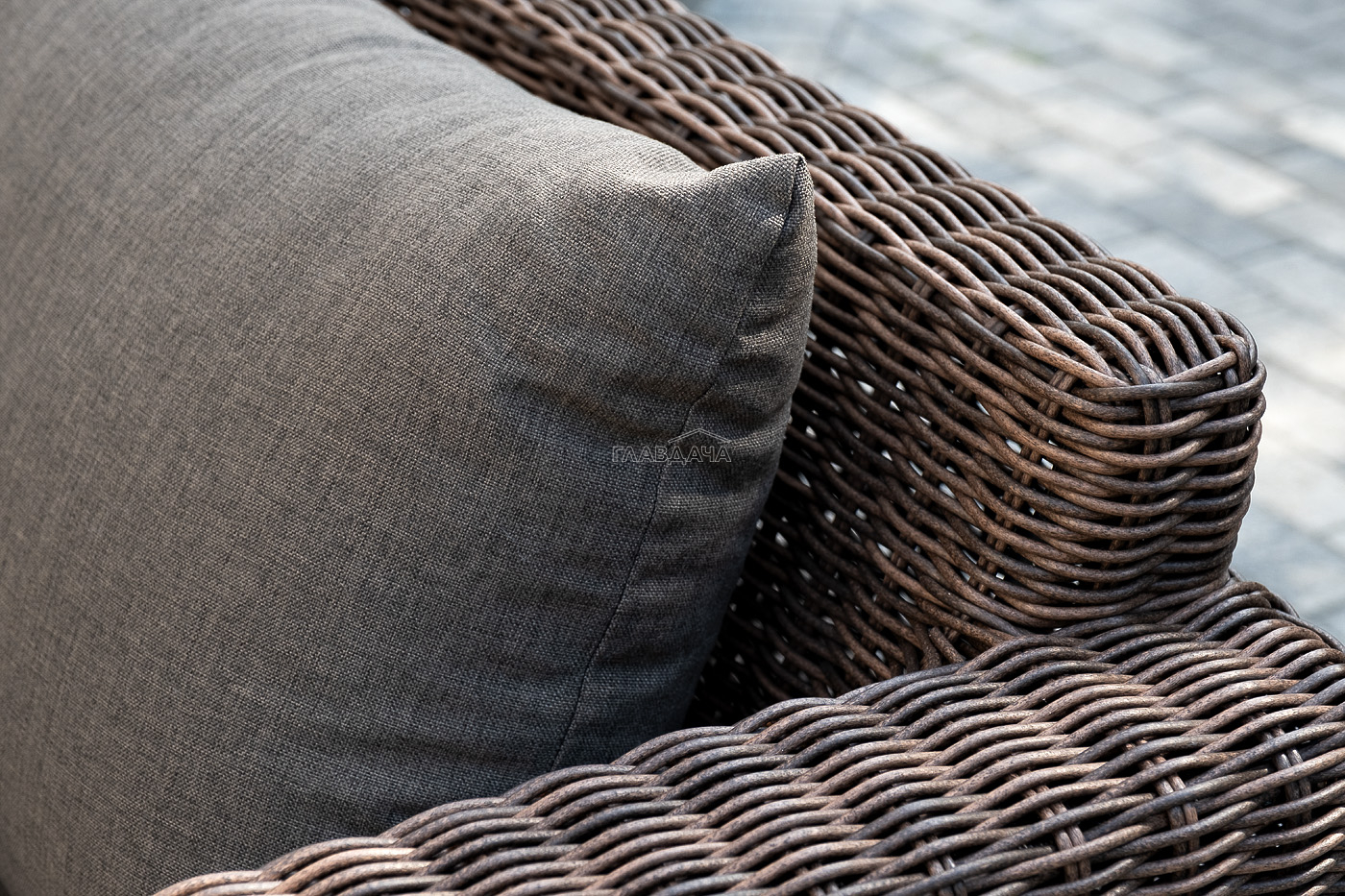 На креслах и диване расположились мягкие подушки, съёмные чехлы которых пошиты из полиэстера, плотностью 300гр/м2. Ткань в обязательном порядке пропитывается влагоотталкивающими составами.