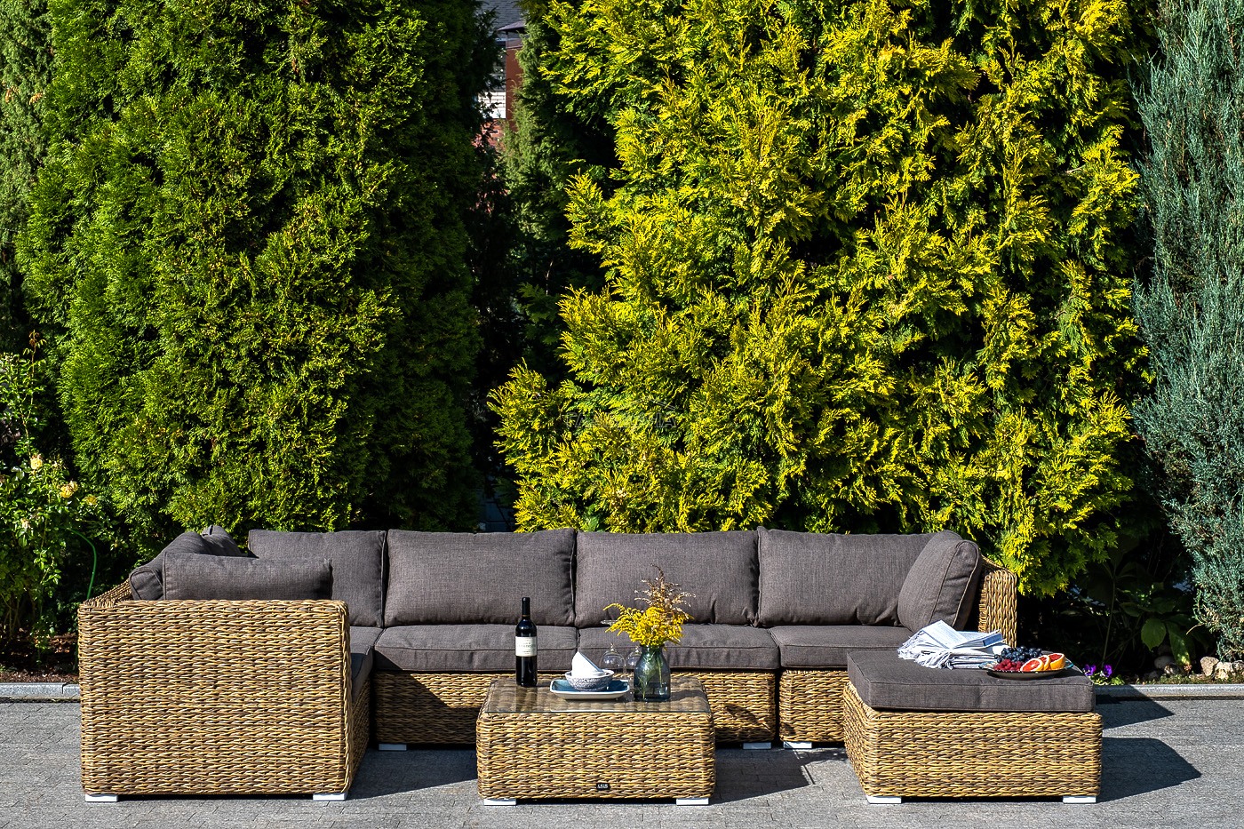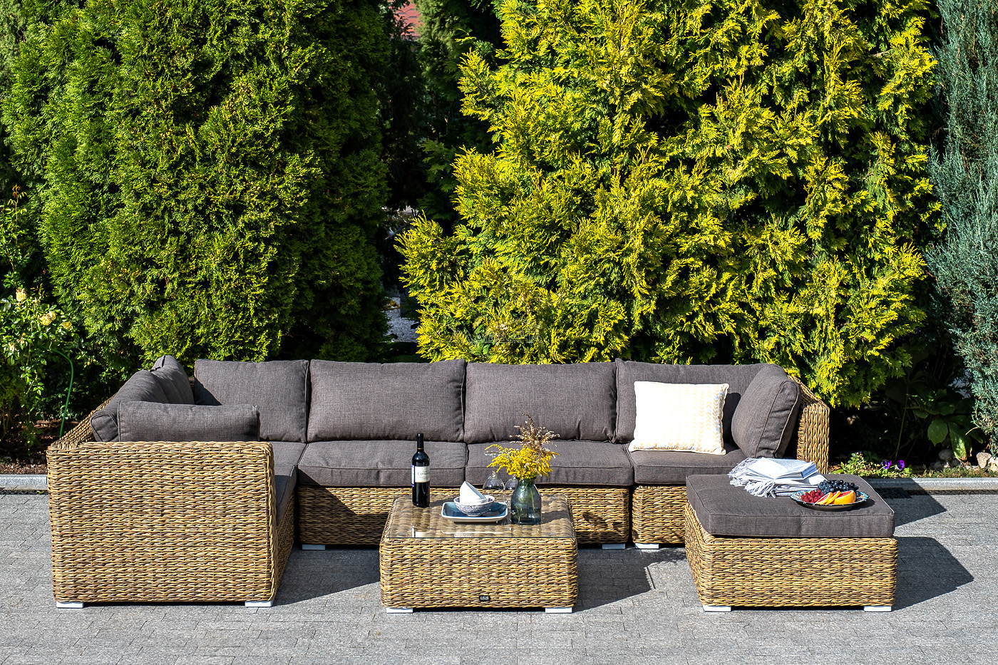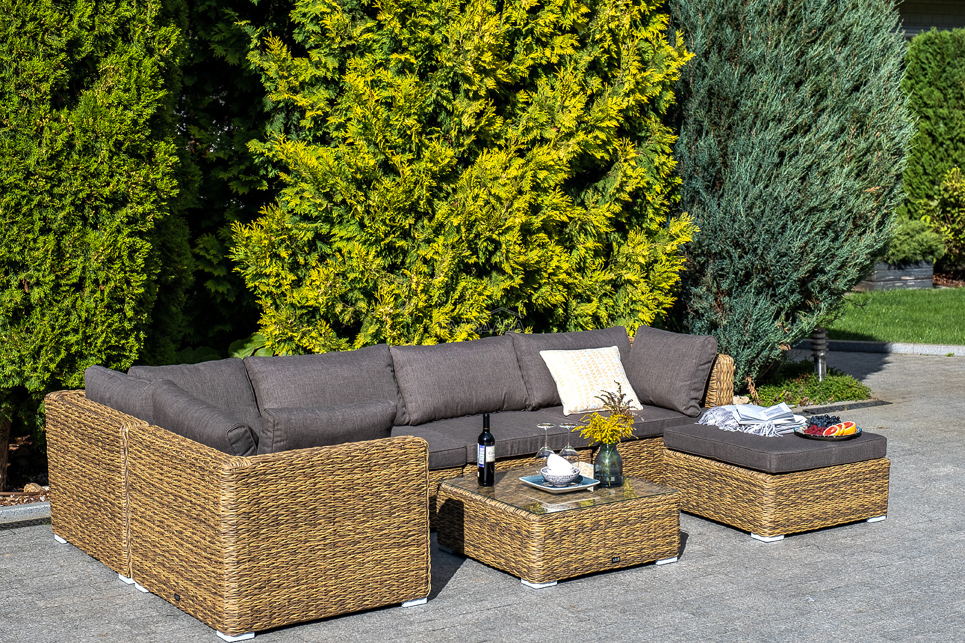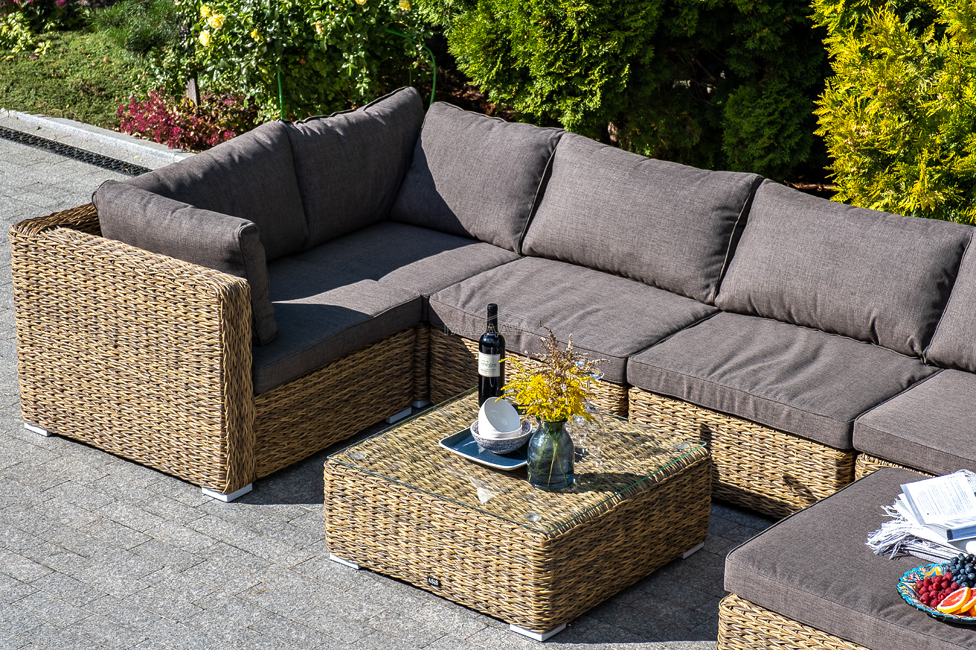 Составная и легко трансформирующаяся лаунж-зона «Лунго» гармонично дополнит зону отдыха на частной территории.