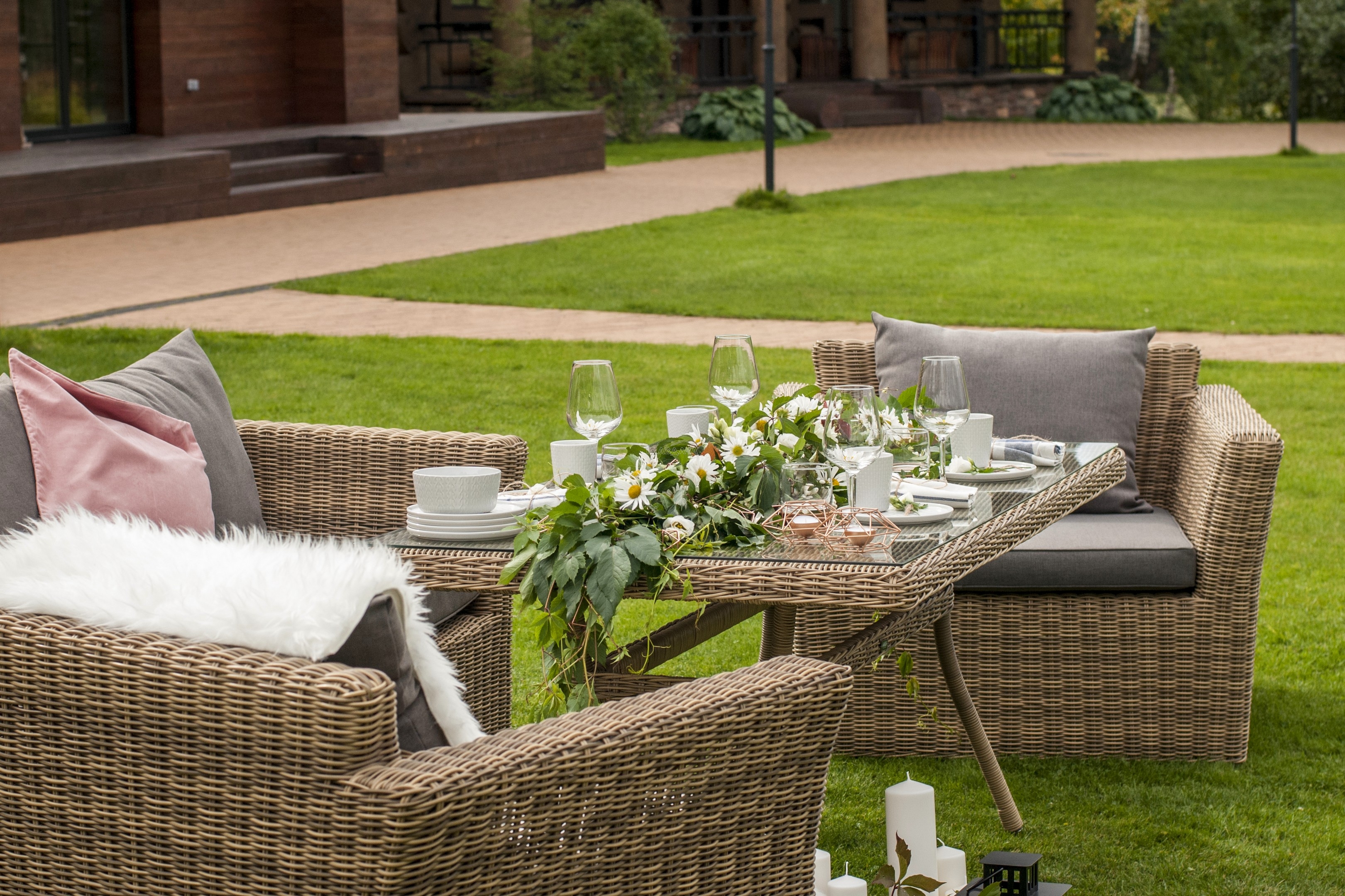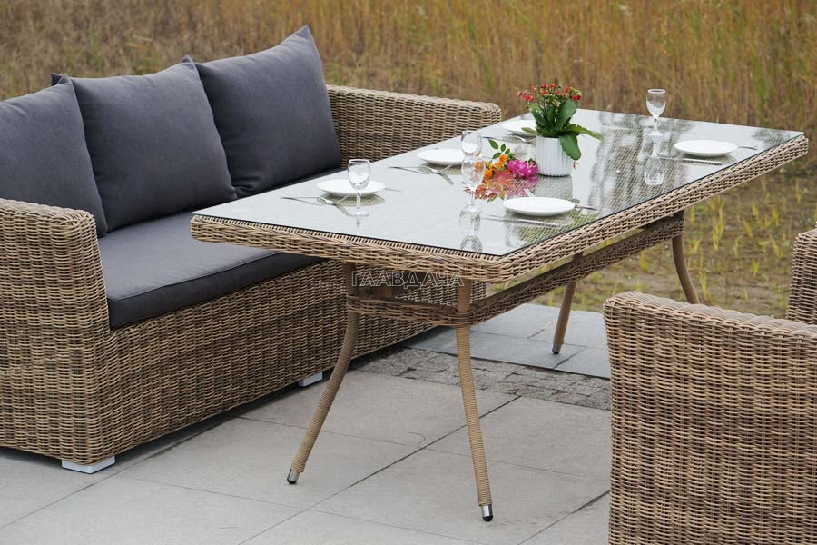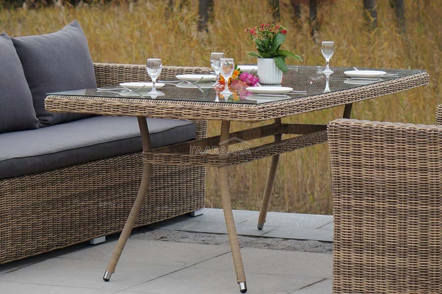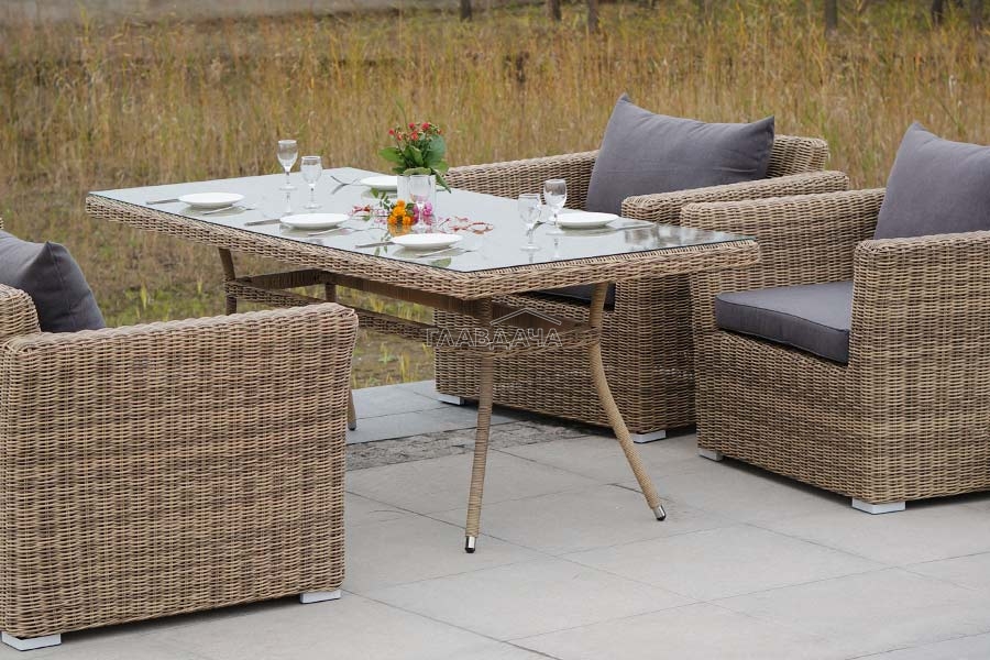 Обеденная группа «Моккачино» позволит оформить обеденную зону даже на открытом пространстве загородного участка.