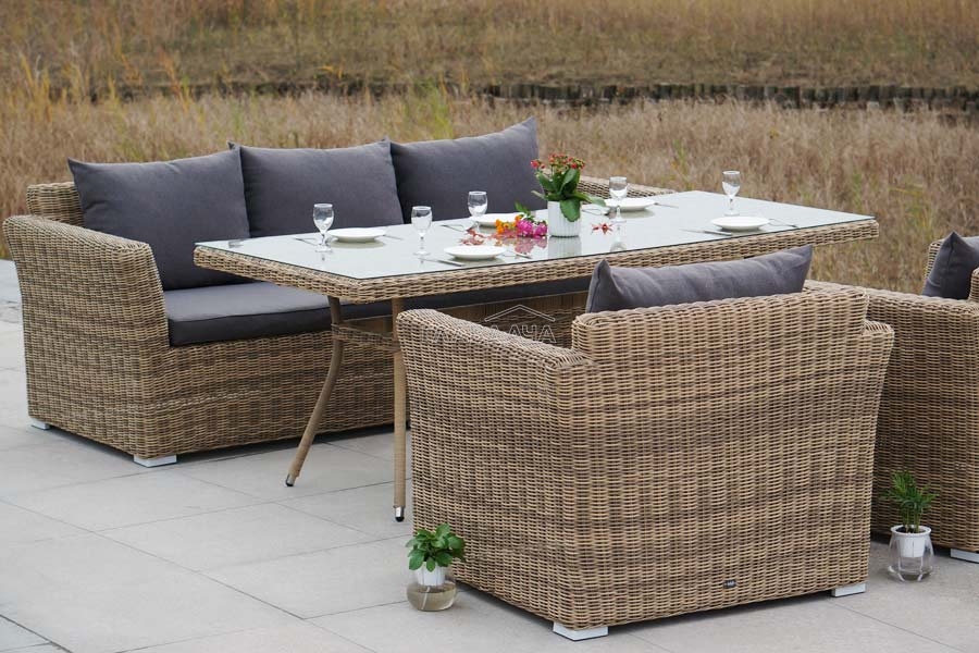 Мебельный каркас изготовлен из высококачественного алюминия. Соломенный искусственный ротанг применяется при создании ручной оплетки.