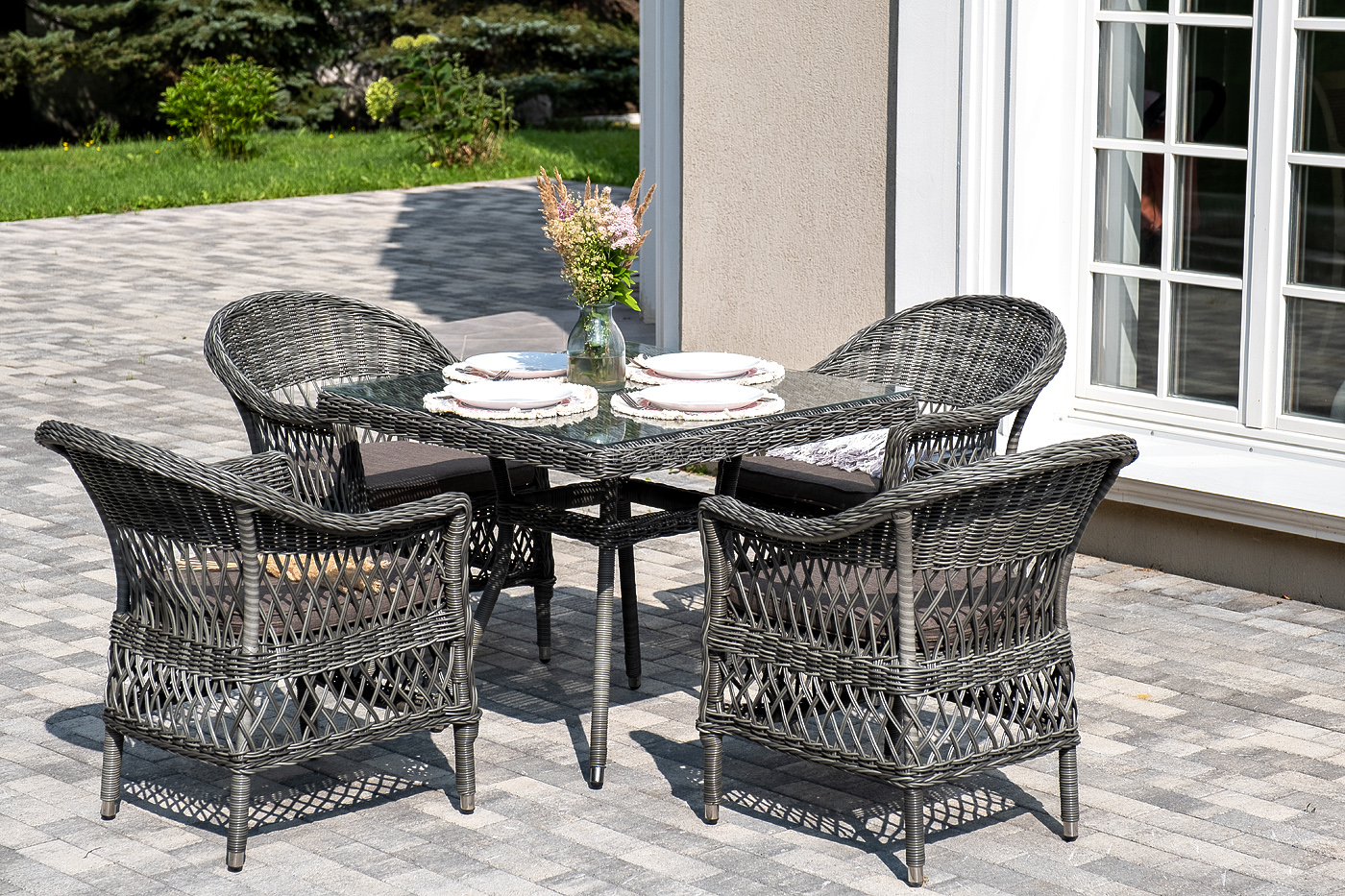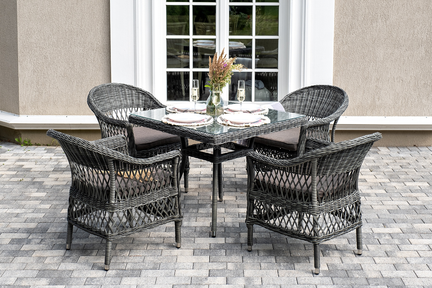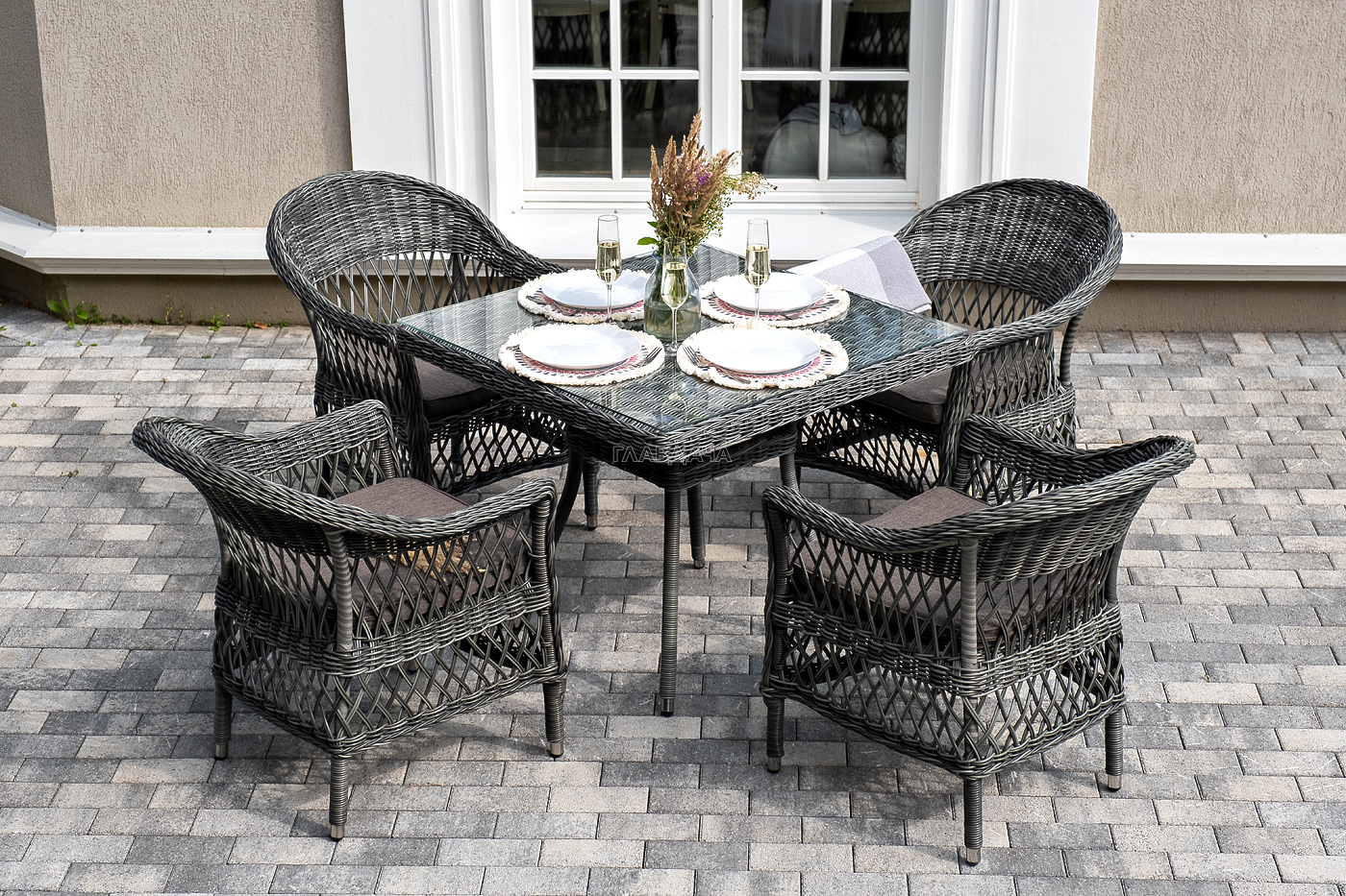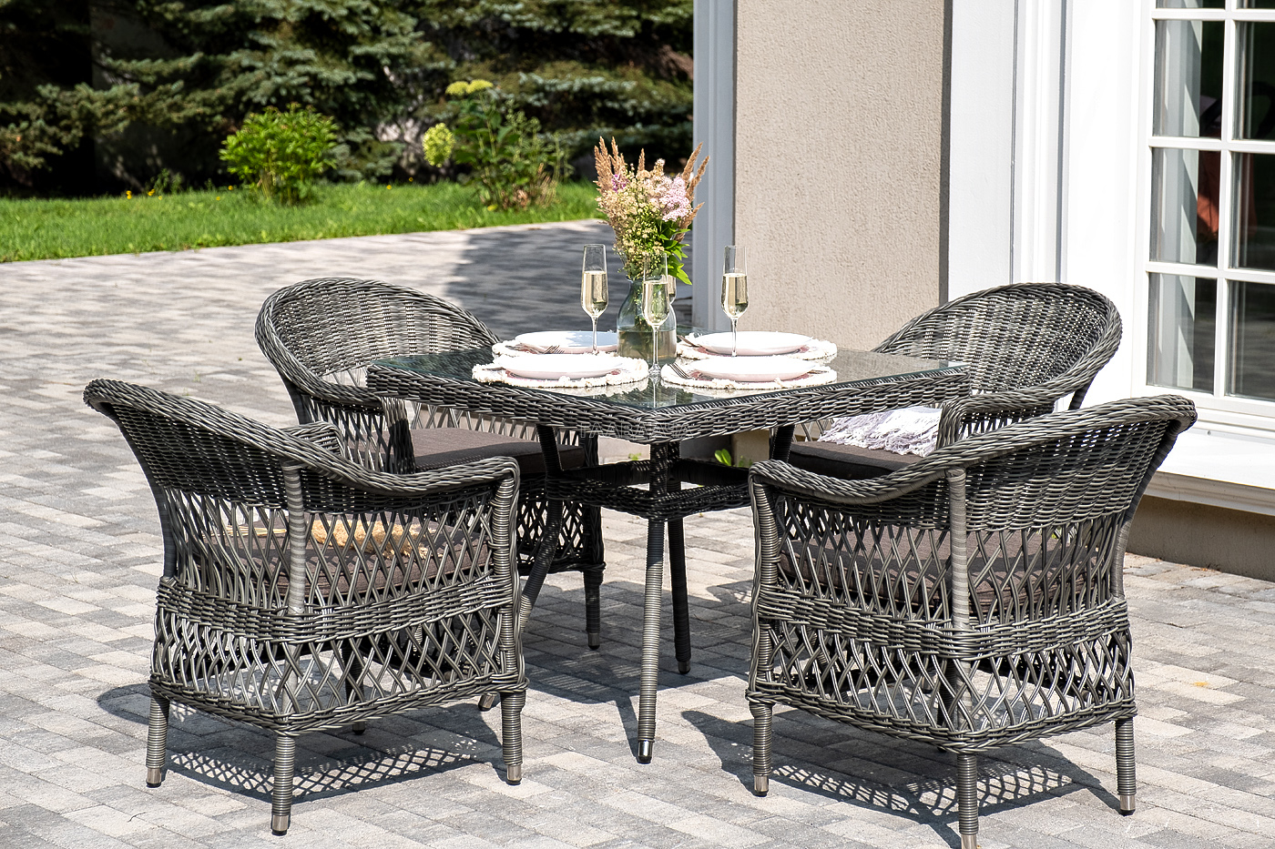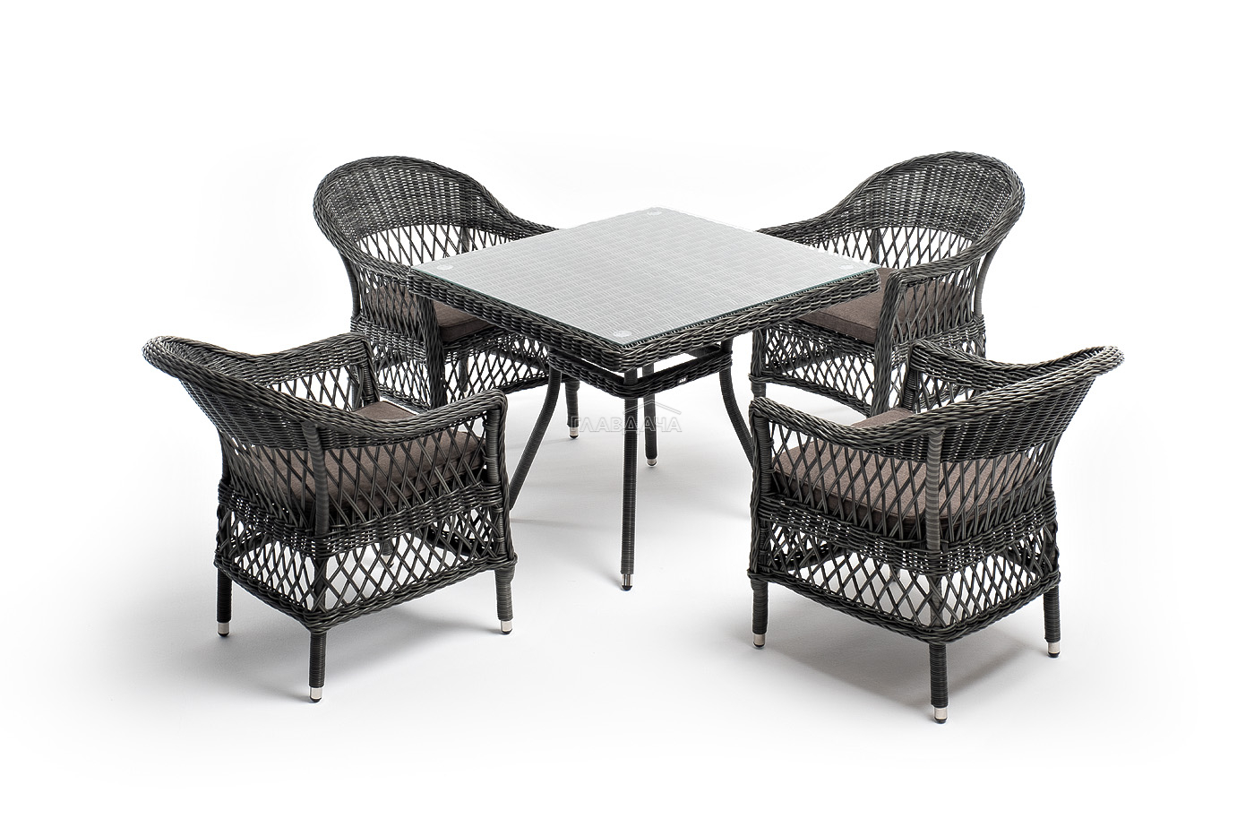 Комплект «Сицилия» - это обеденная группа из искусственного ротанга, которая рассчитана на 4 персоны.