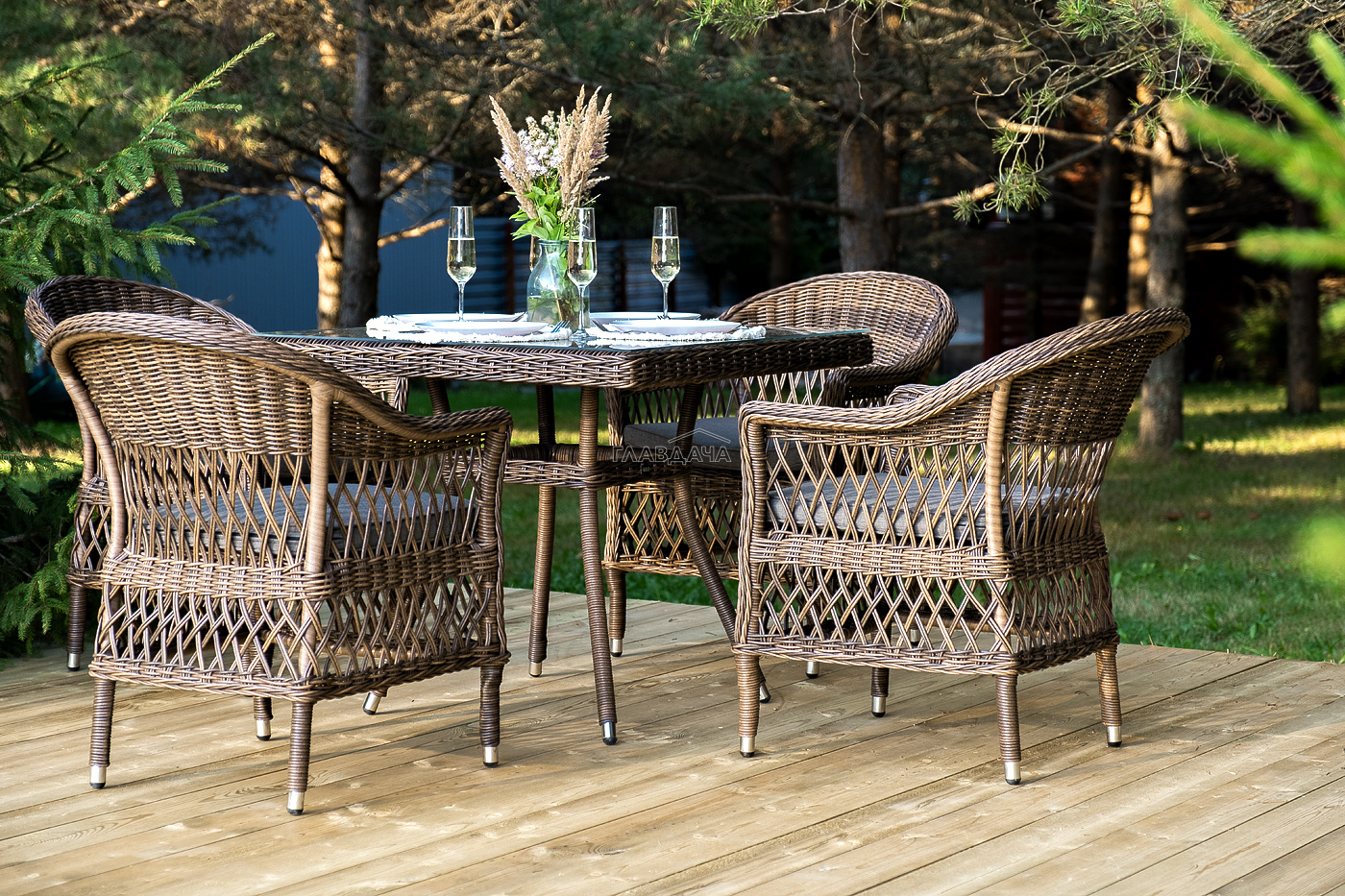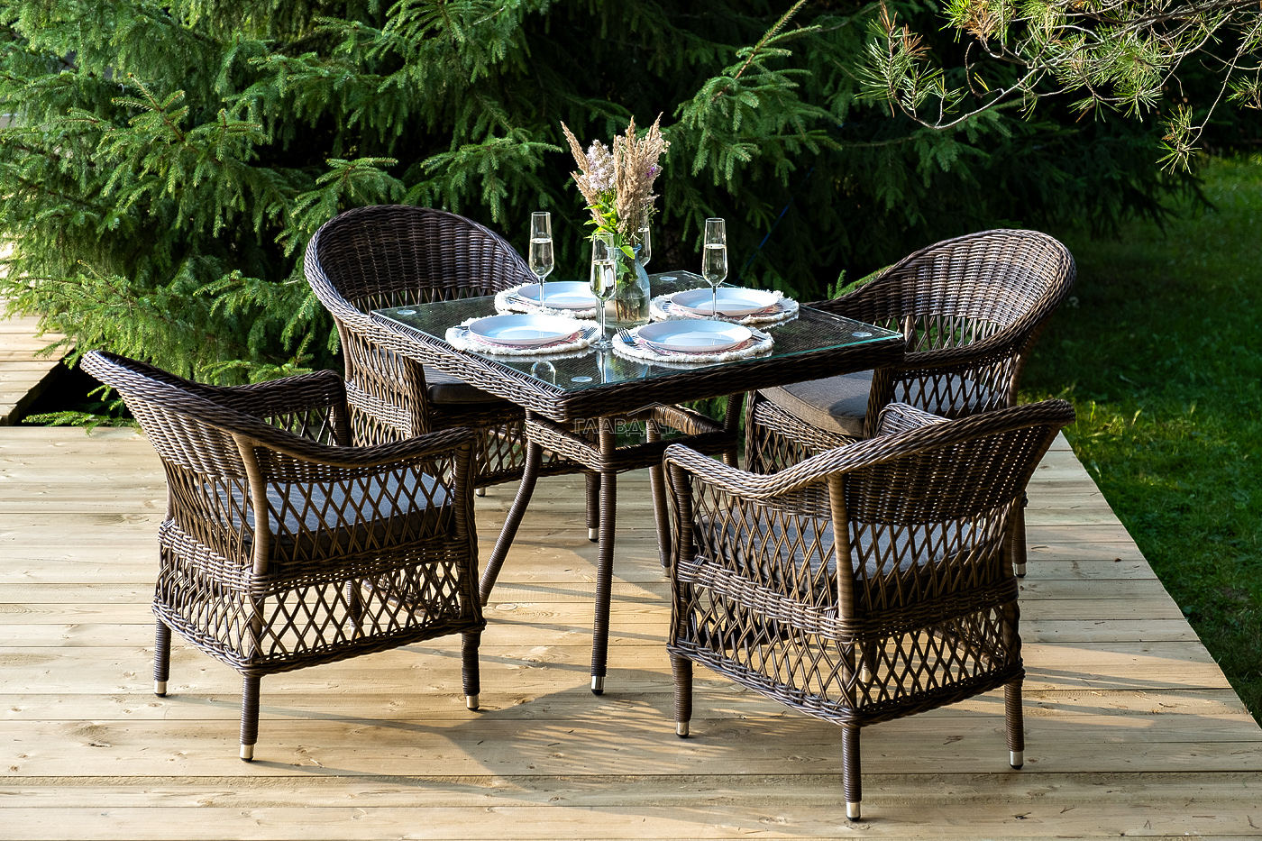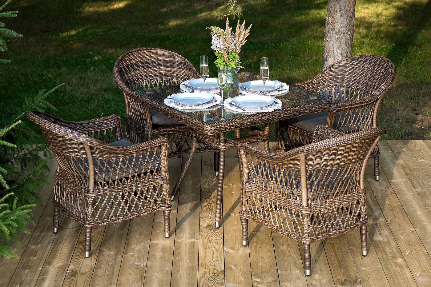 Комплект «Сицилия» - это обеденная группа из искусственного ротанга, которая рассчитана на 4 персоны.