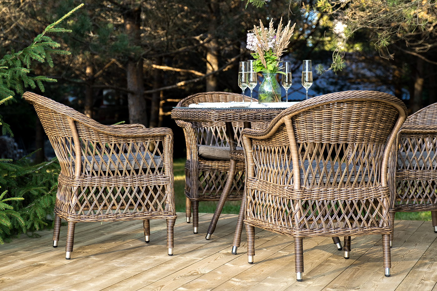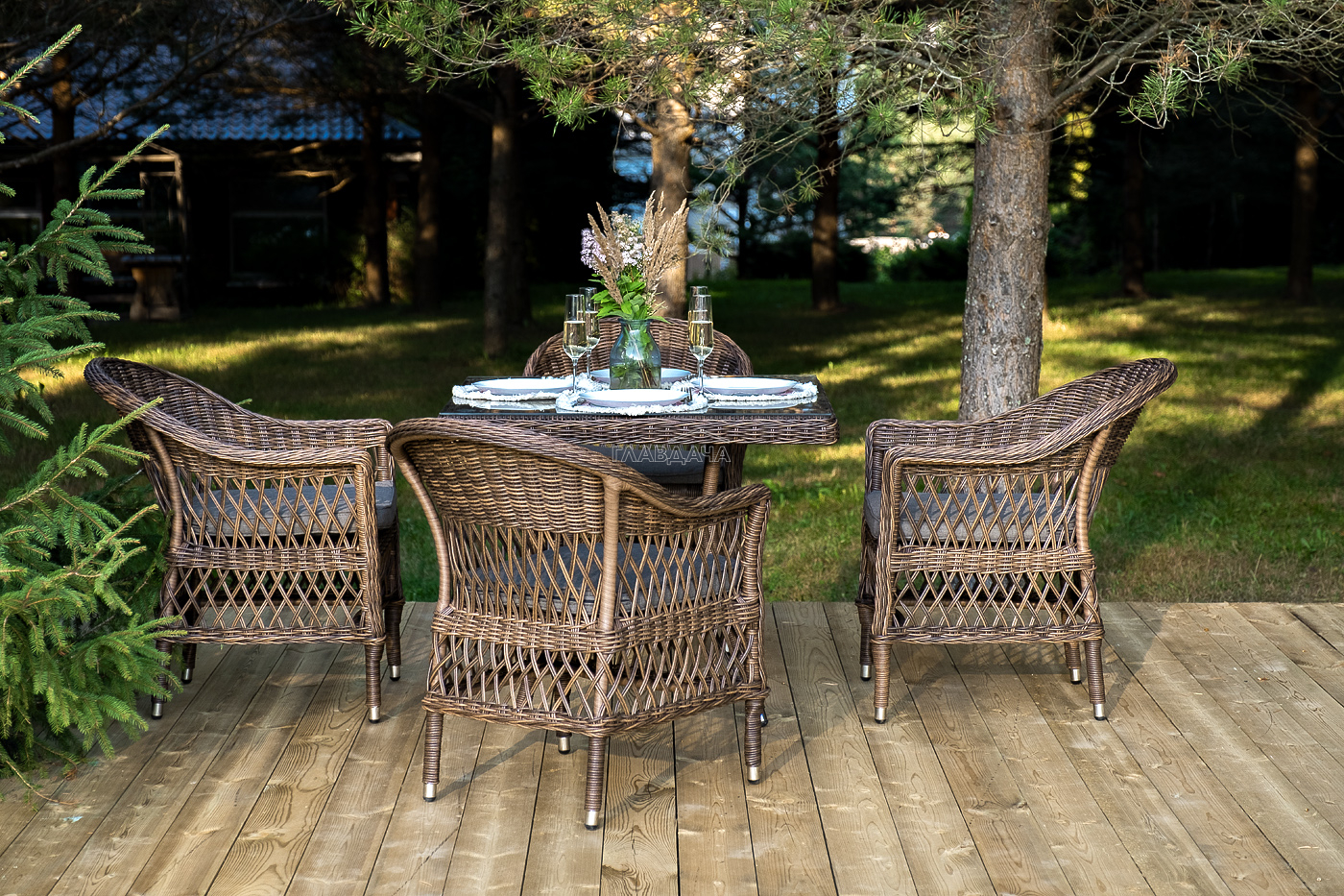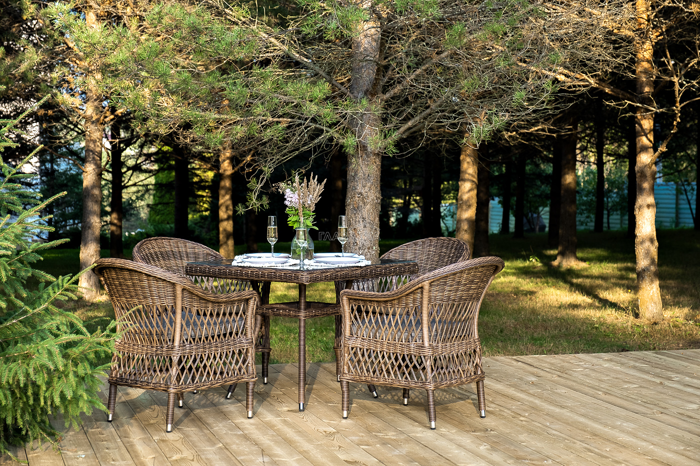 Комплект «Сицилия» - это обеденная группа из искусственного ротанга, которая рассчитана на 4 персоны.