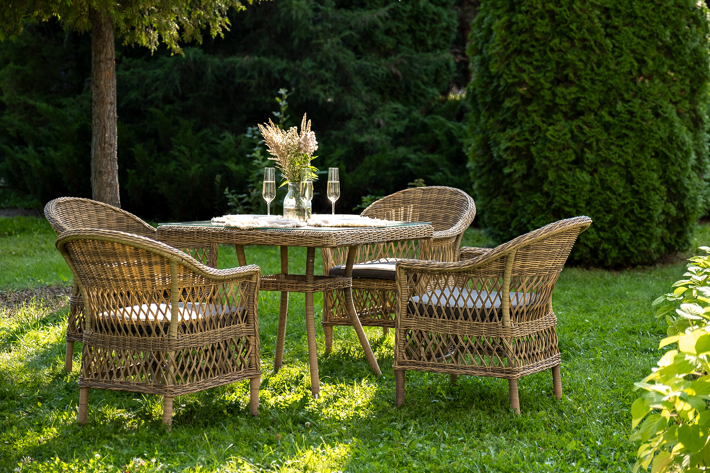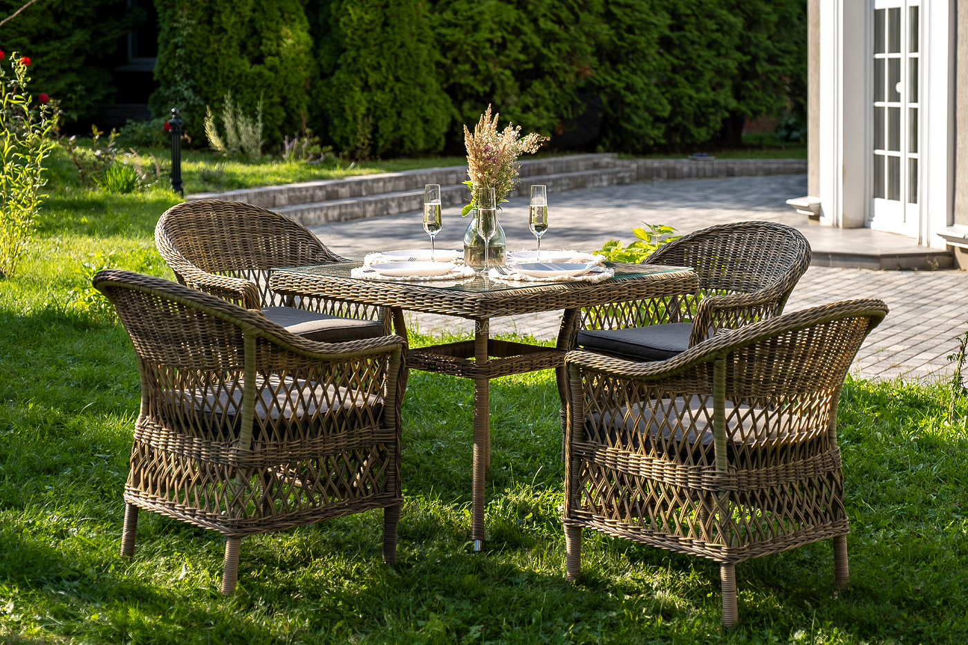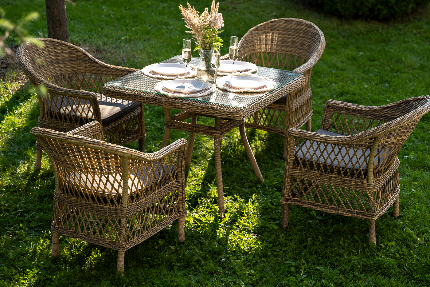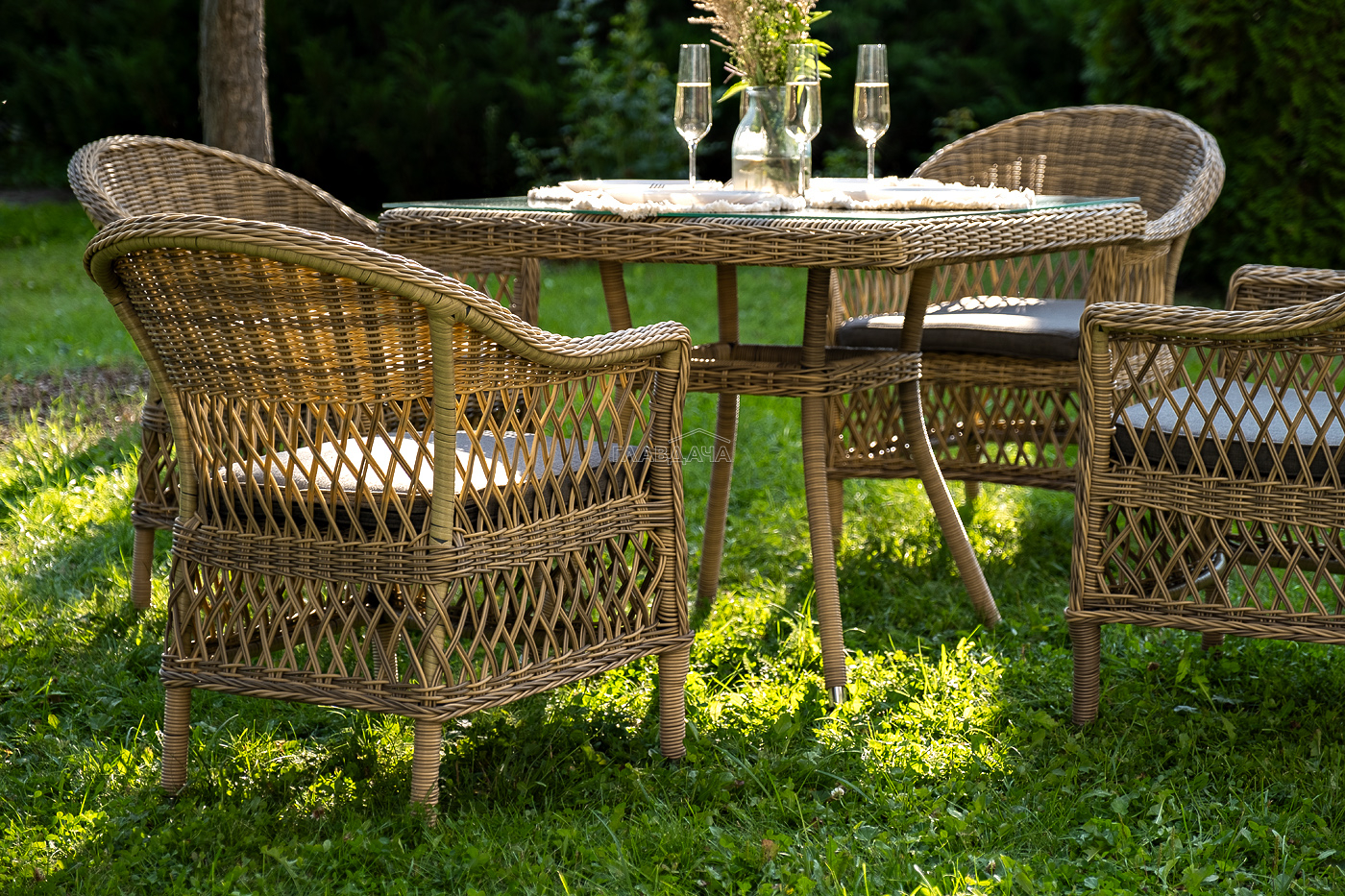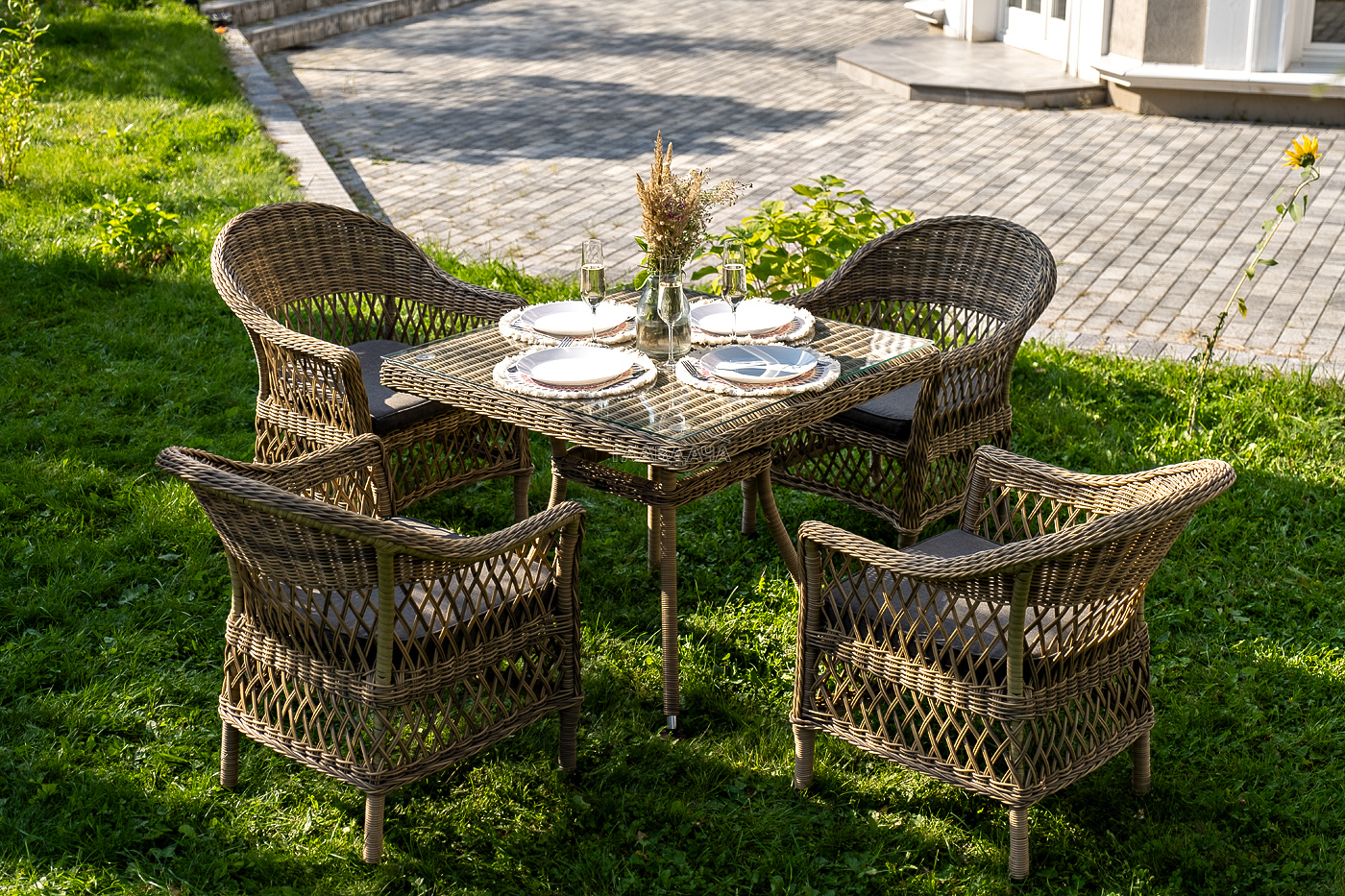 Комплект «Сицилия» - это обеденная группа из искусственного ротанга, которая рассчитана на 4 персоны.