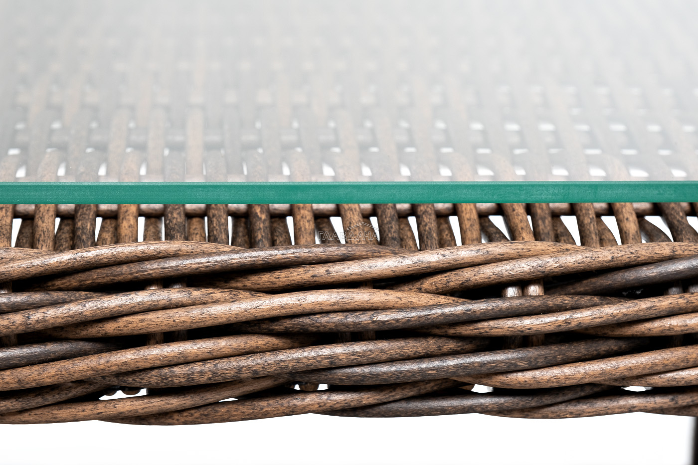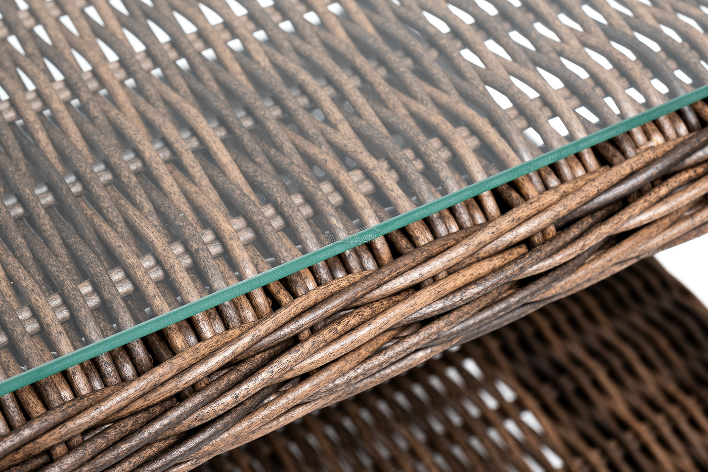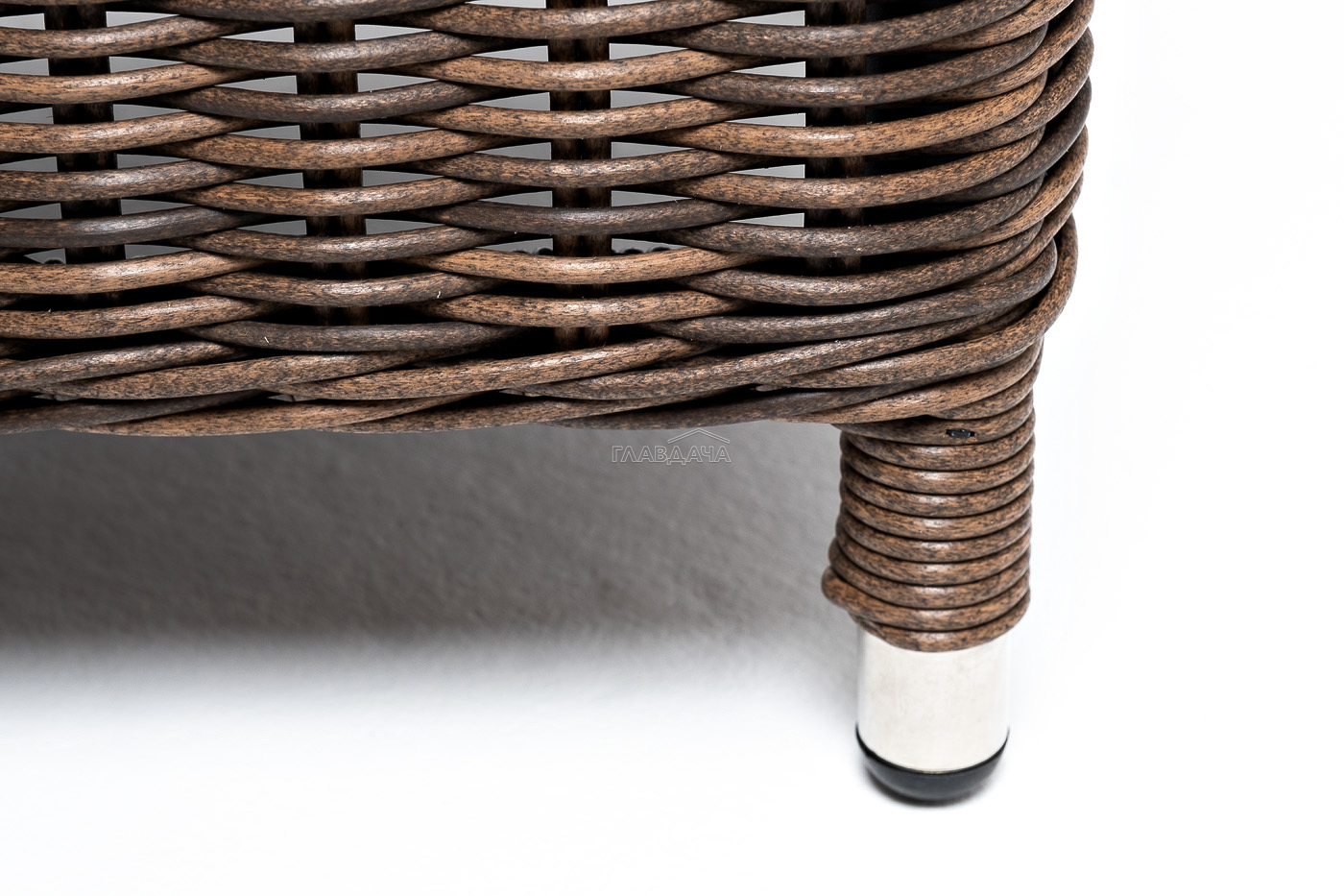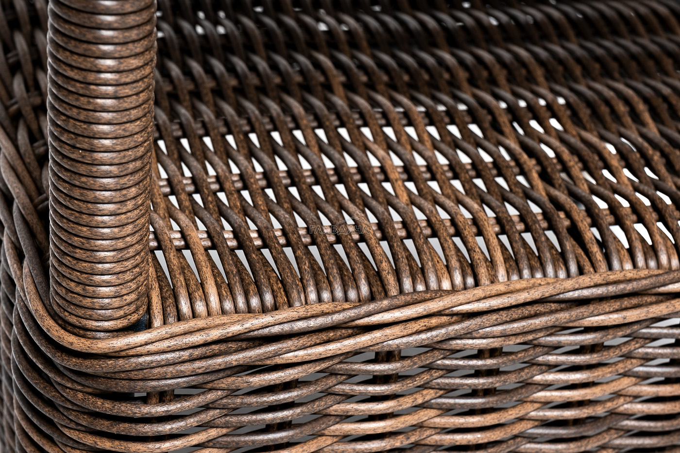 Одноместная лаунж-зона «Толедо» для зоны отдыха выполнена из круглого искусственного ротанга в натуральном коричневом цвете.