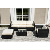 В основе мебели - стальной каркас и плоский искусственный ротанг. Каркас оплетен с помощью ручного метода и представлен в черном цвете.