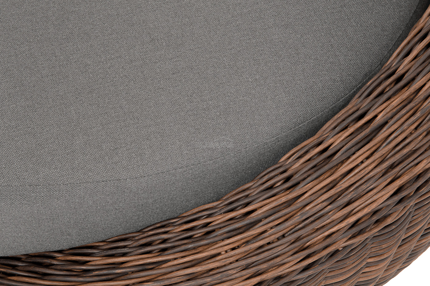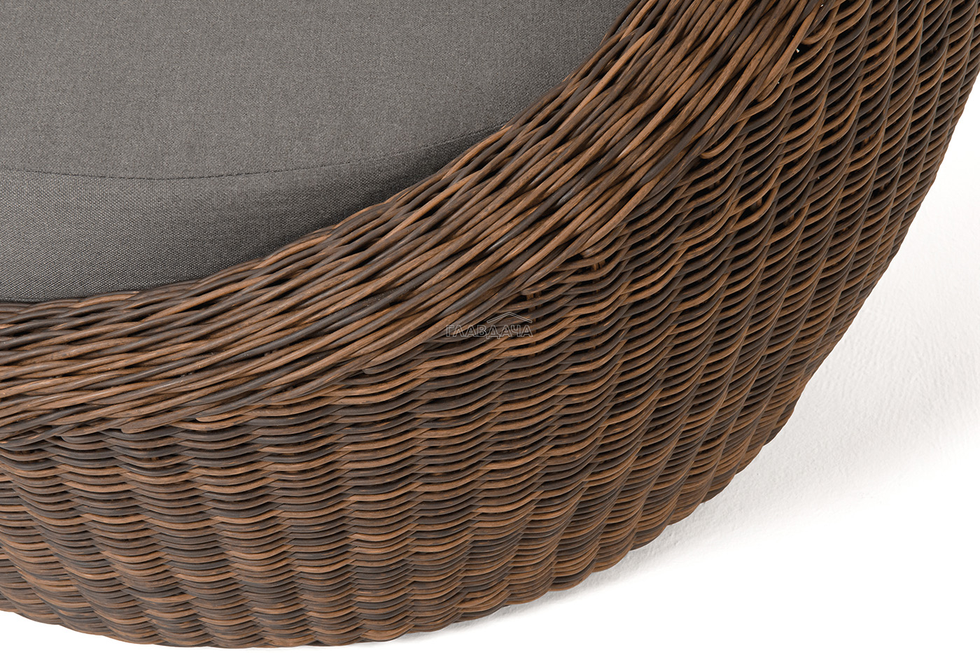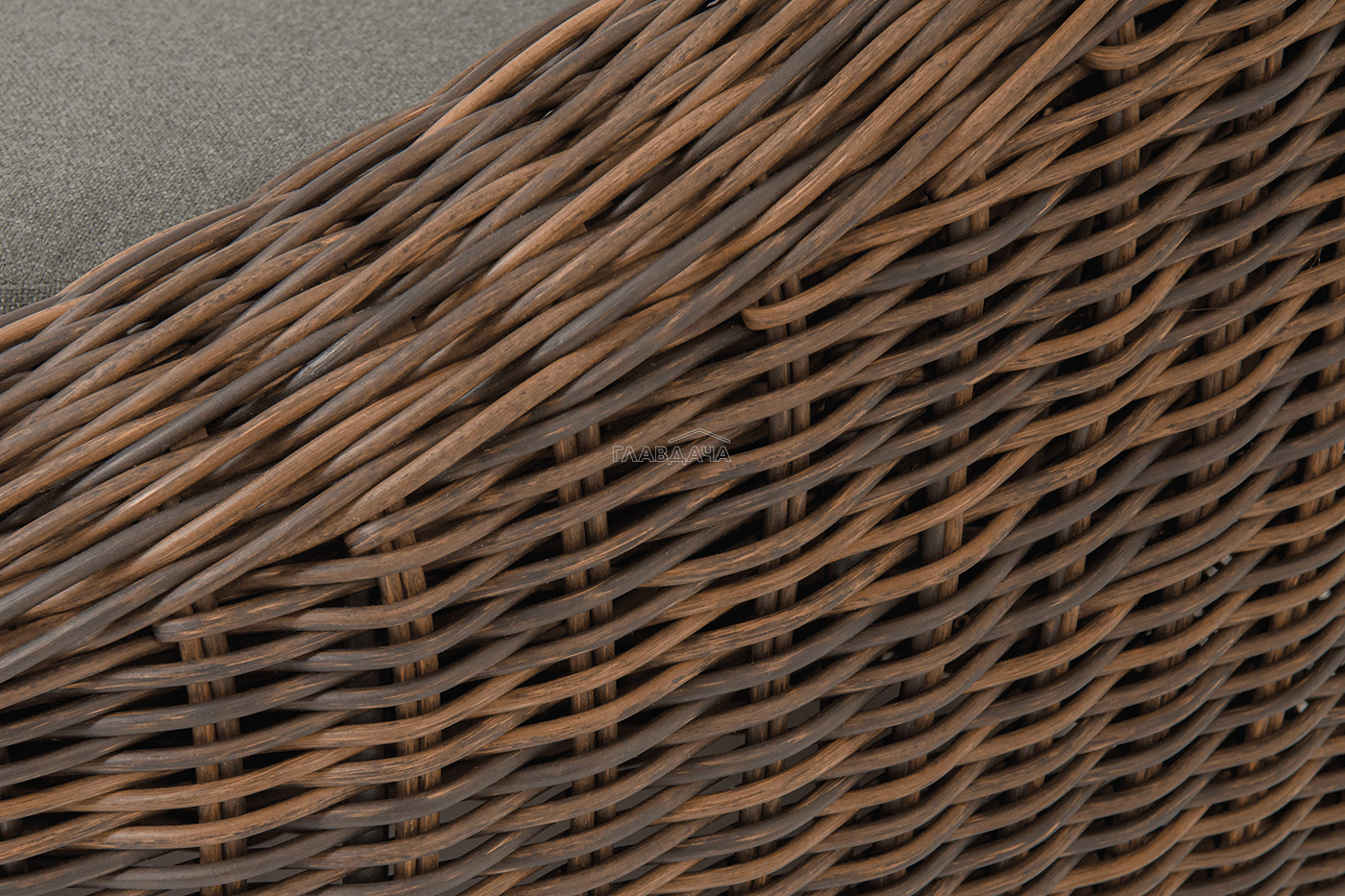 В комплекте с уличным ротанговым креслом идут мягкие подушки со съёмными чехлами серого оттенка. Они пошиты из полиэстера, который не боится повышенной влажности благодаря наличию влагоотталкивающей пропитки. Плотность ткани составляет 300гр/м2.