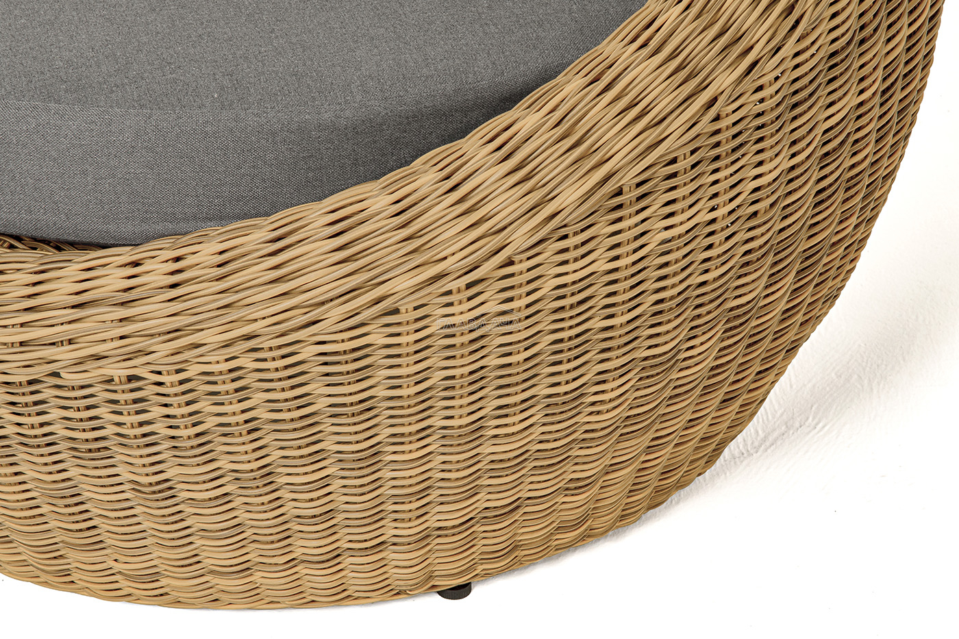 Надежность и износостойкость мебели гарантирует каркас, который сделан из качественного алюминия. Ее дополняет ручное плетение, при изготовлении которого используется искусственный ротанг. Представлена модель в соломенном цвете.